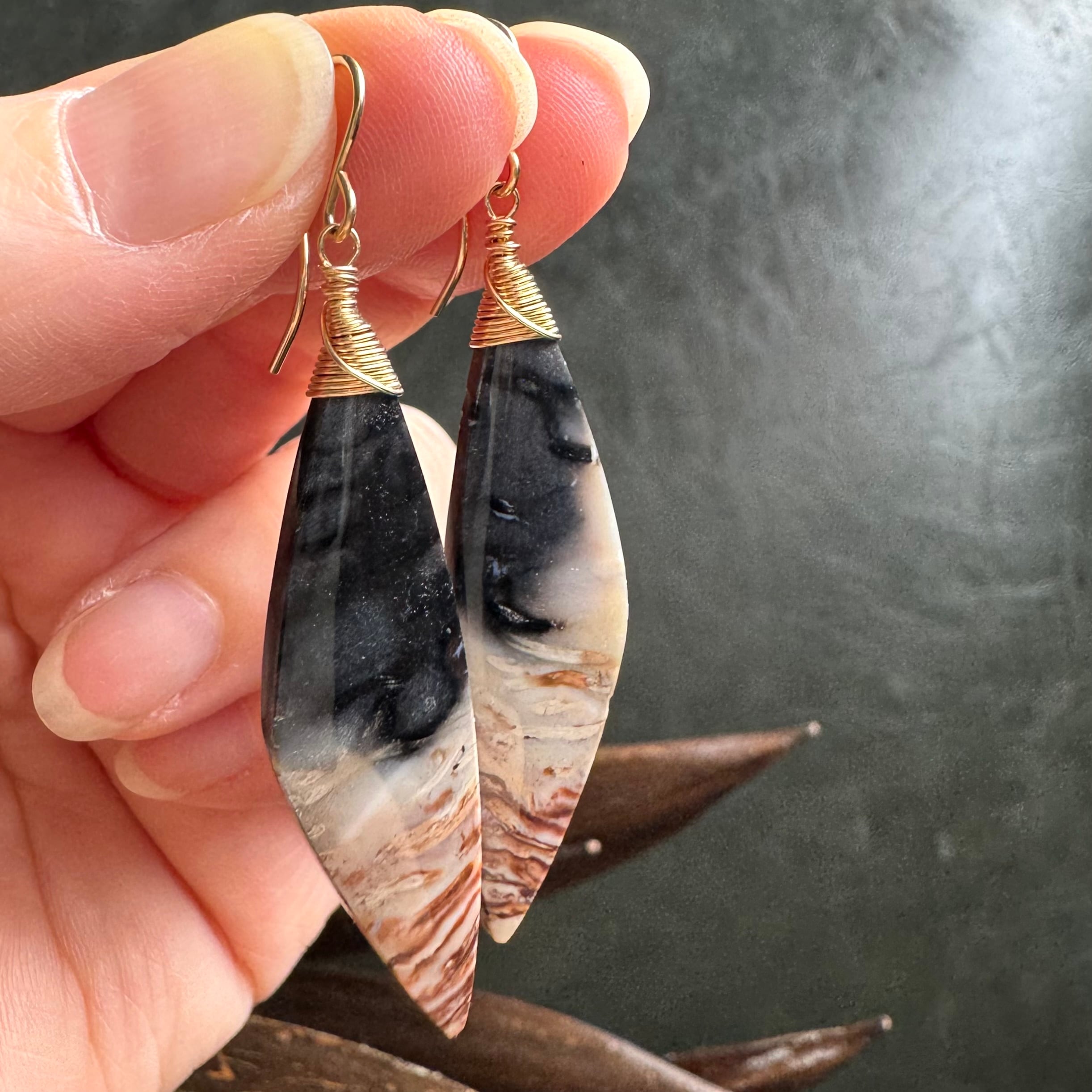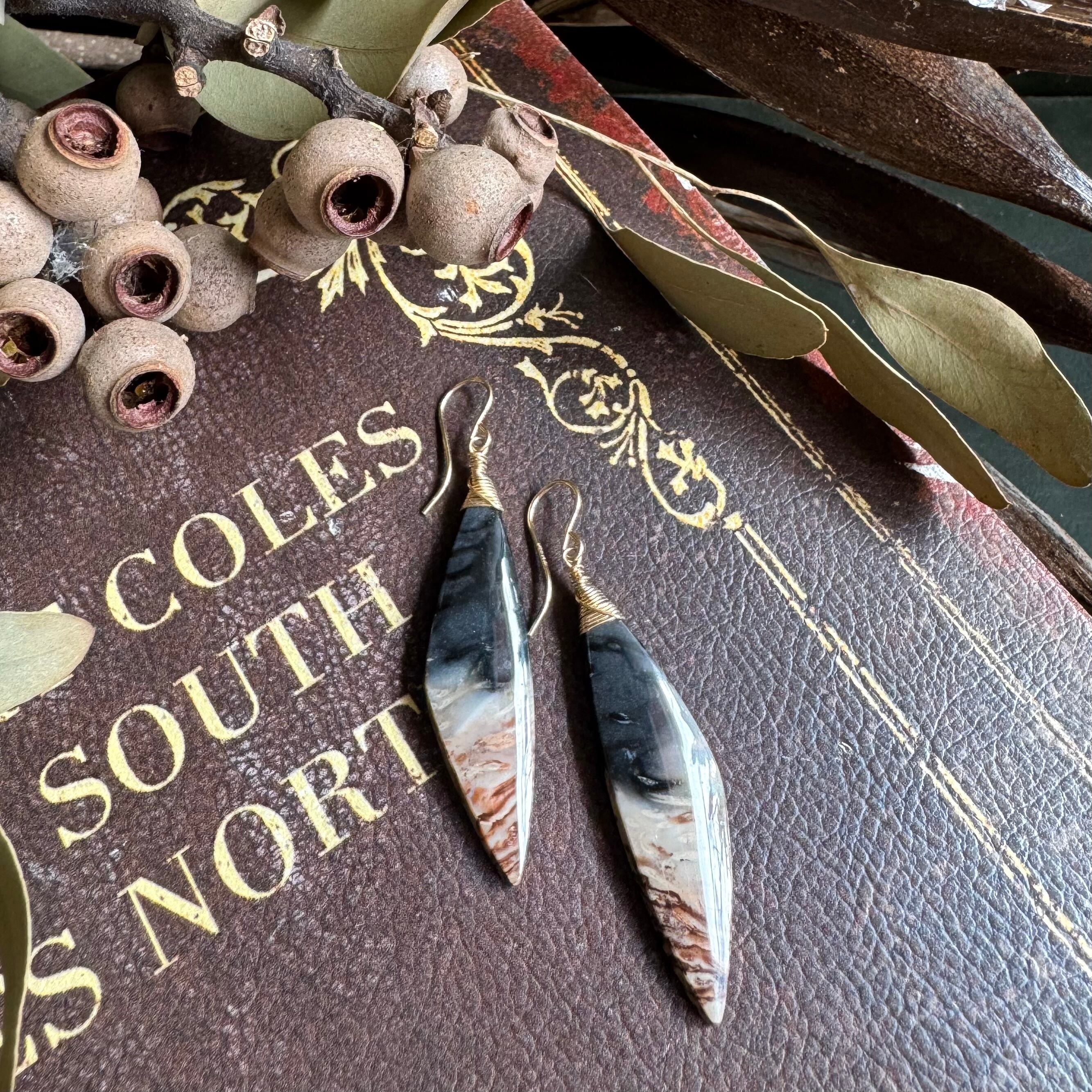炎の様な模様が美しくとても雰囲気のある石で、こちらのペアは、ベージュ系、ブラウン、グレー、ブラックと色々な色が混ざり、半透明な部分もある雰囲気のあるペアです。