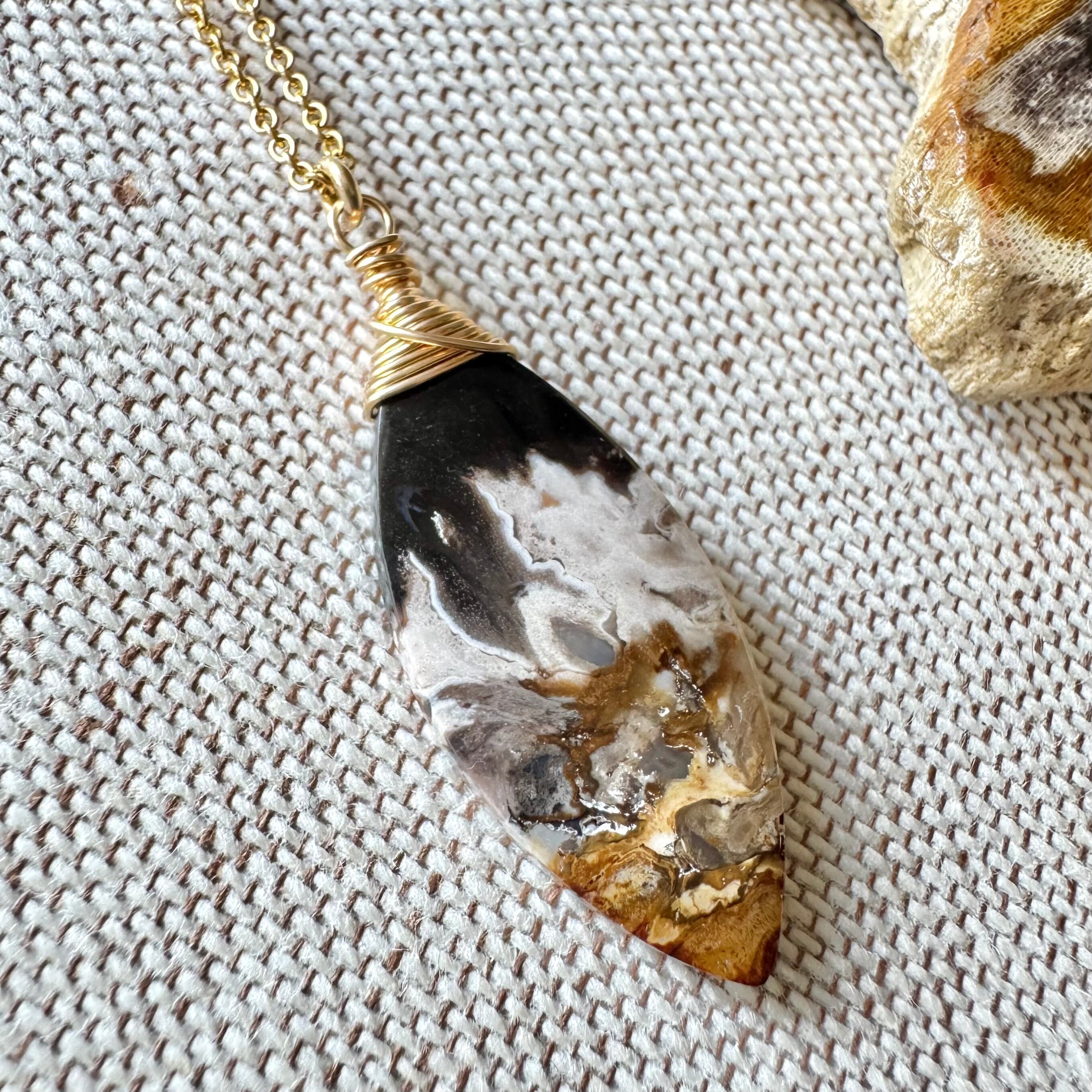 パームルートフォッシル*シンプルネックレス*小さめマーキス