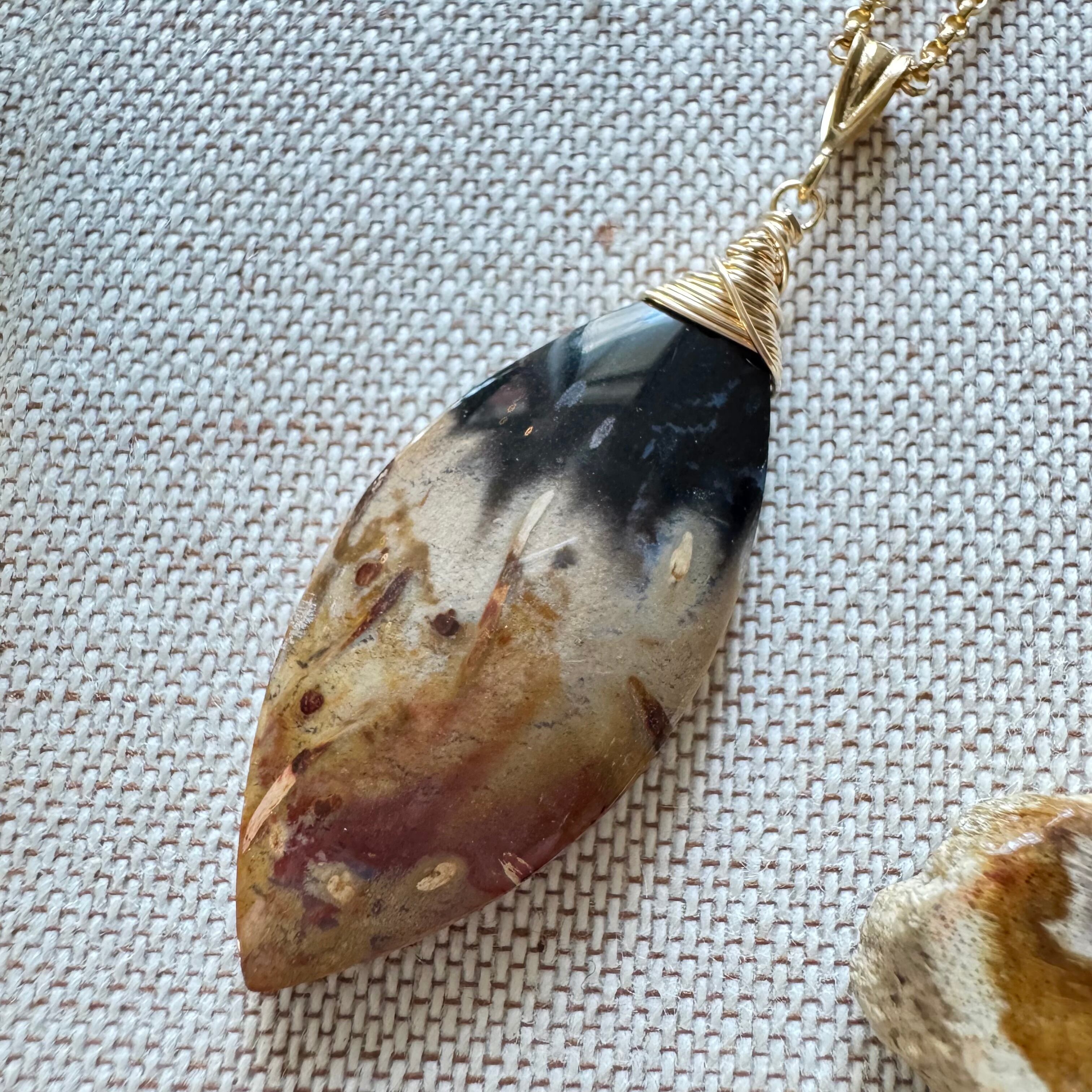 パームルートフォッシル*シンプルネックレス*大きめのマーキス型