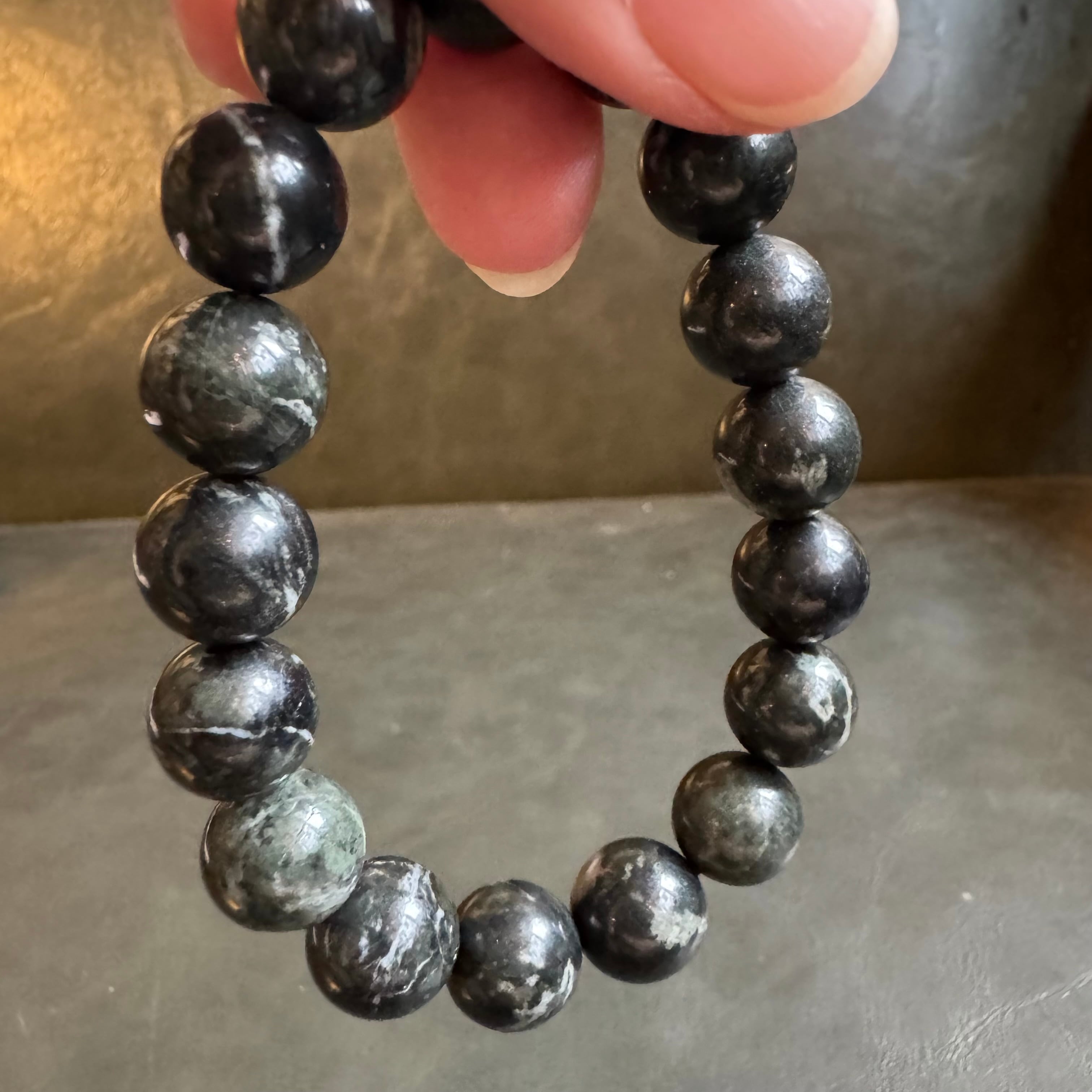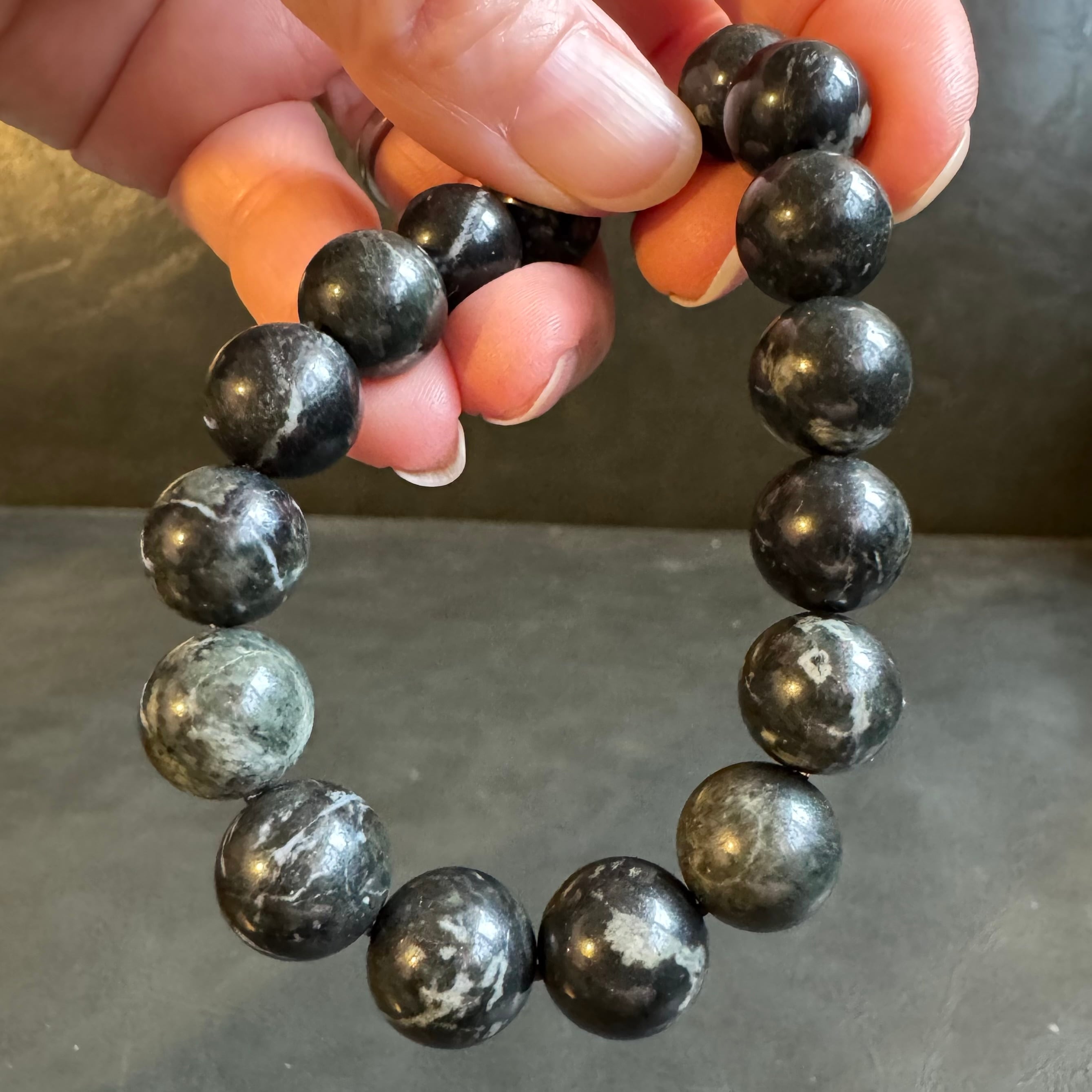 日本の石*神居古潭石・柄ありダークグリーン系*11.5mm
