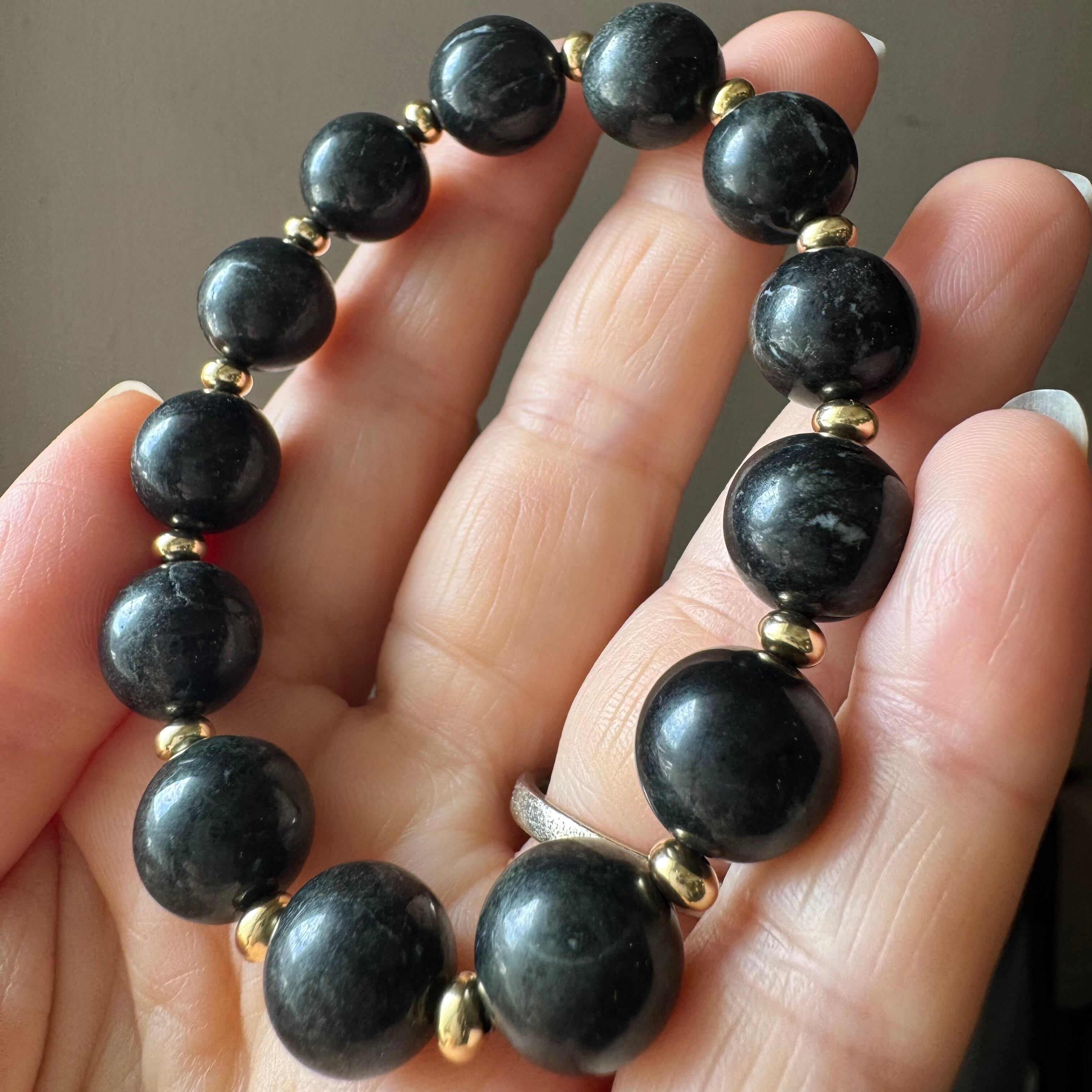 日本の石*神居古潭石・ブラック系ビーズ有*11.5mm