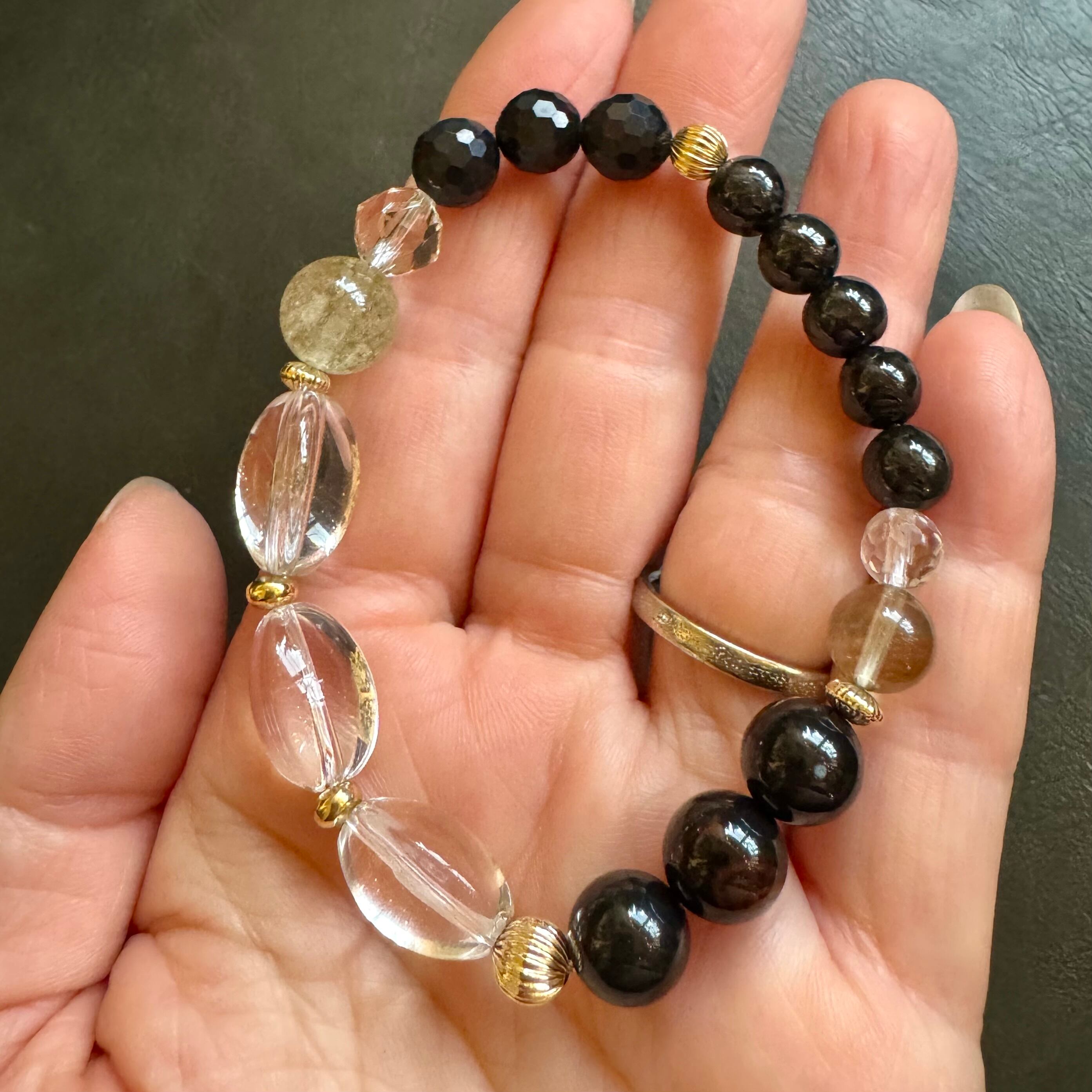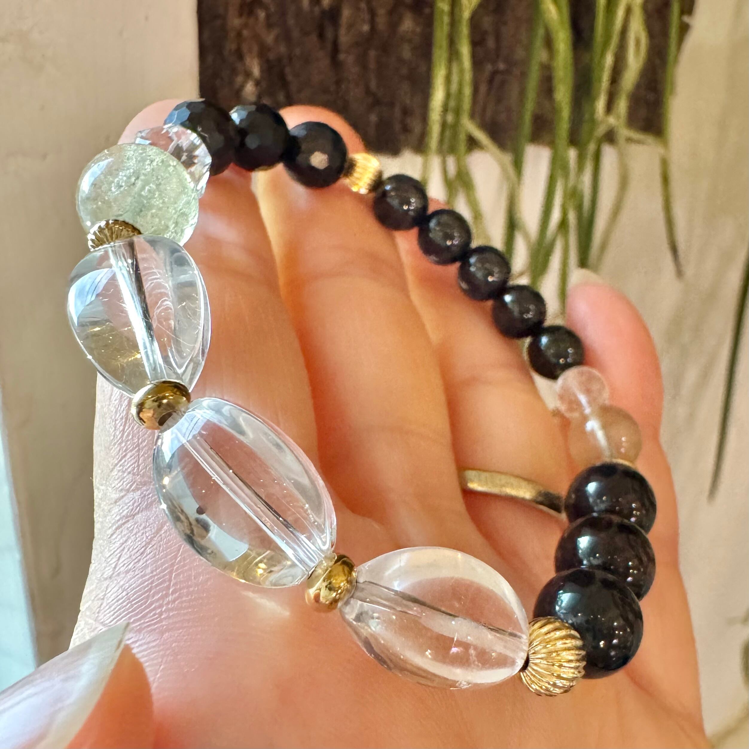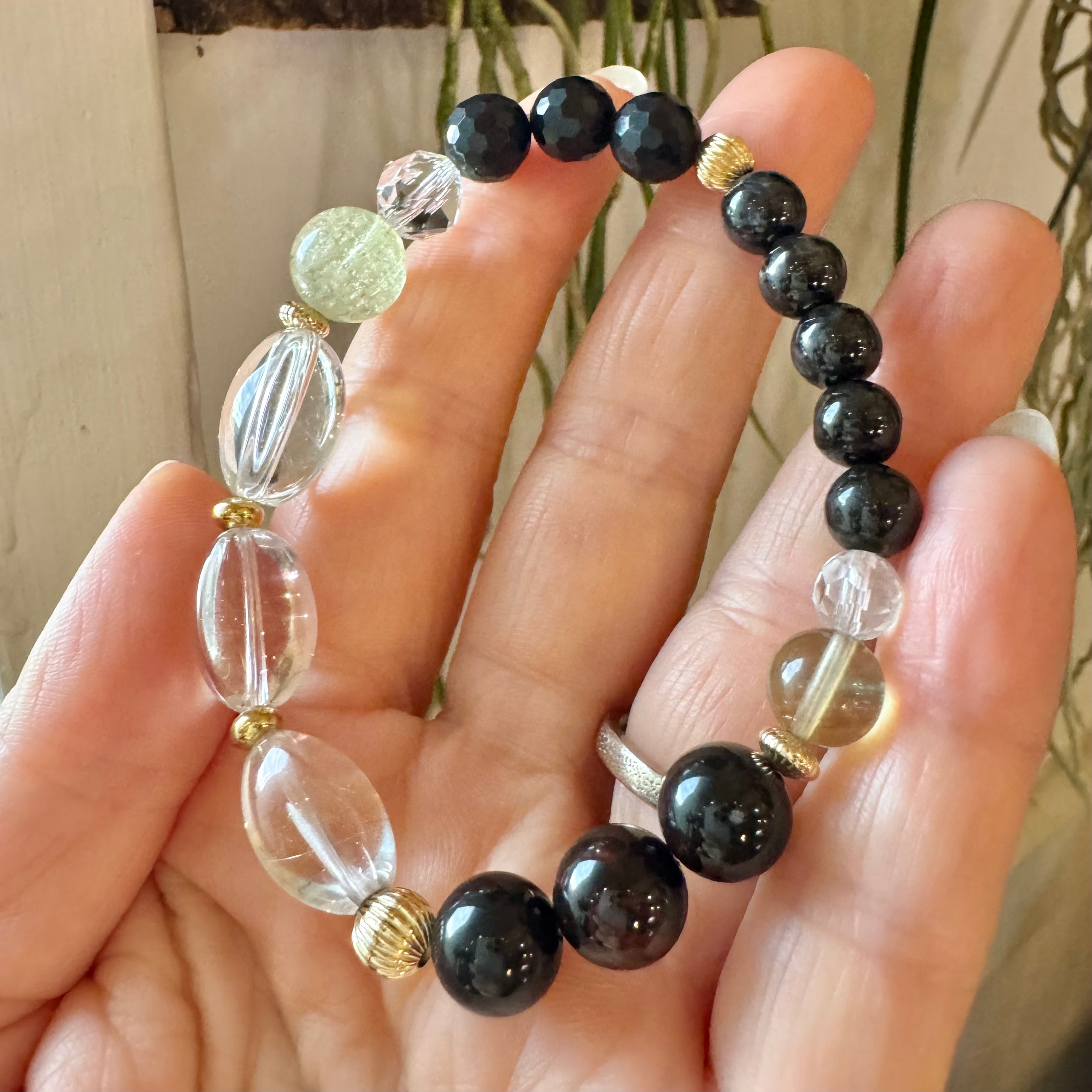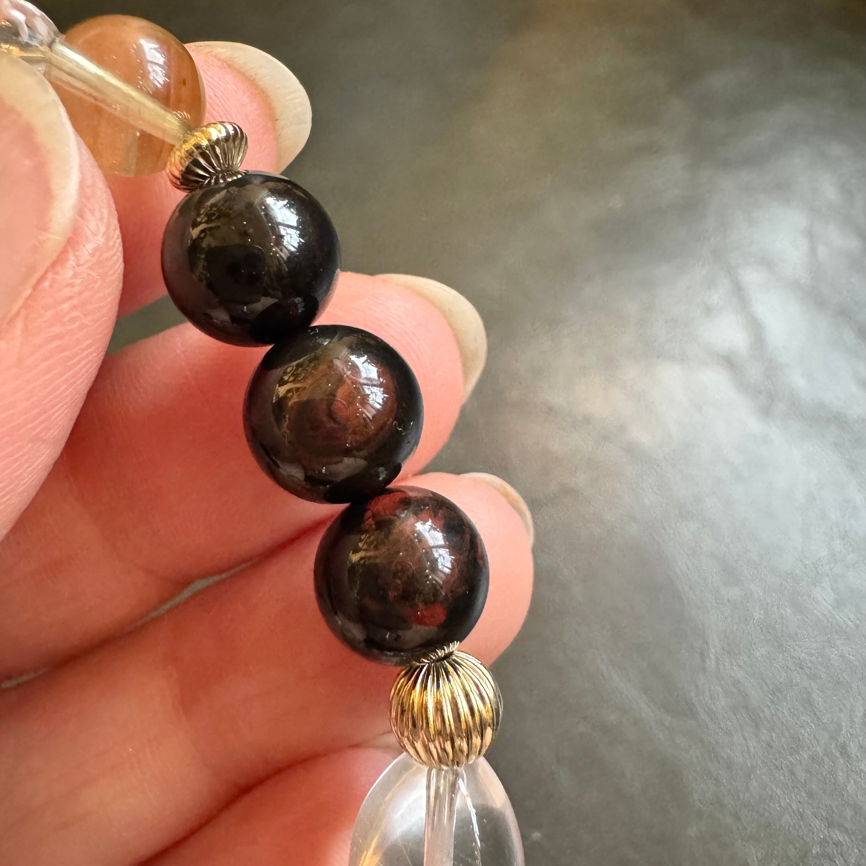 日本の石*十勝石入りMIXブレス(水晶・リビアングラス・黒翡翠など)