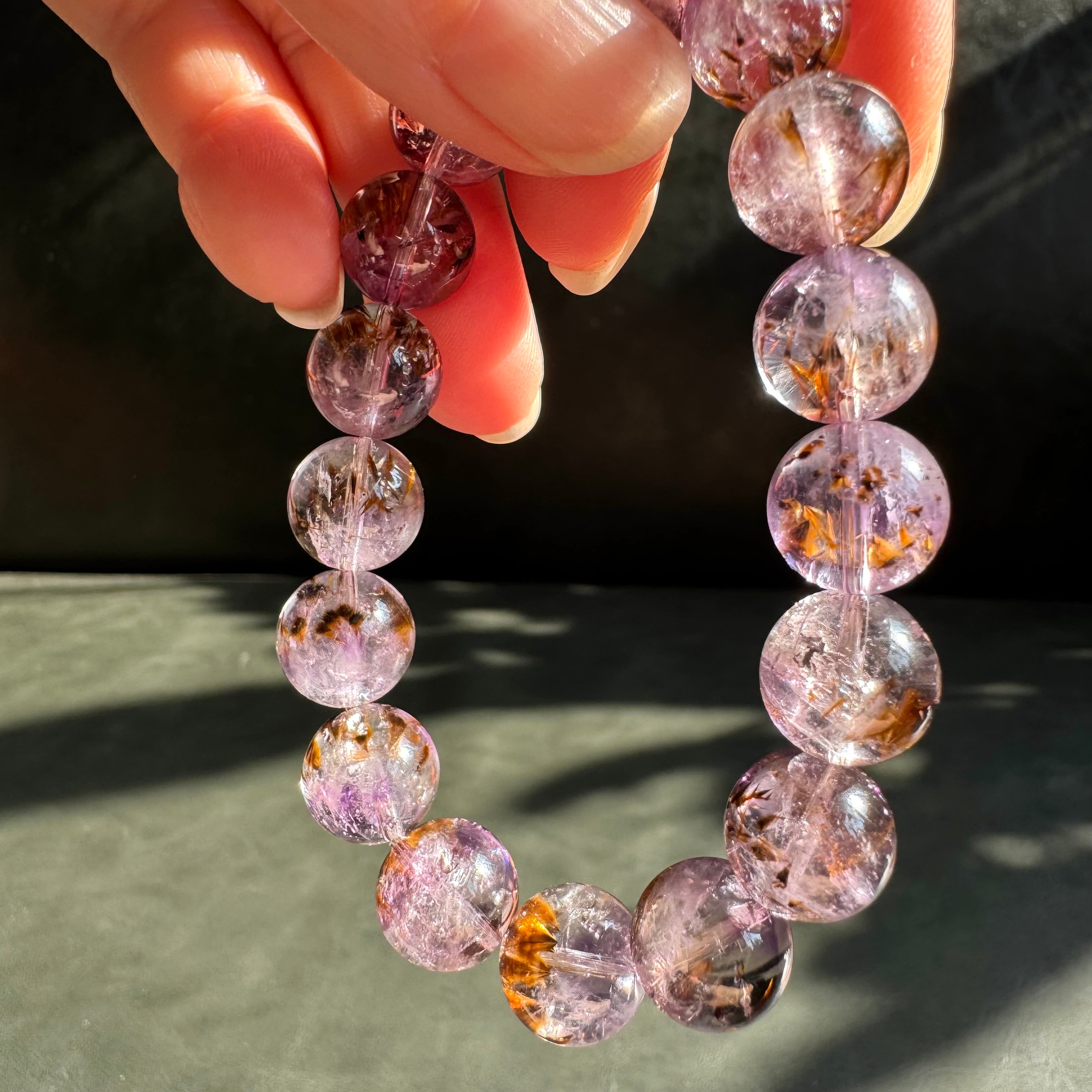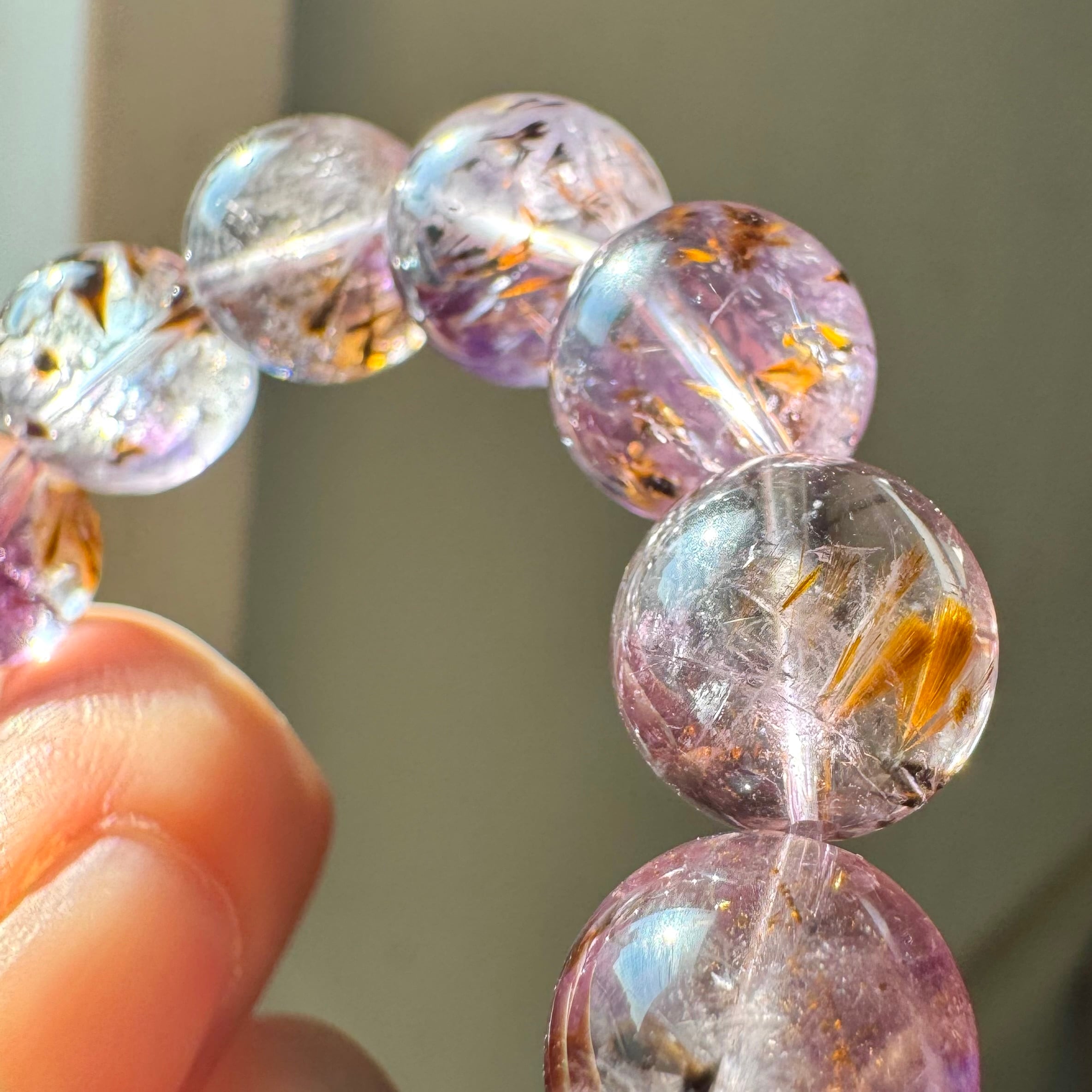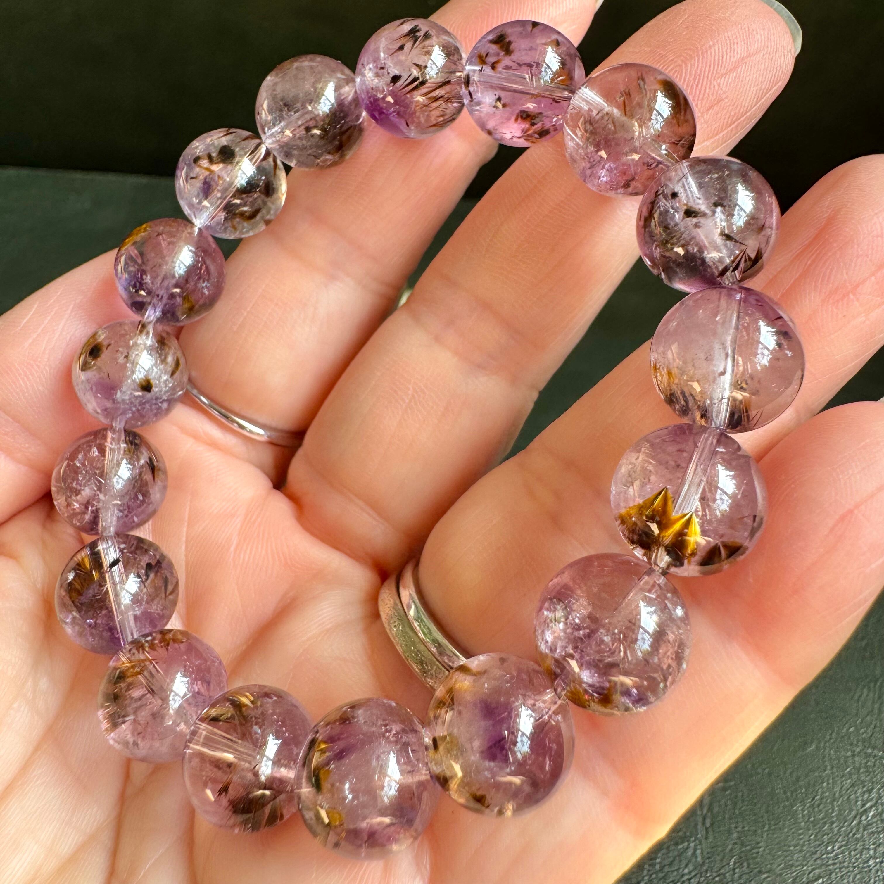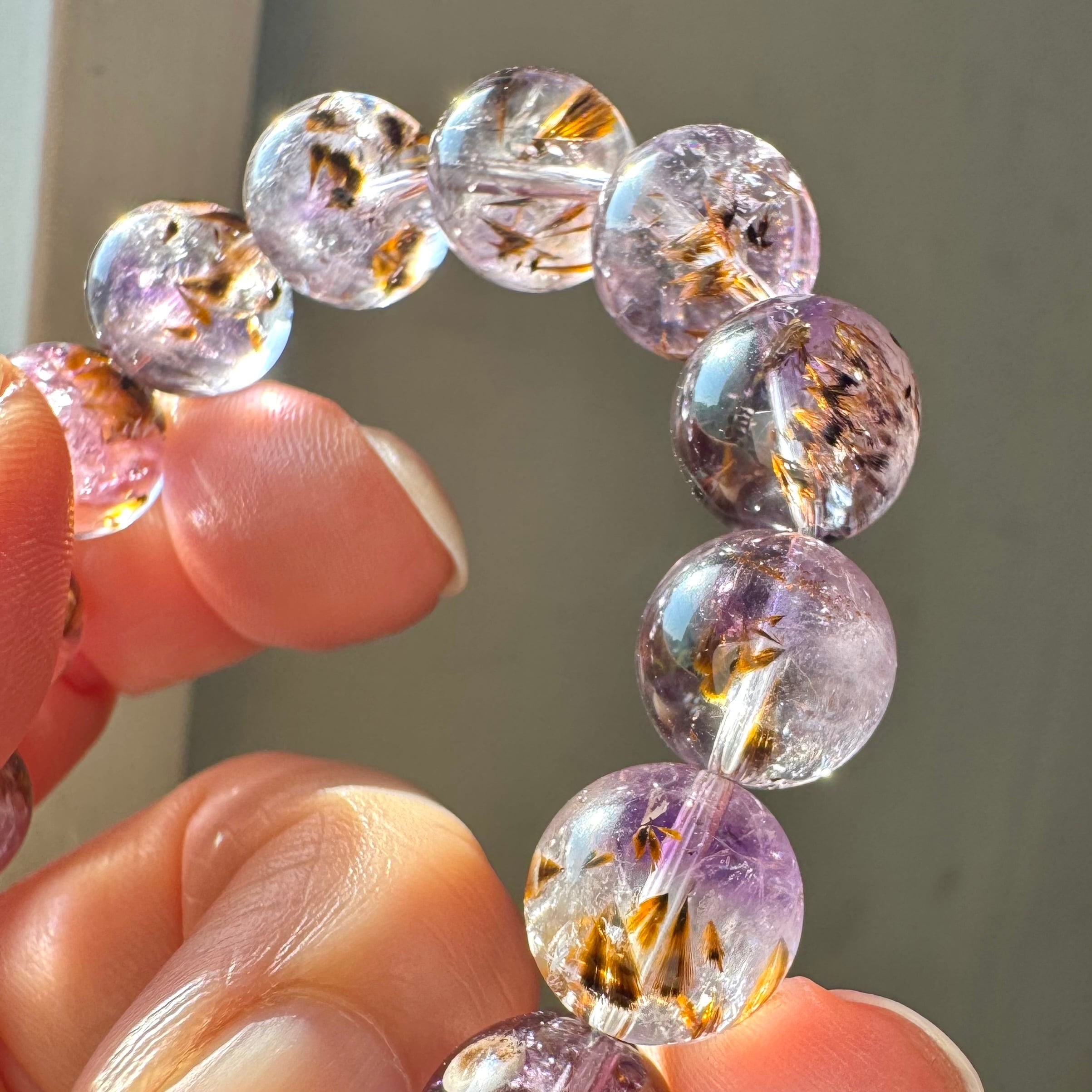 こちらは、お色が薄めのアメジストにカコクセナイトがしっかり入ったタイプになります