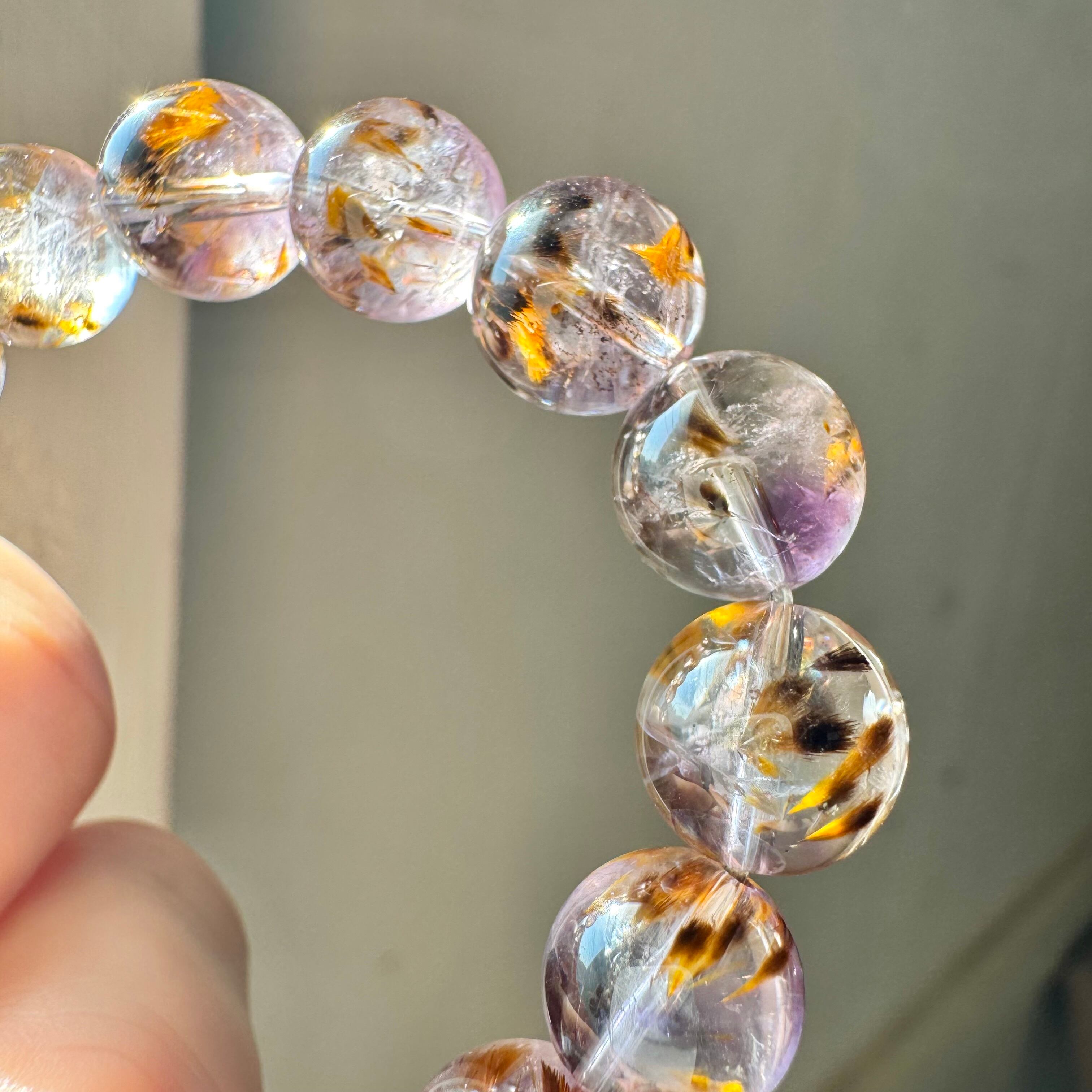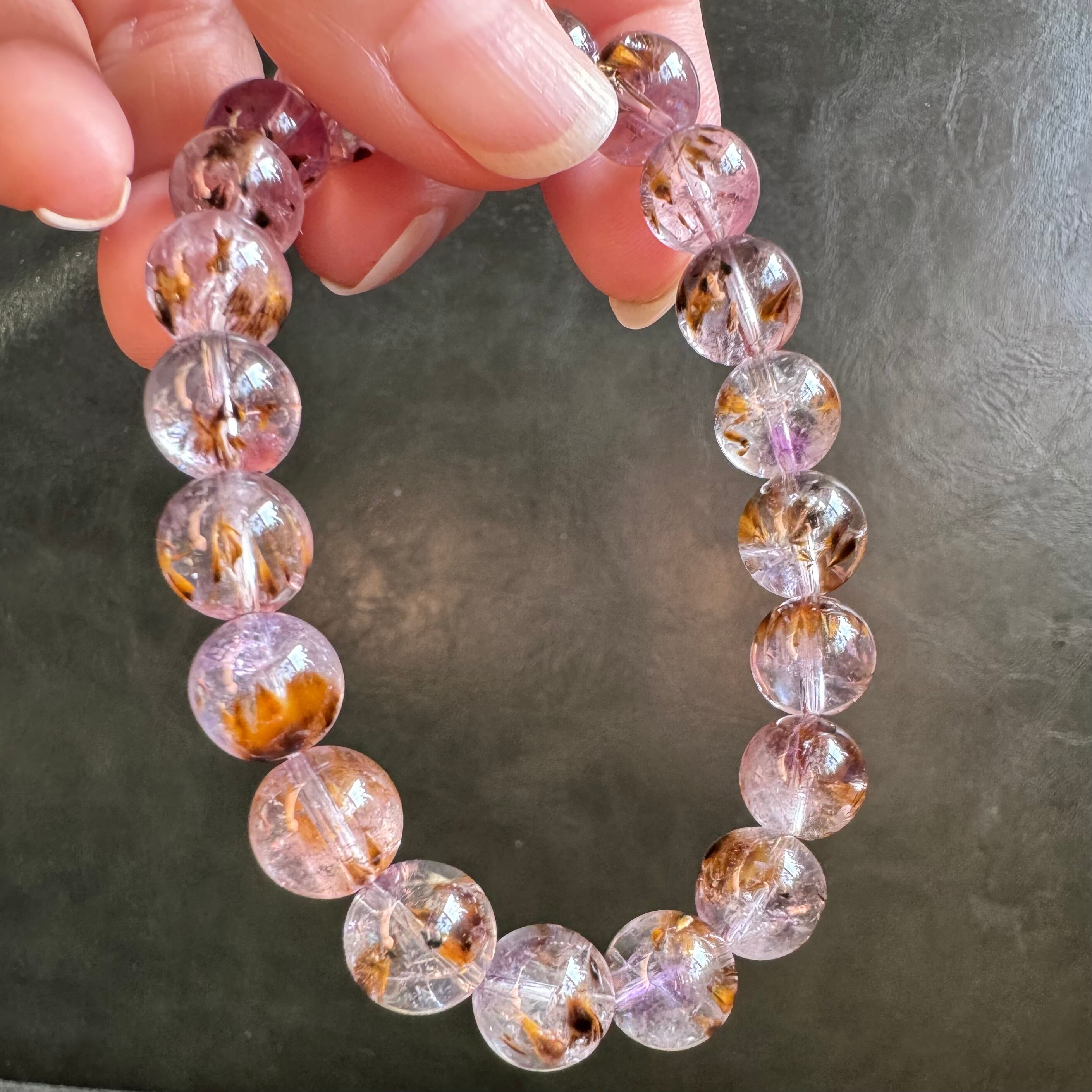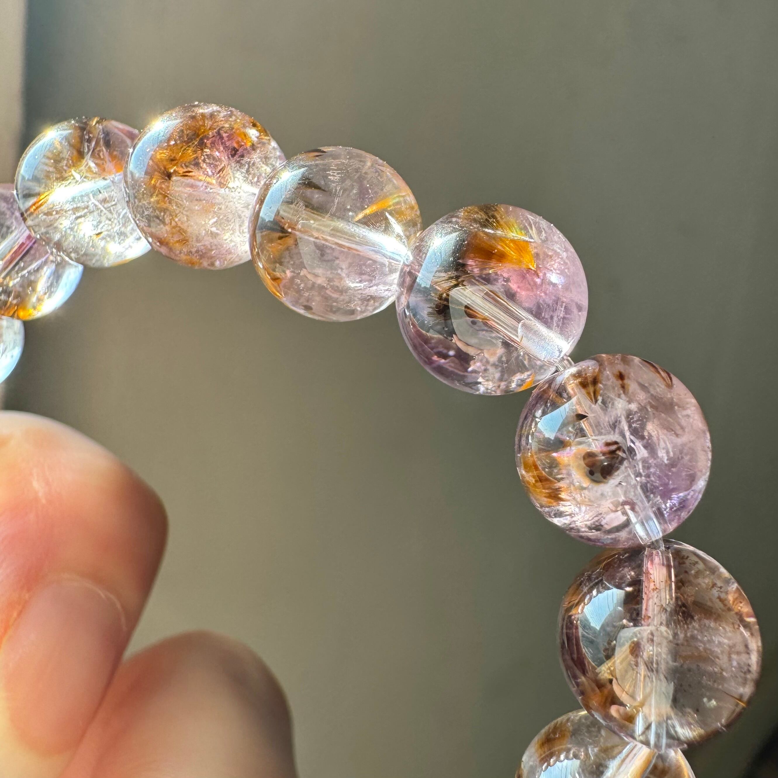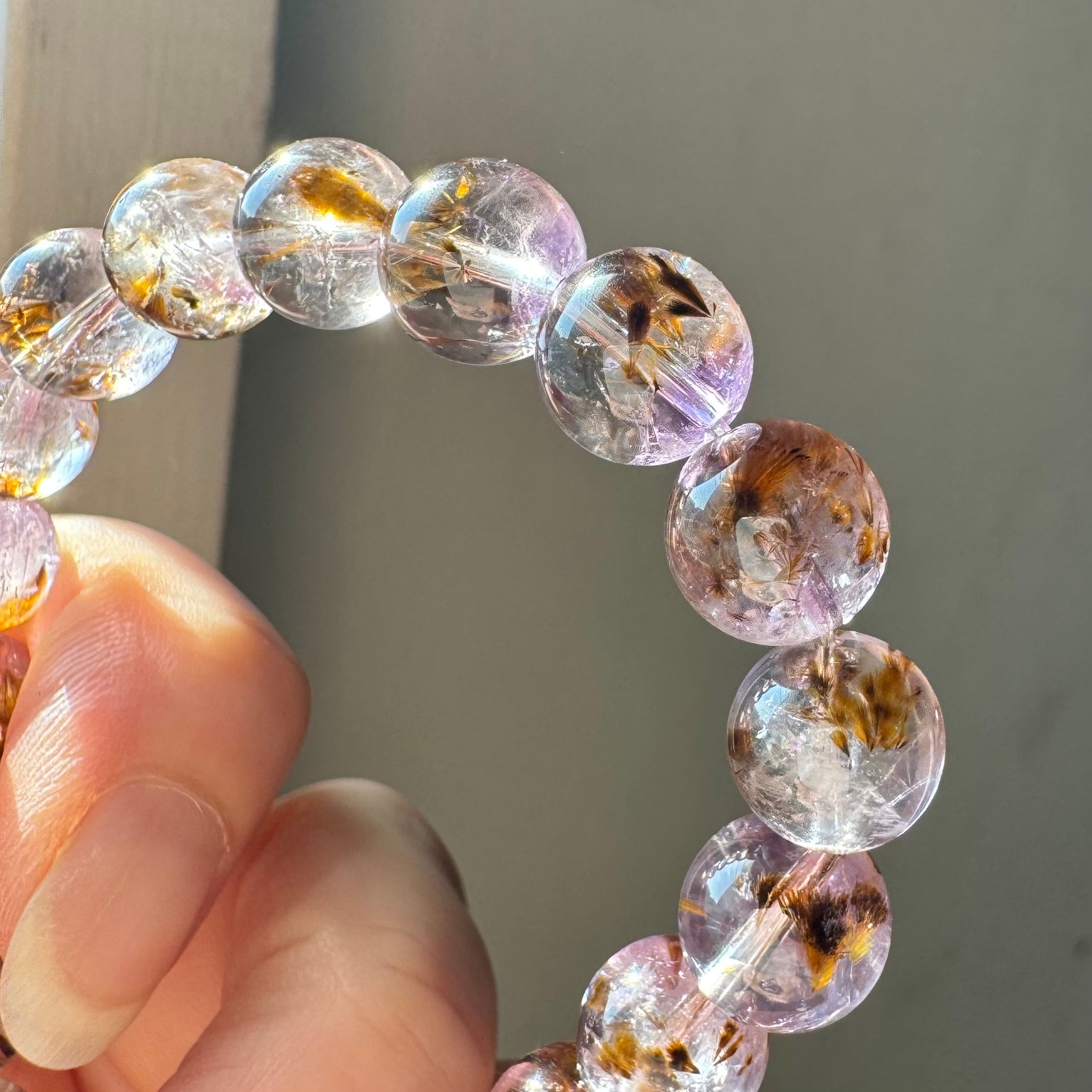 こちらは、お色が薄めのアメジストにカコクセナイトがしっかり入ったタイプになります
