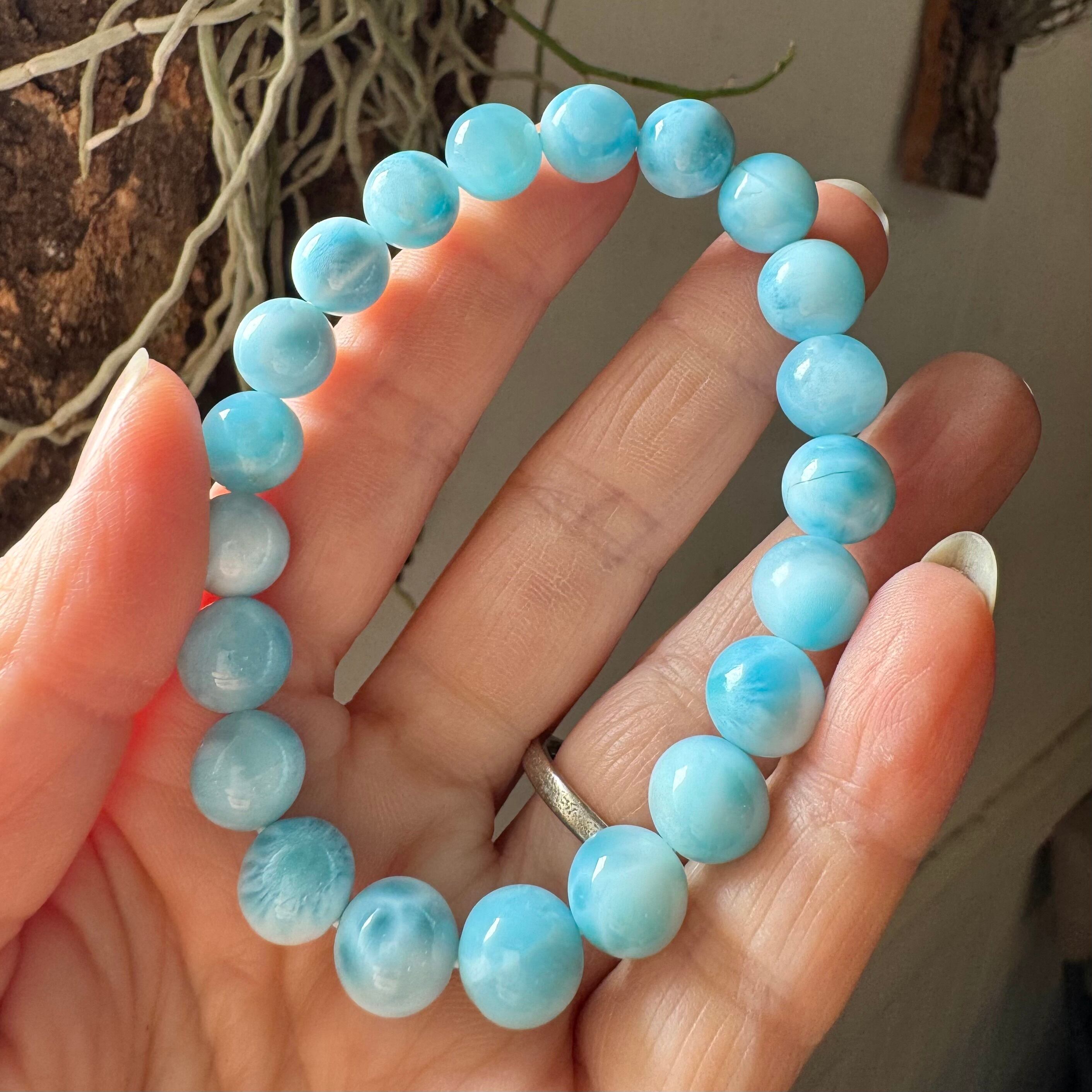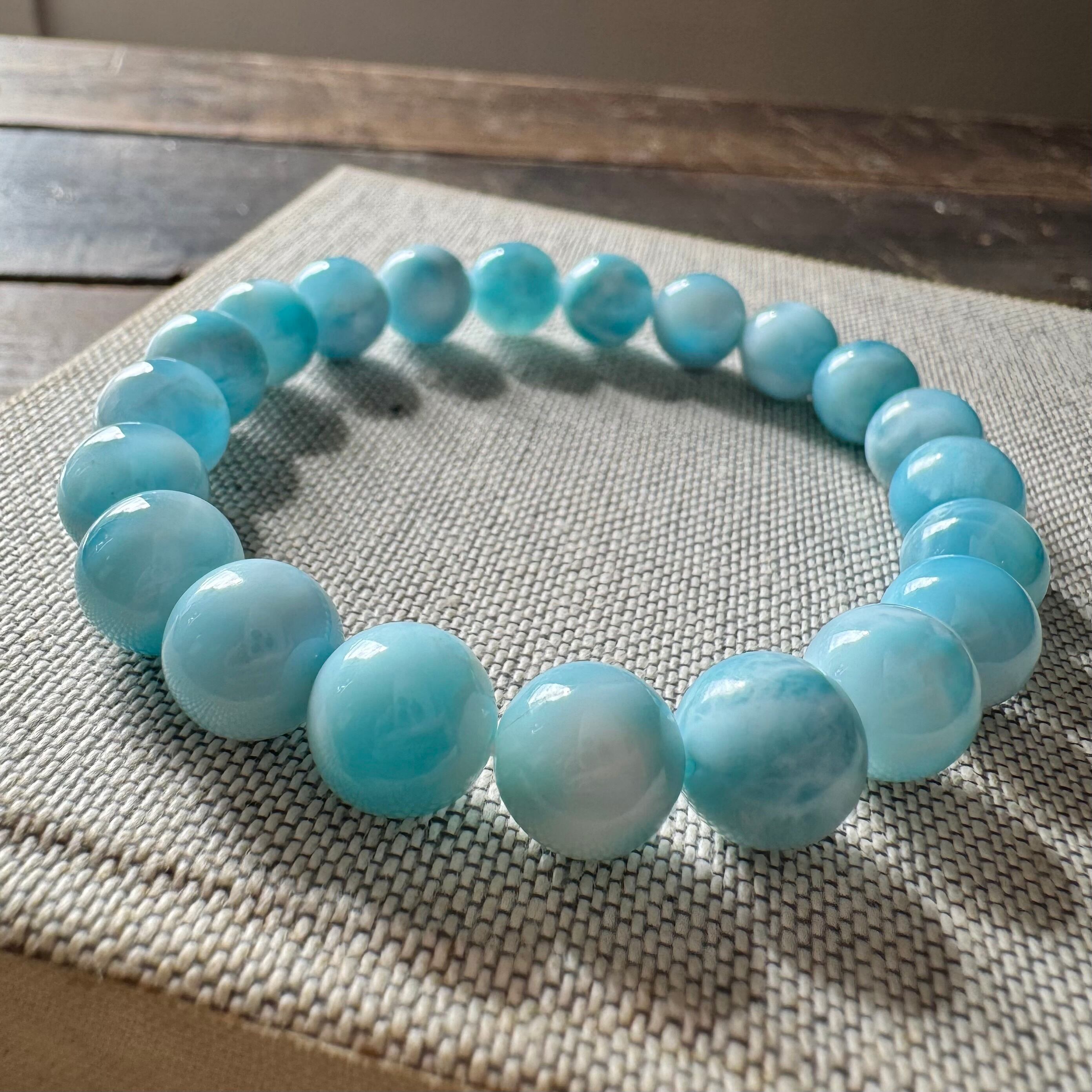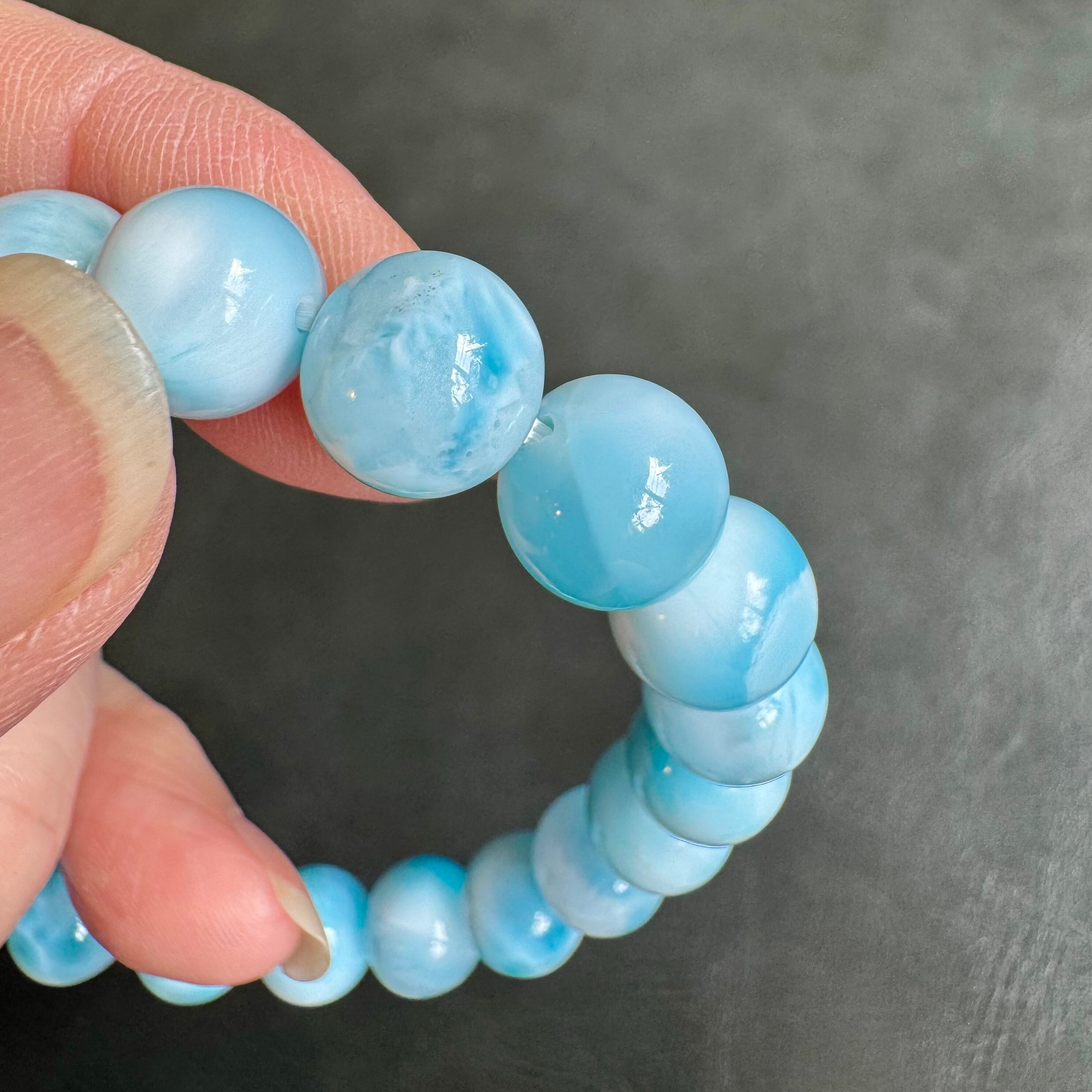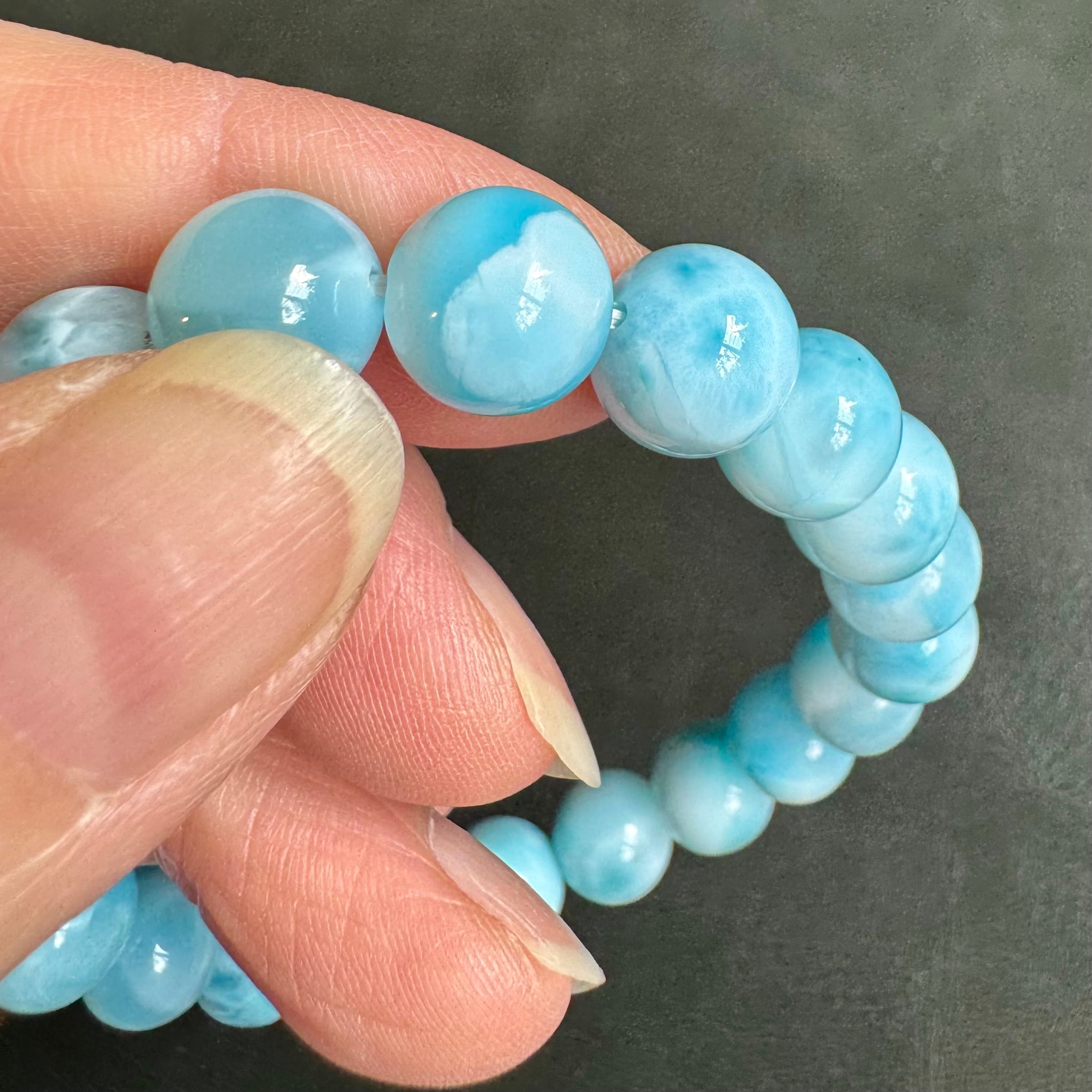黒点や窪みはほんの少しありますが、あまり気にならない程度で、綺麗なラリマーと言えると思います。