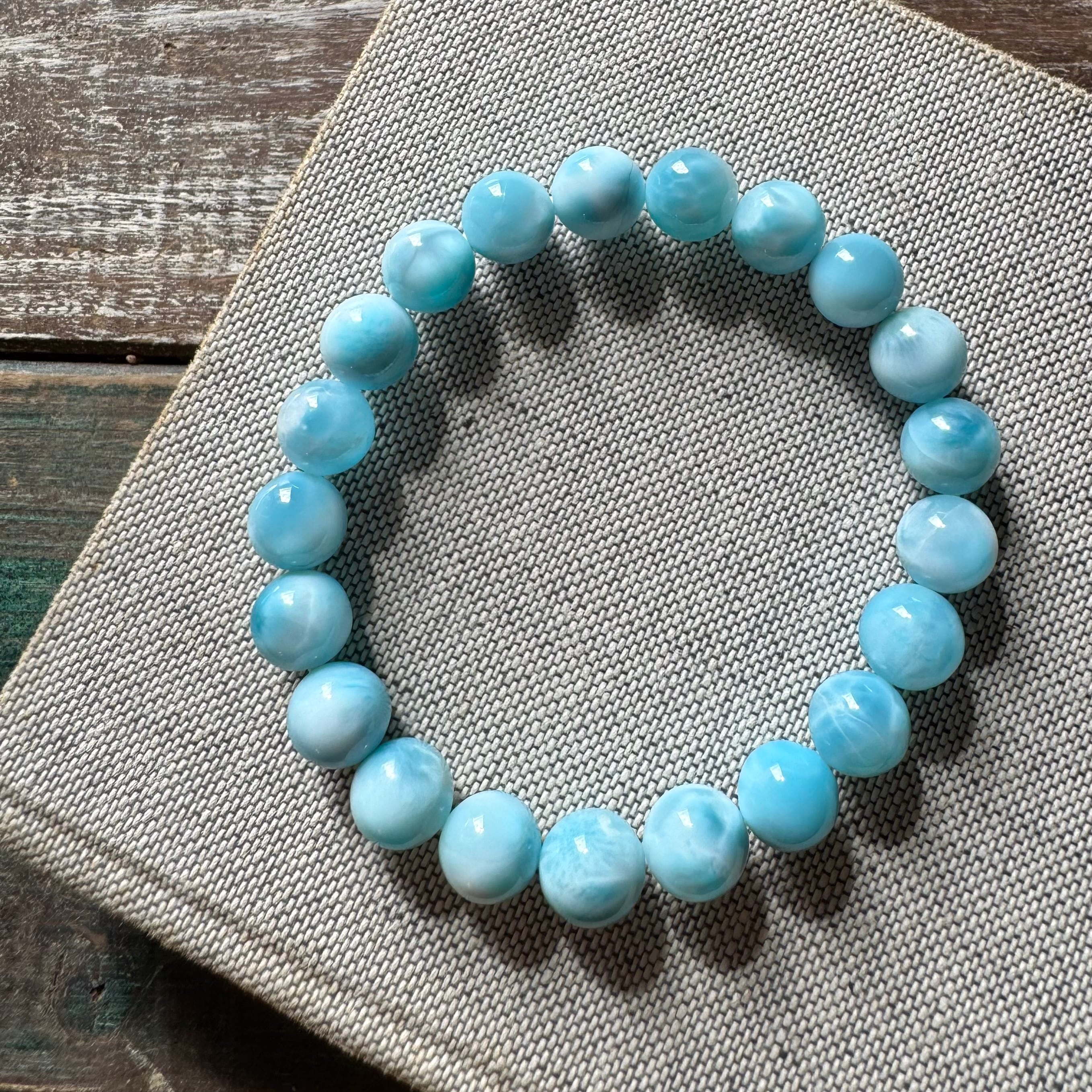 他の石にない綺麗な水色と、水面の様な白い模様が、とても人気の天然石です。