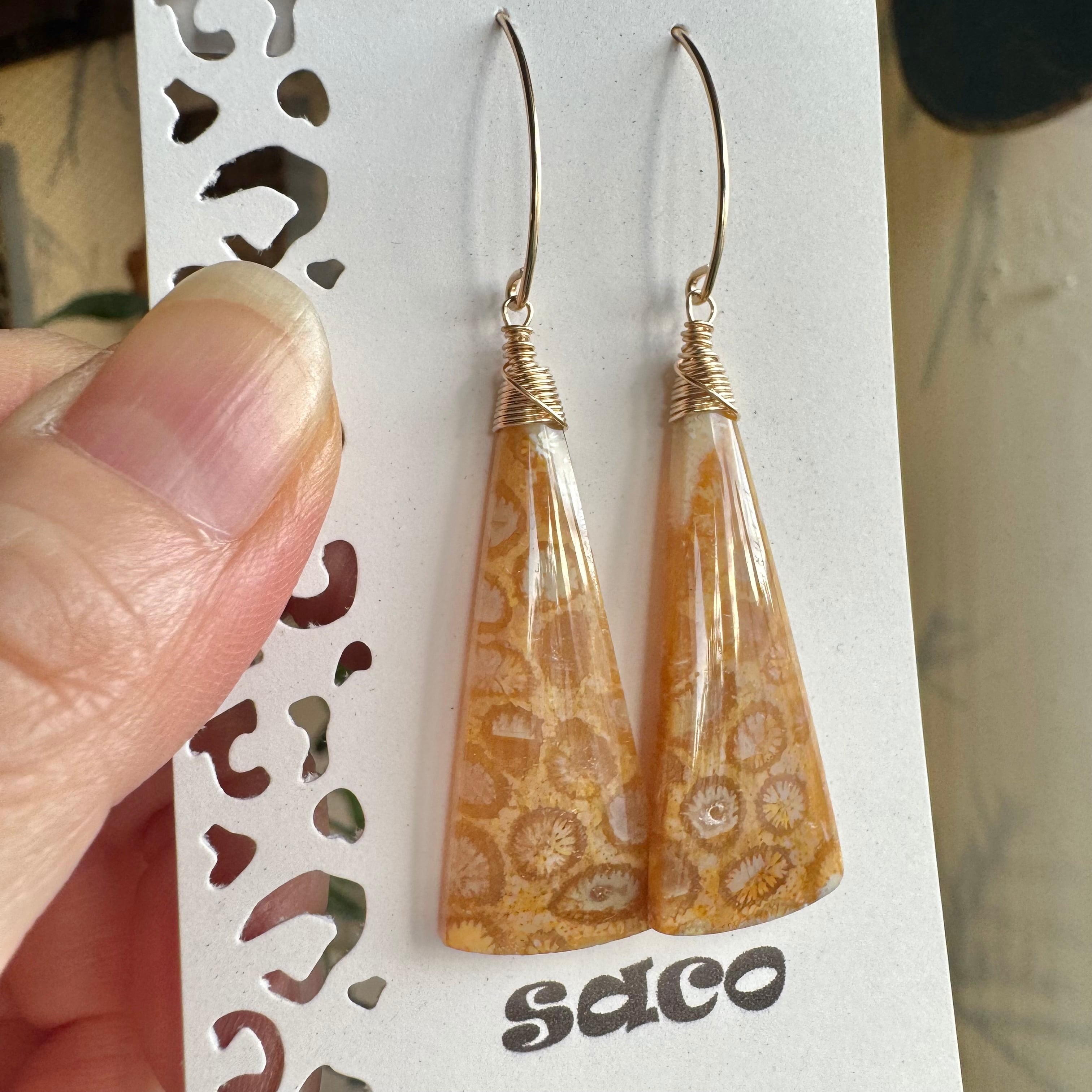 フォッシルコーラル*シンプルロングピアス(レオパード風)