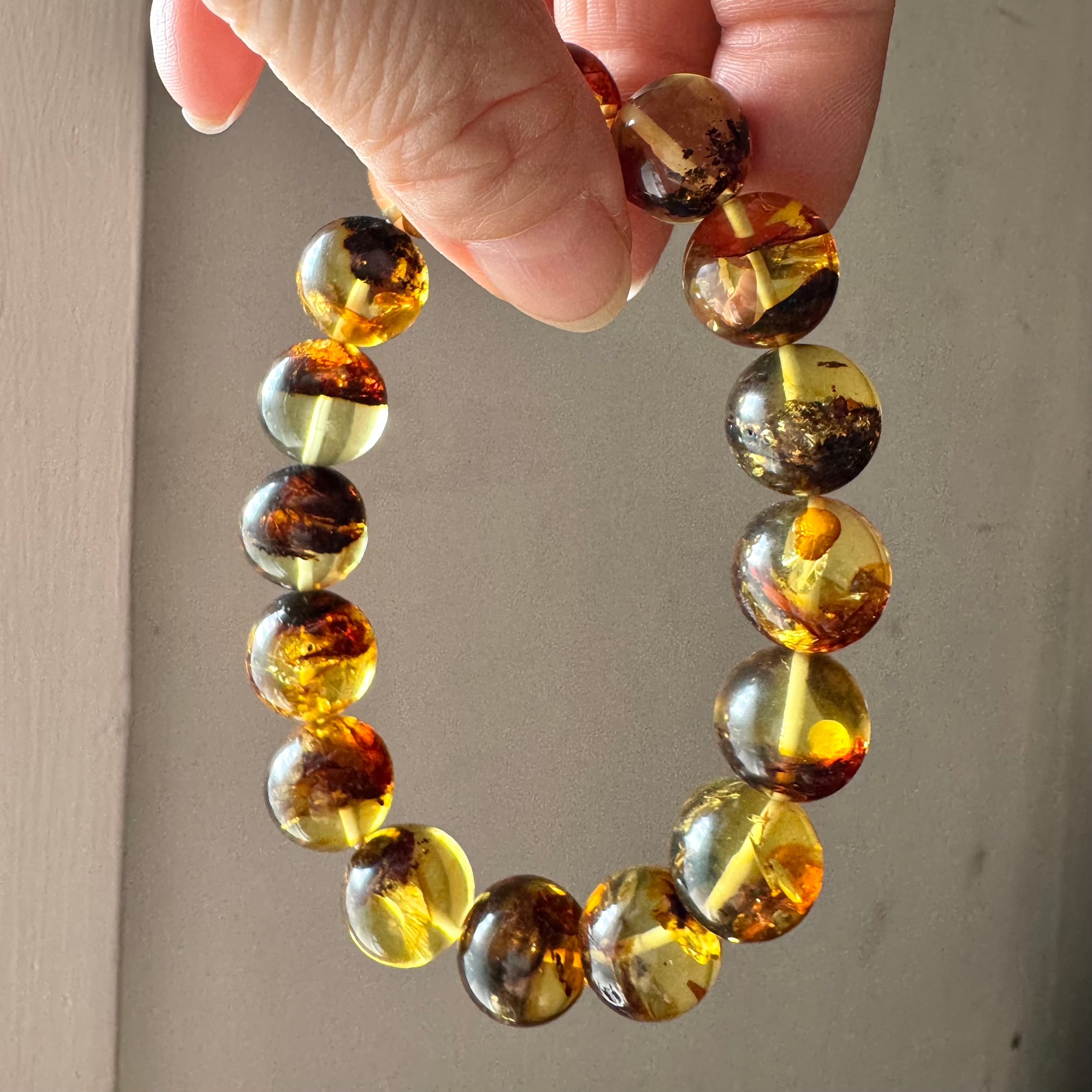 こちらのコニャックアンバーは、圧縮加工をしていない天然なものになります