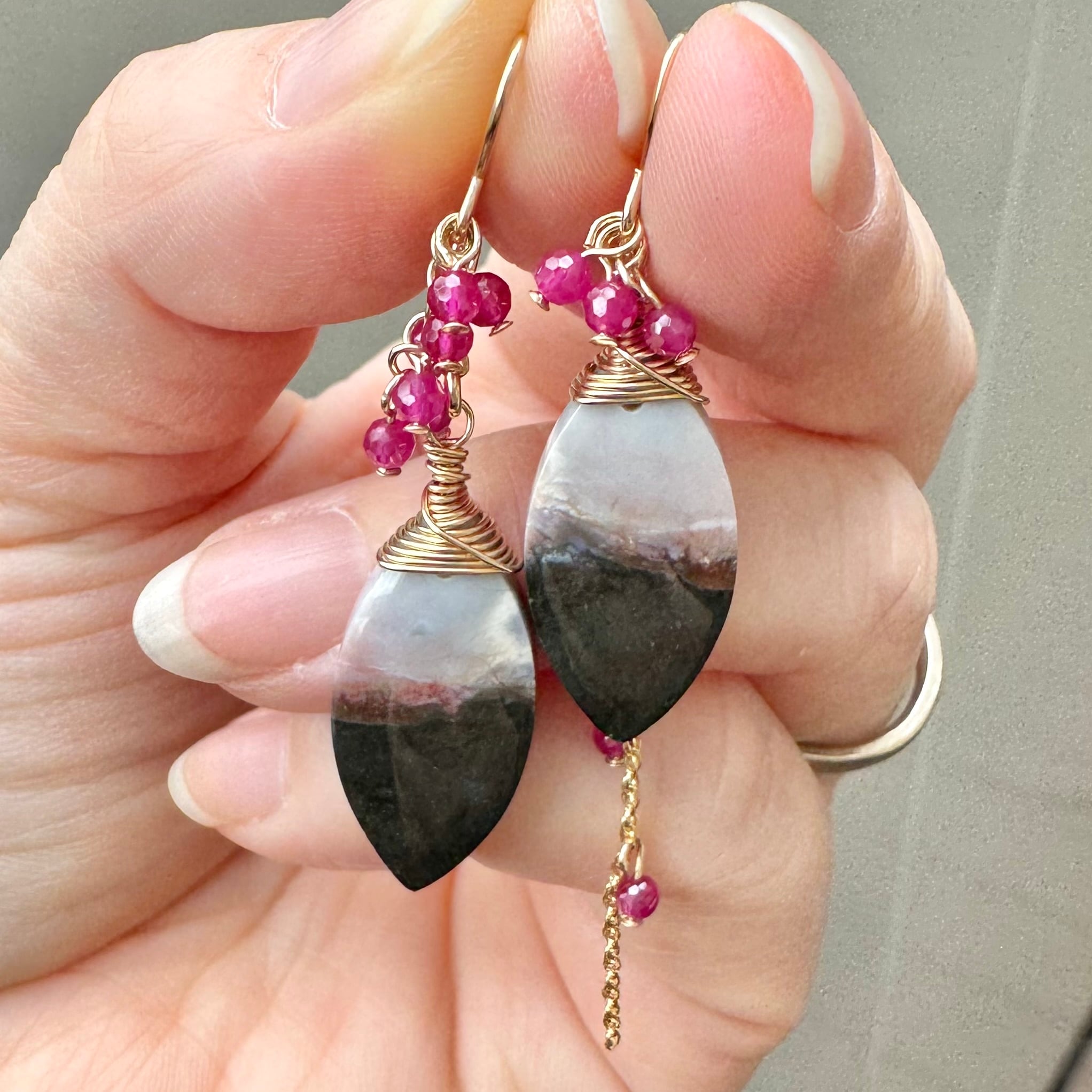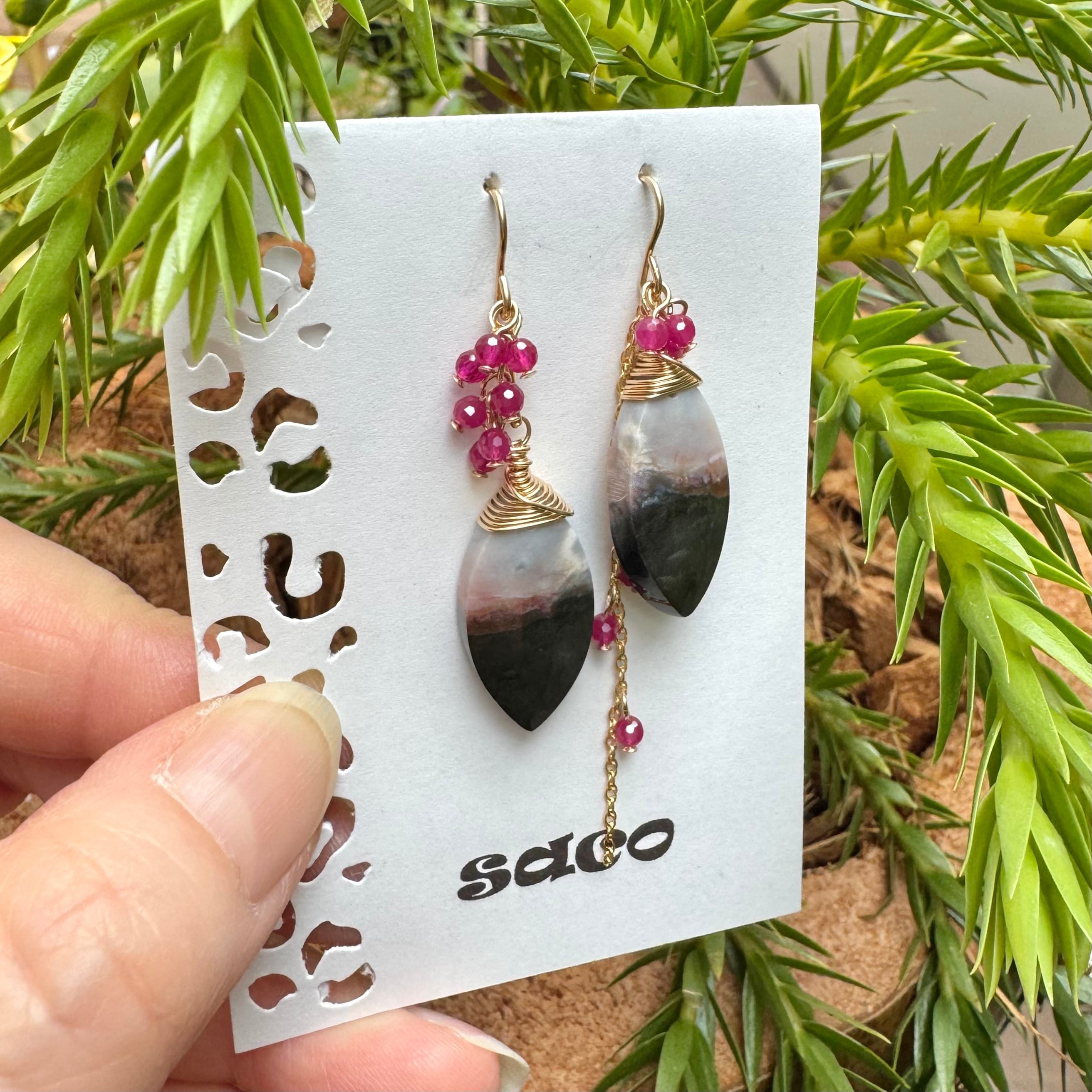 ピンクポリクロームジャスパー*アシメピアス(&ルビー)