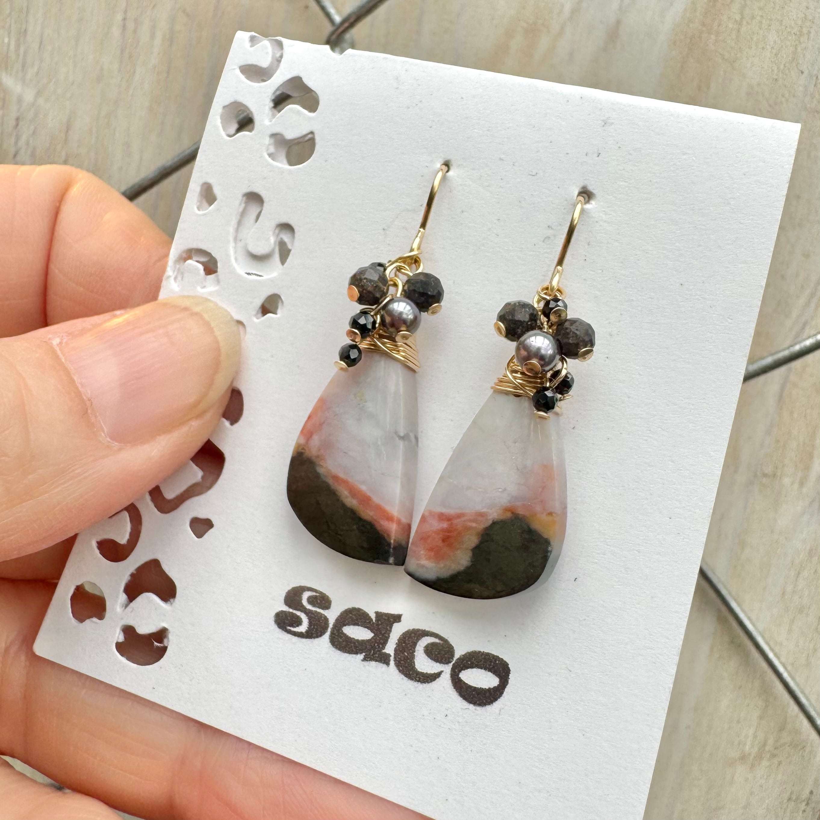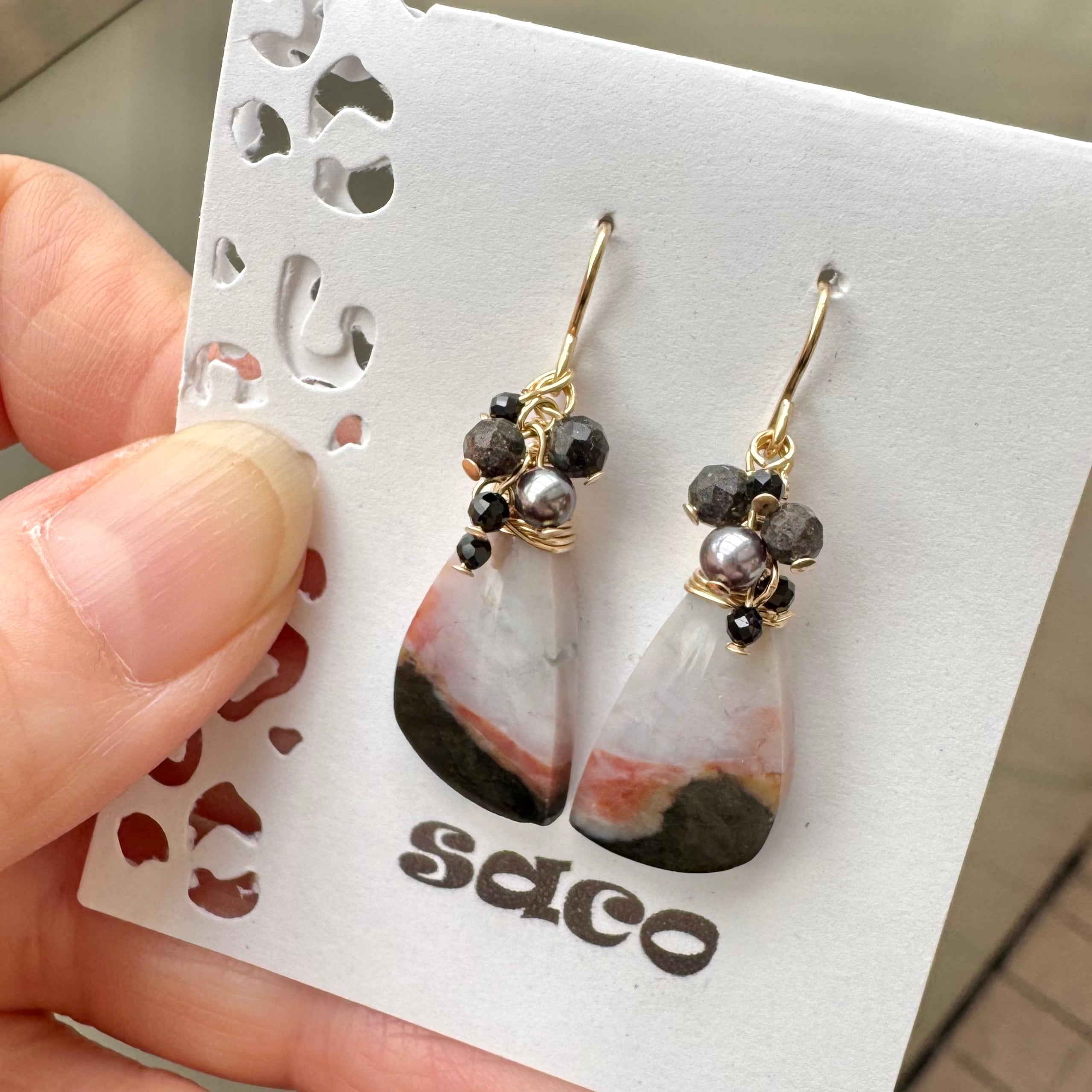 ピンクポリクロームジャスパー*つぶつぶピアス(&ブラック)