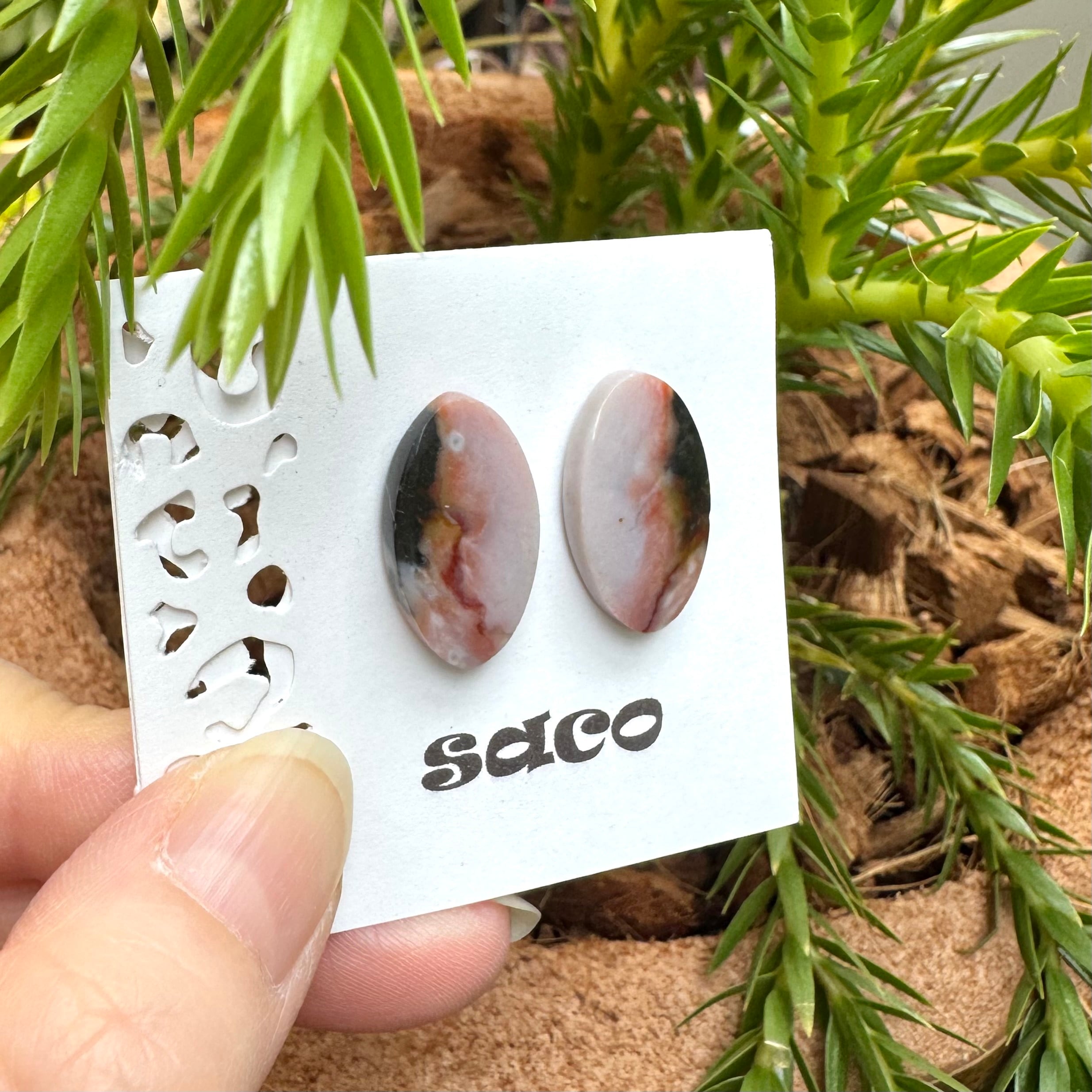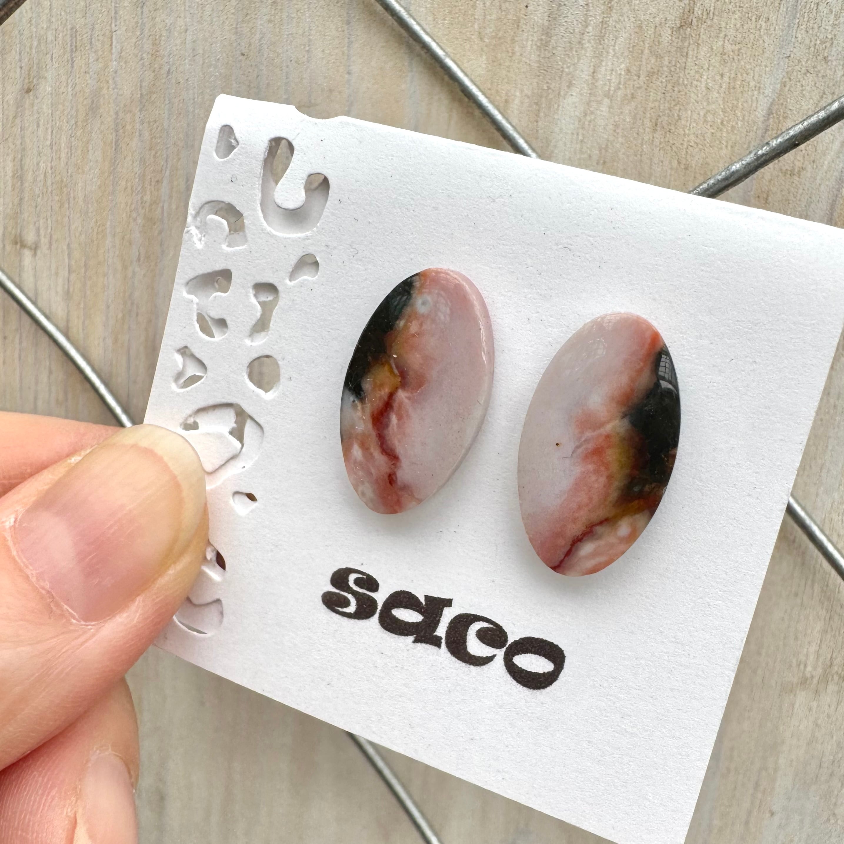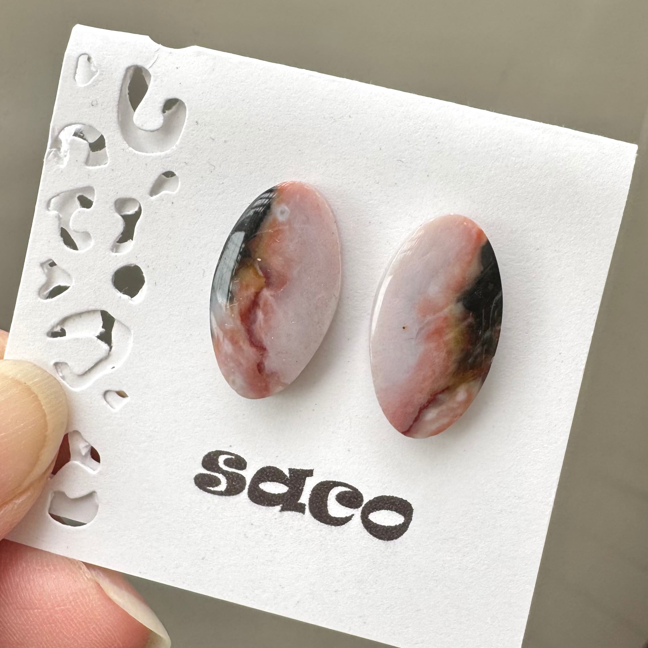 ピンクポリクロームジャスパー*スタッドピアス(縦模様)