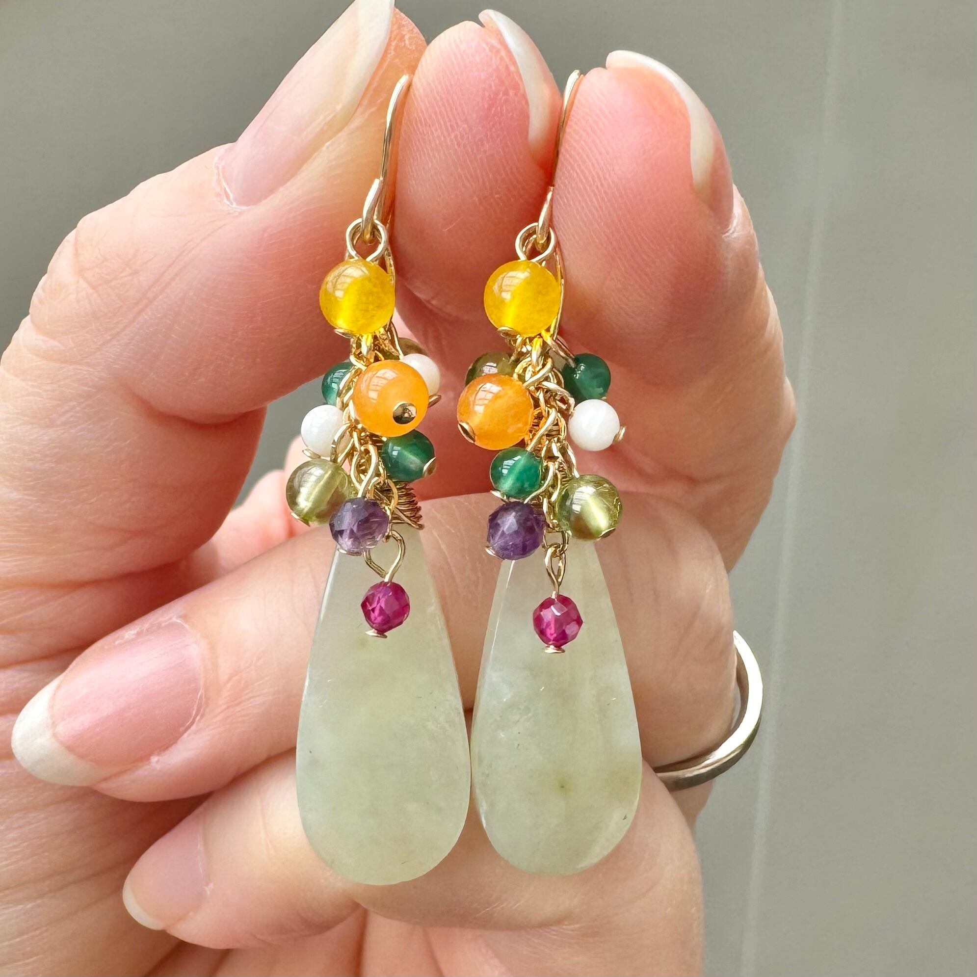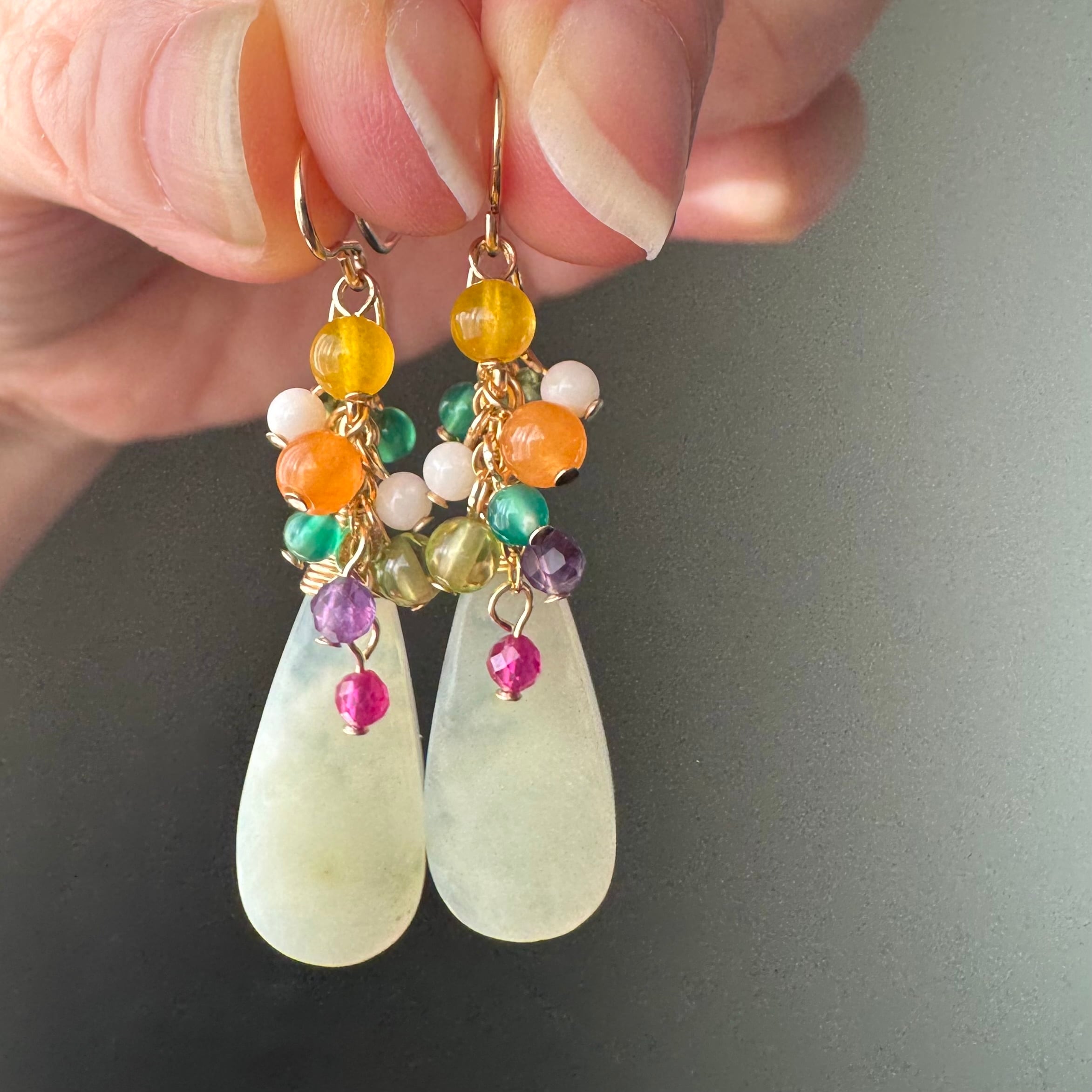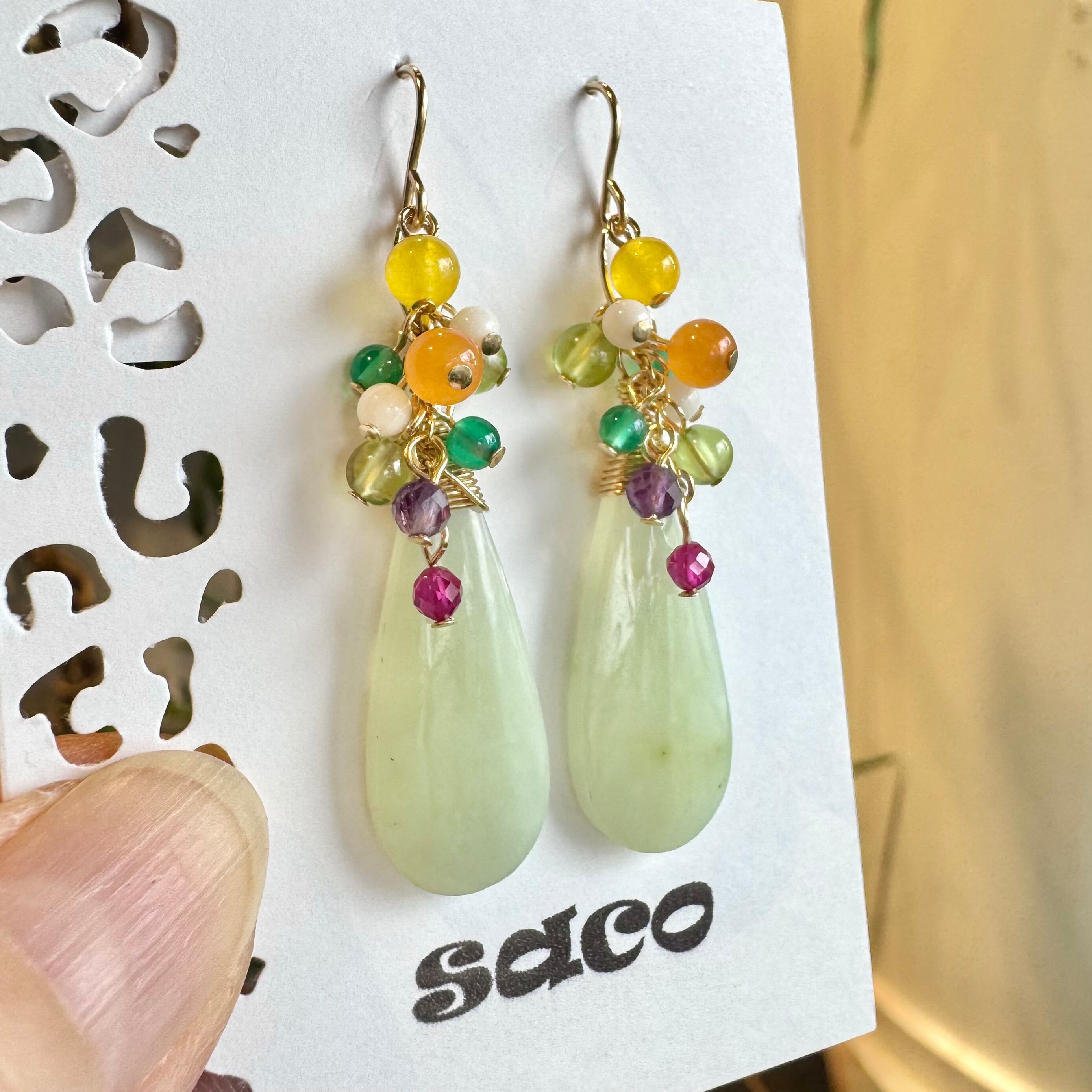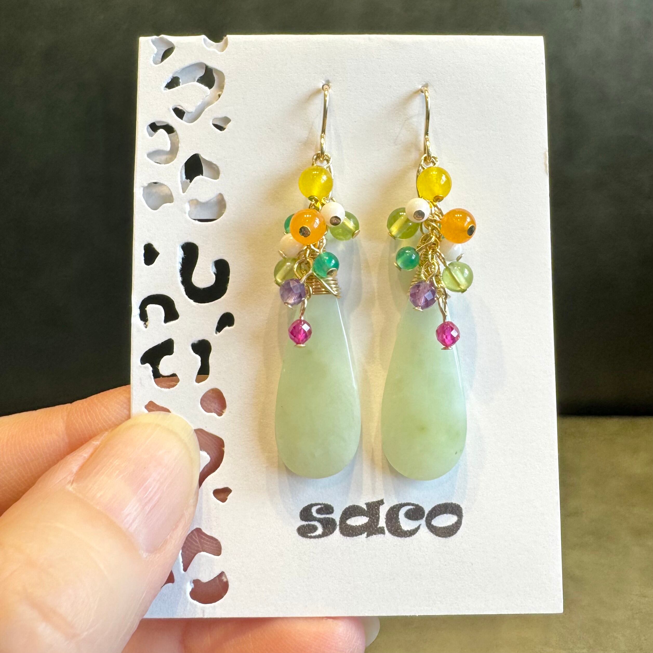 こちらは、インドネシアで現地の方から翡翠と呼ばれている天然石、ネフライトにカラフルなつぶつぶを合わせています