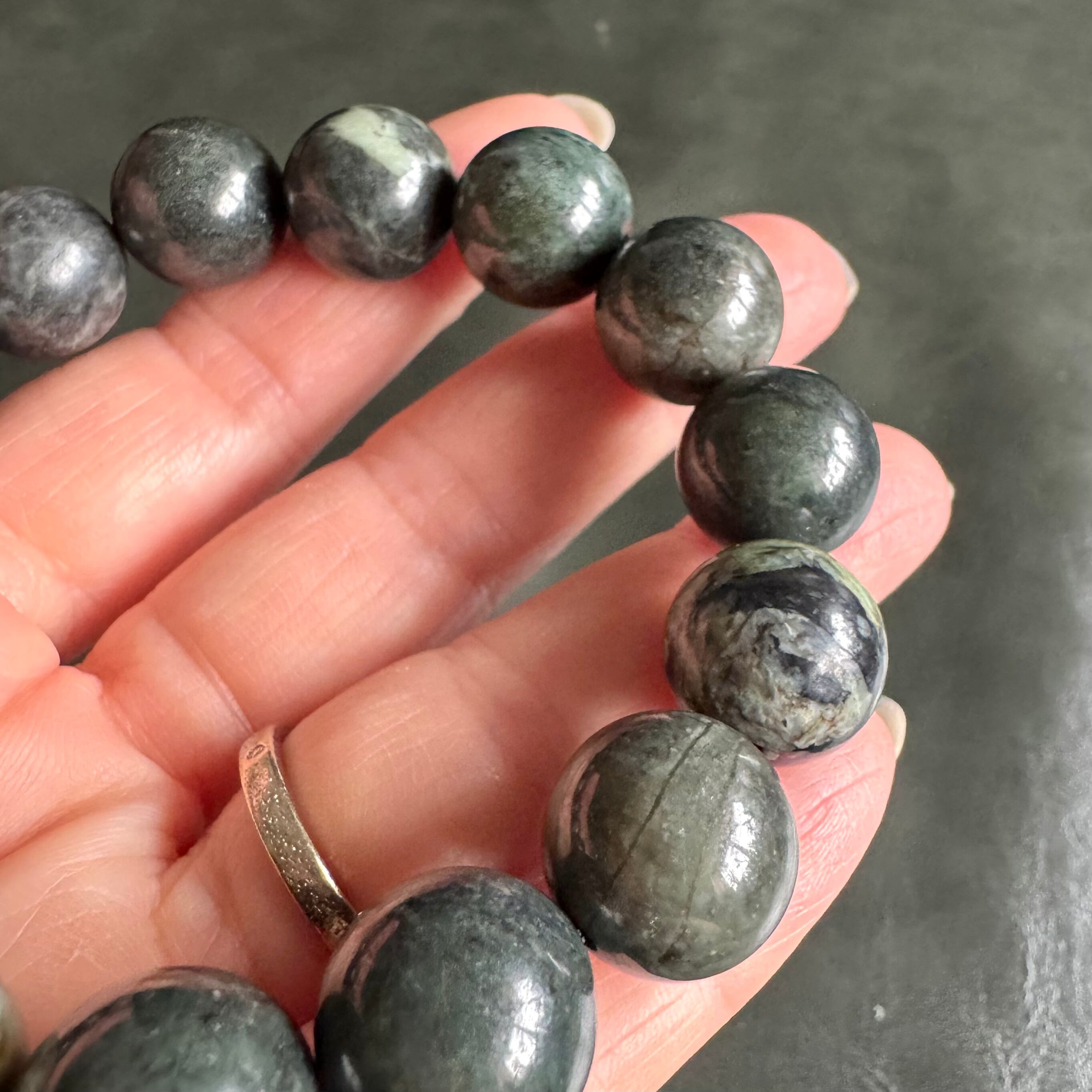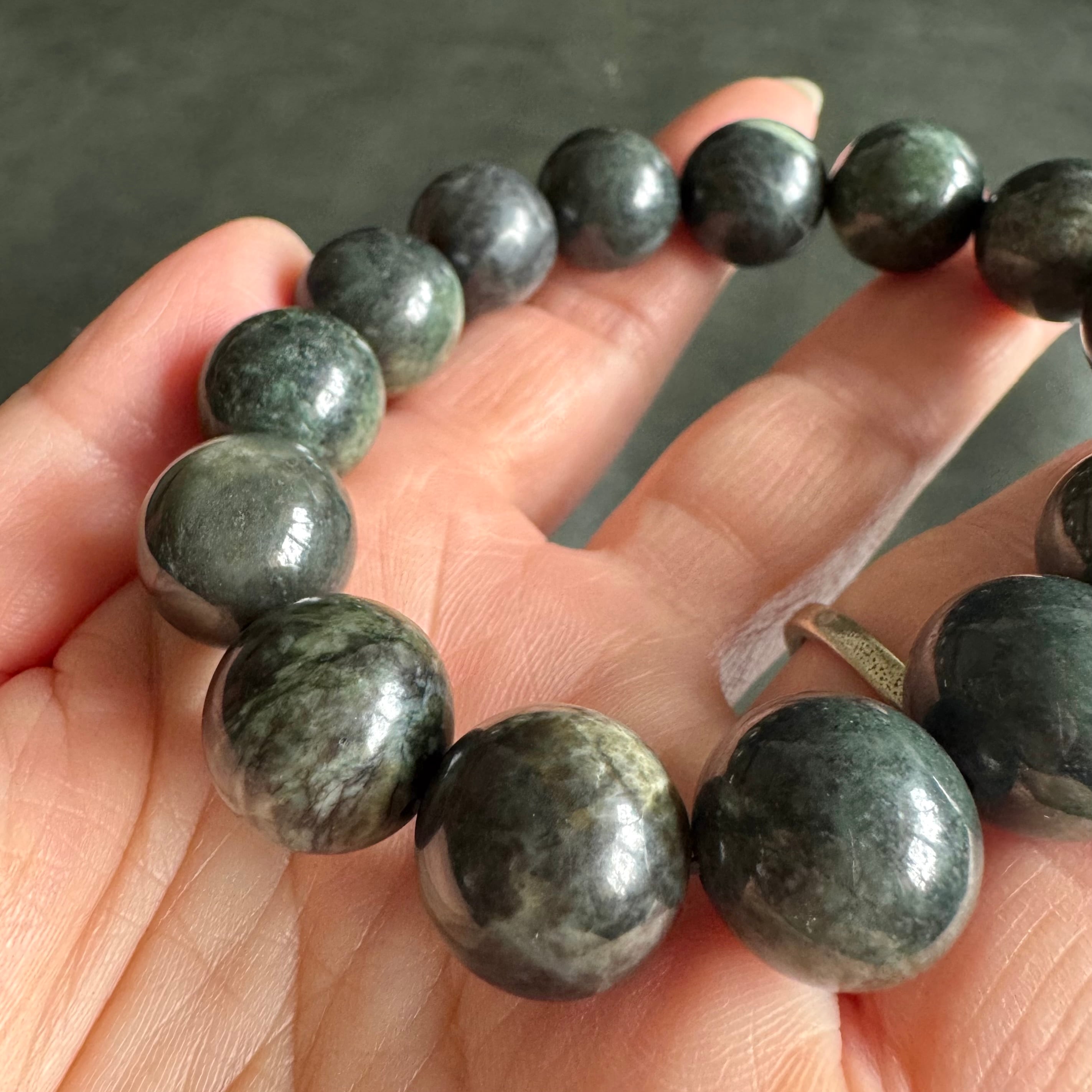 日本の石*日高翡翠ブラック(グリーン寄り)*14mm