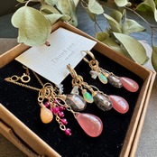 ピンク系の華やかに仕上げた着せ替えピアスとネックレスです