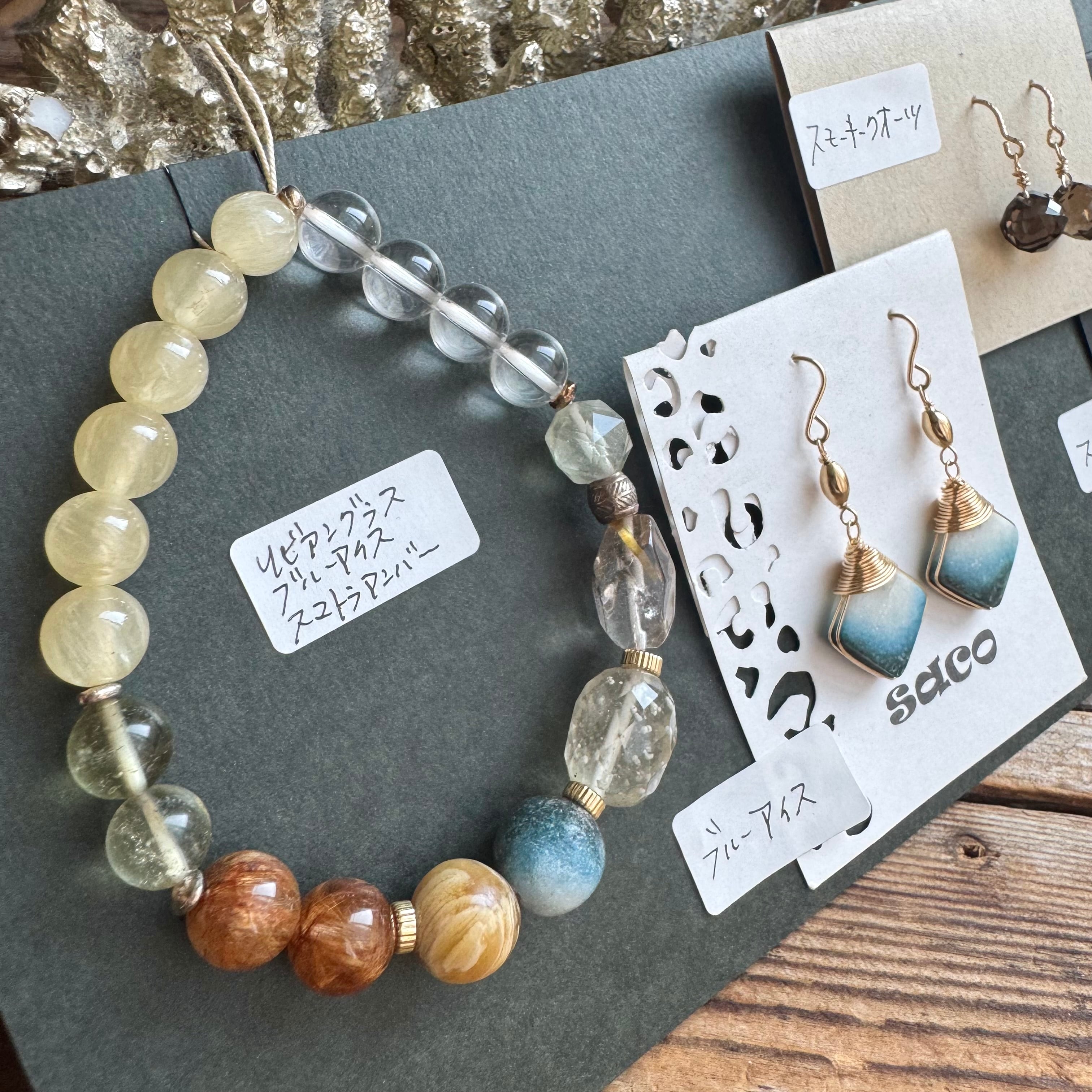 水晶・イエローアラゴナイト・スマトラアンバーも使っています