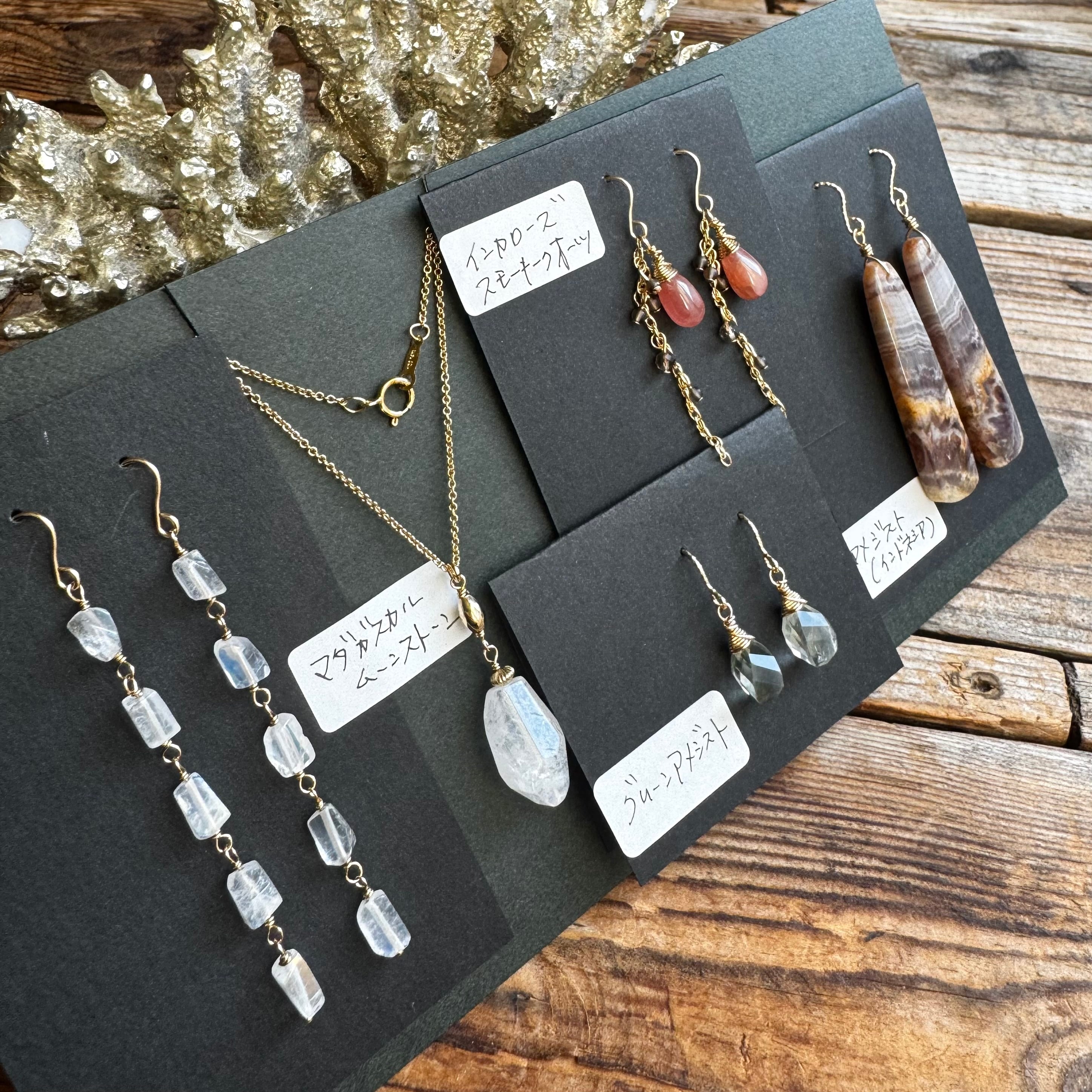 マダガスカルムーンストーンのピアスとネックレスのセットにピアス3点を加えた5点セットです
