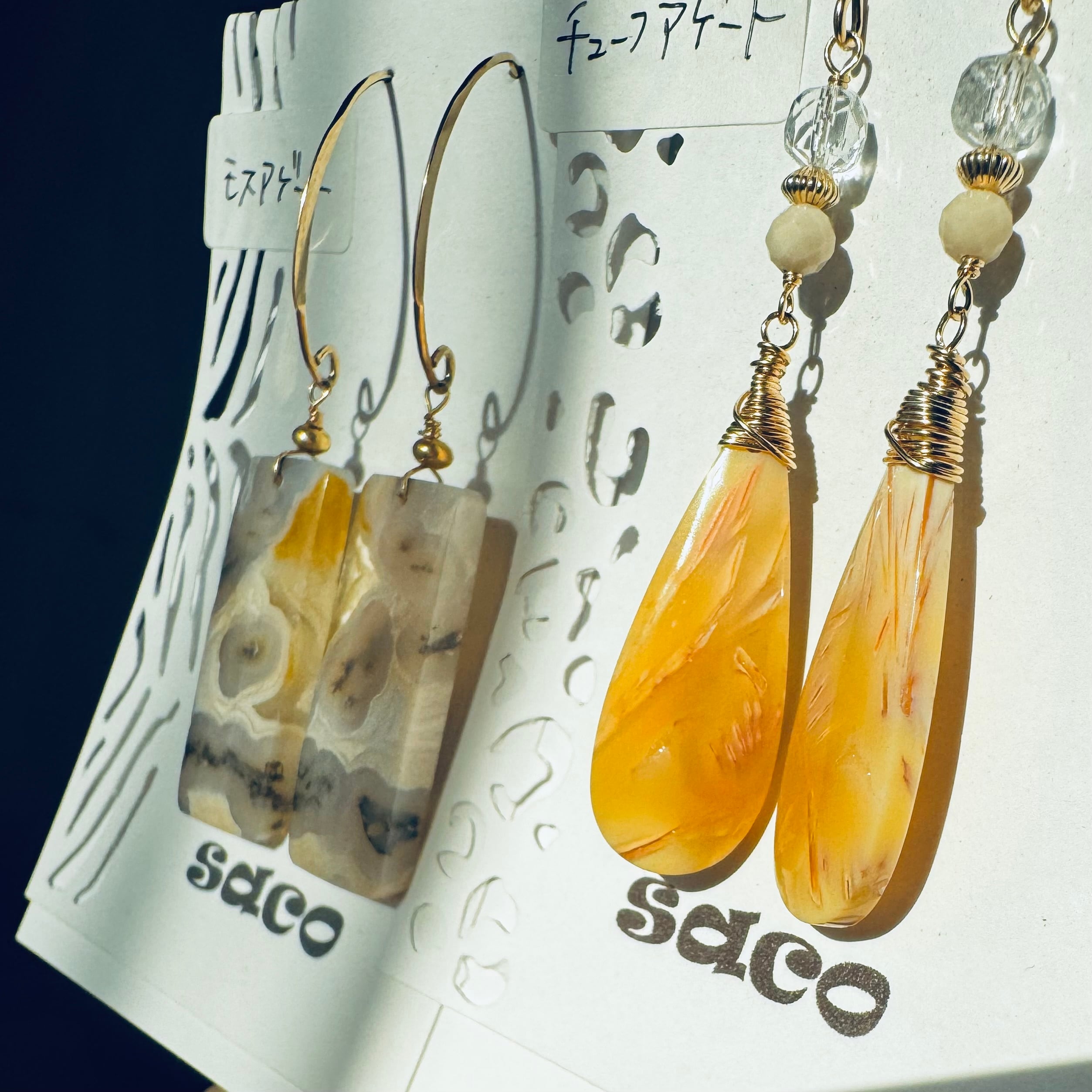 こちらのピアスとネックレスは、14kgfでお仕立てしています