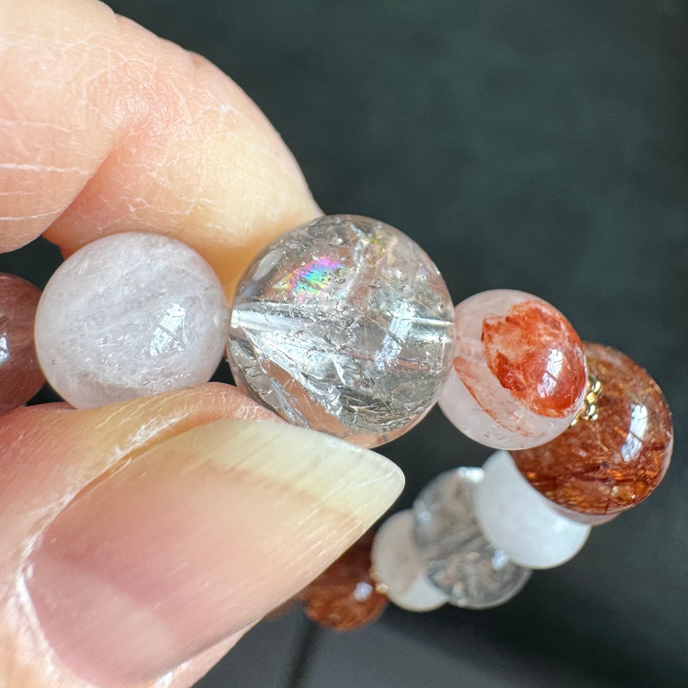 コッパールチルは、一般的なゴールドルチルよりも落ち着いたパワーと言われていたり、ピンクルチルクオーツは、愛情のエネルギーも併せ持つとして「最強の恋愛運」と言われたり、アイリスは虹色に輝くことから逆境を希望に変える力があると言われたりします