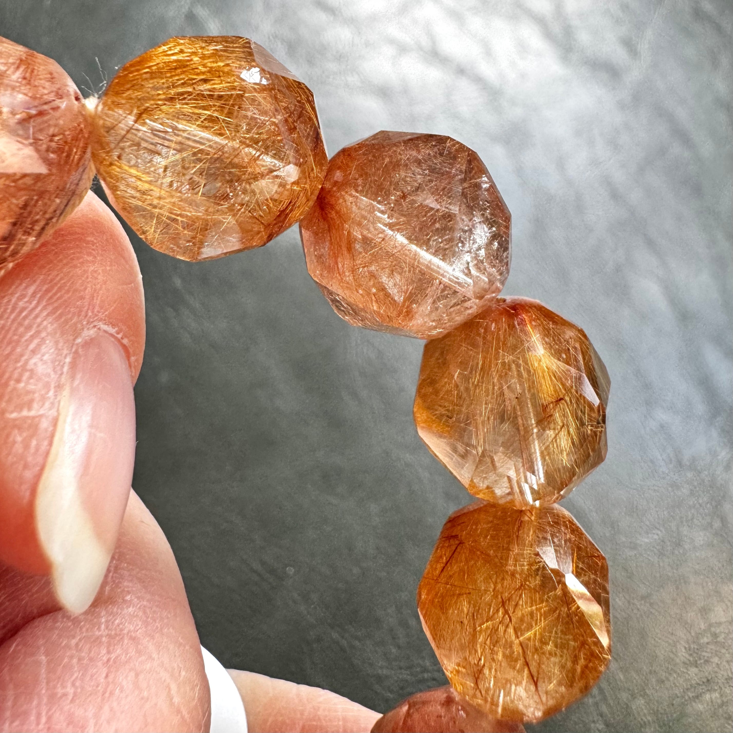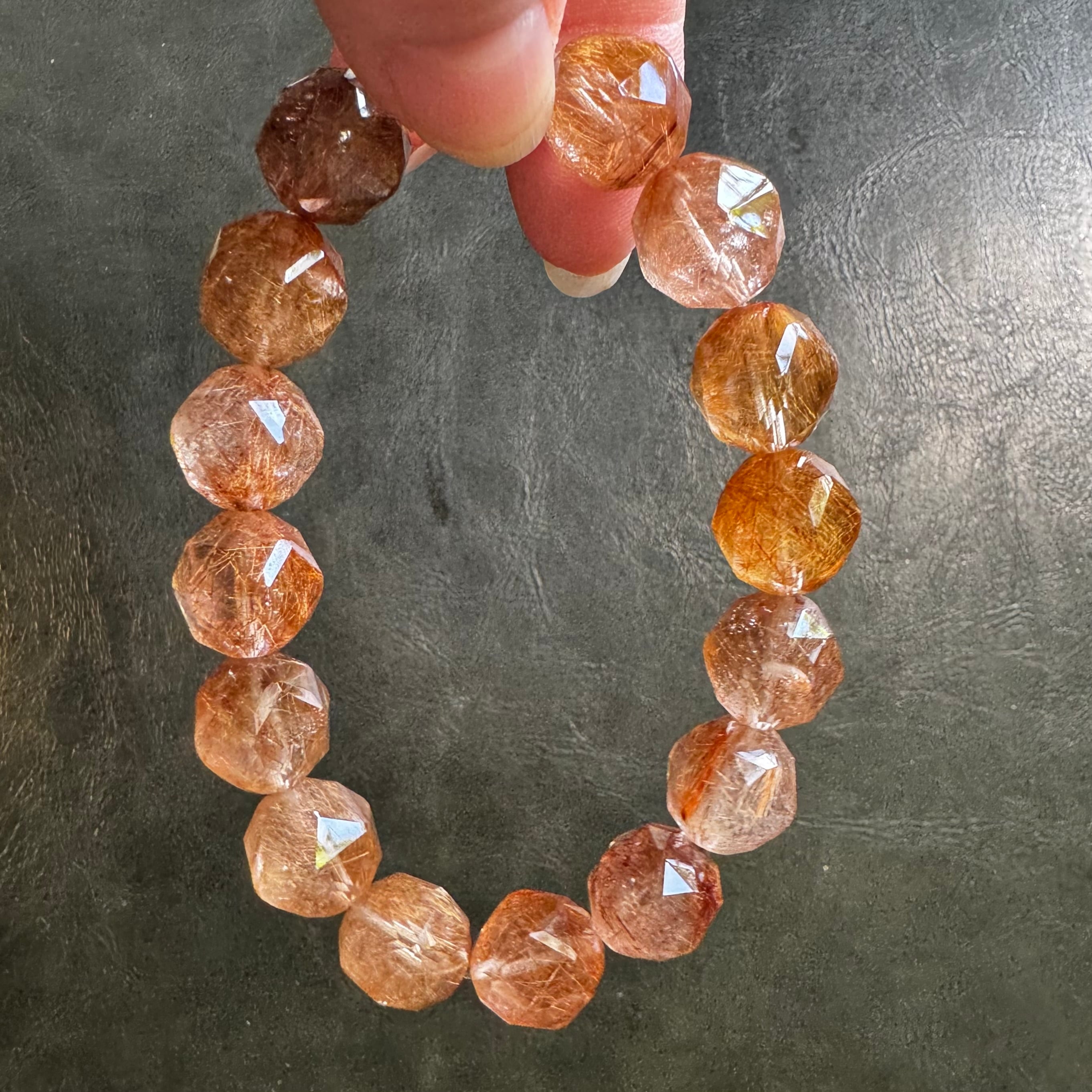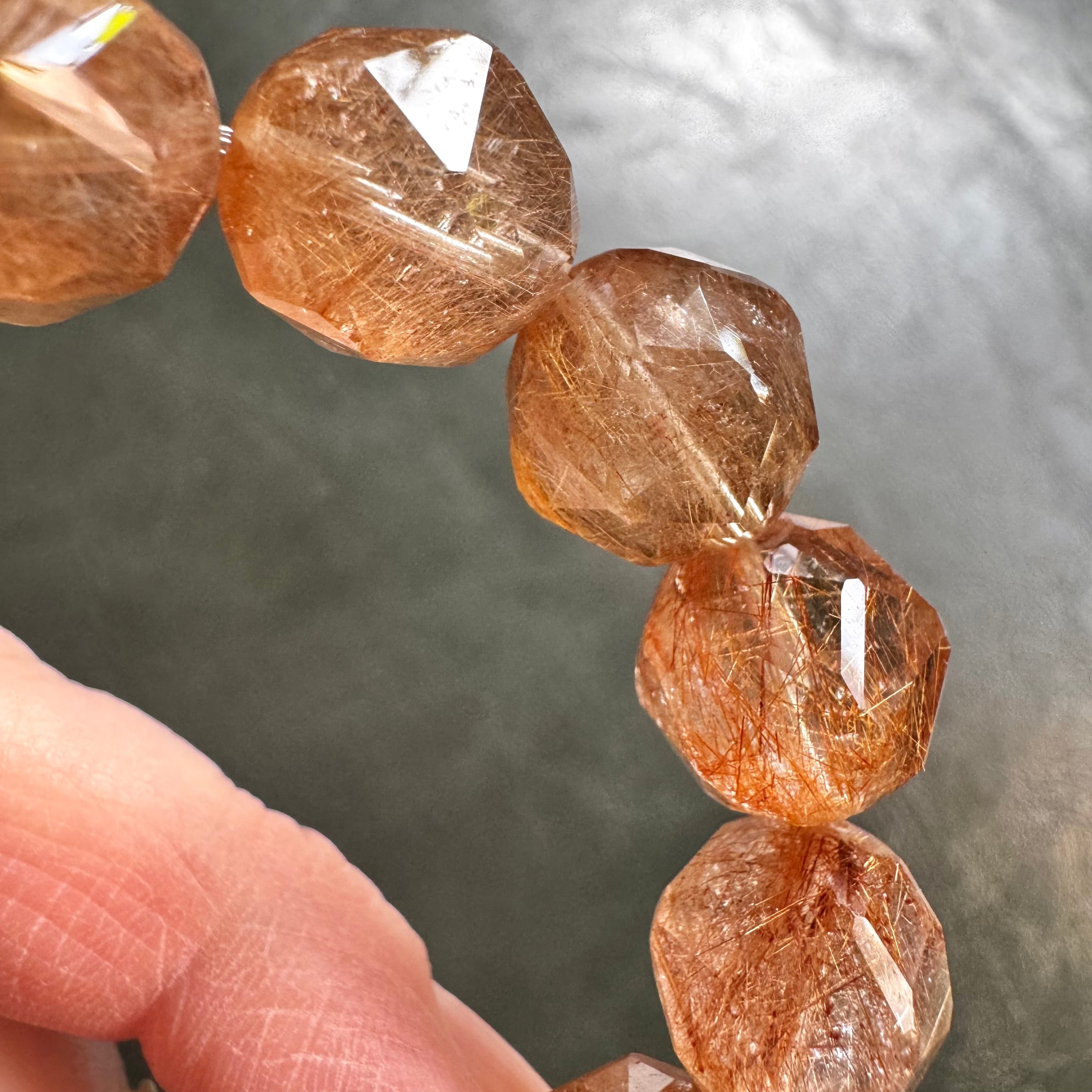 珍しいカット入りルチルクオーツ・13mm(内周17.5cm)