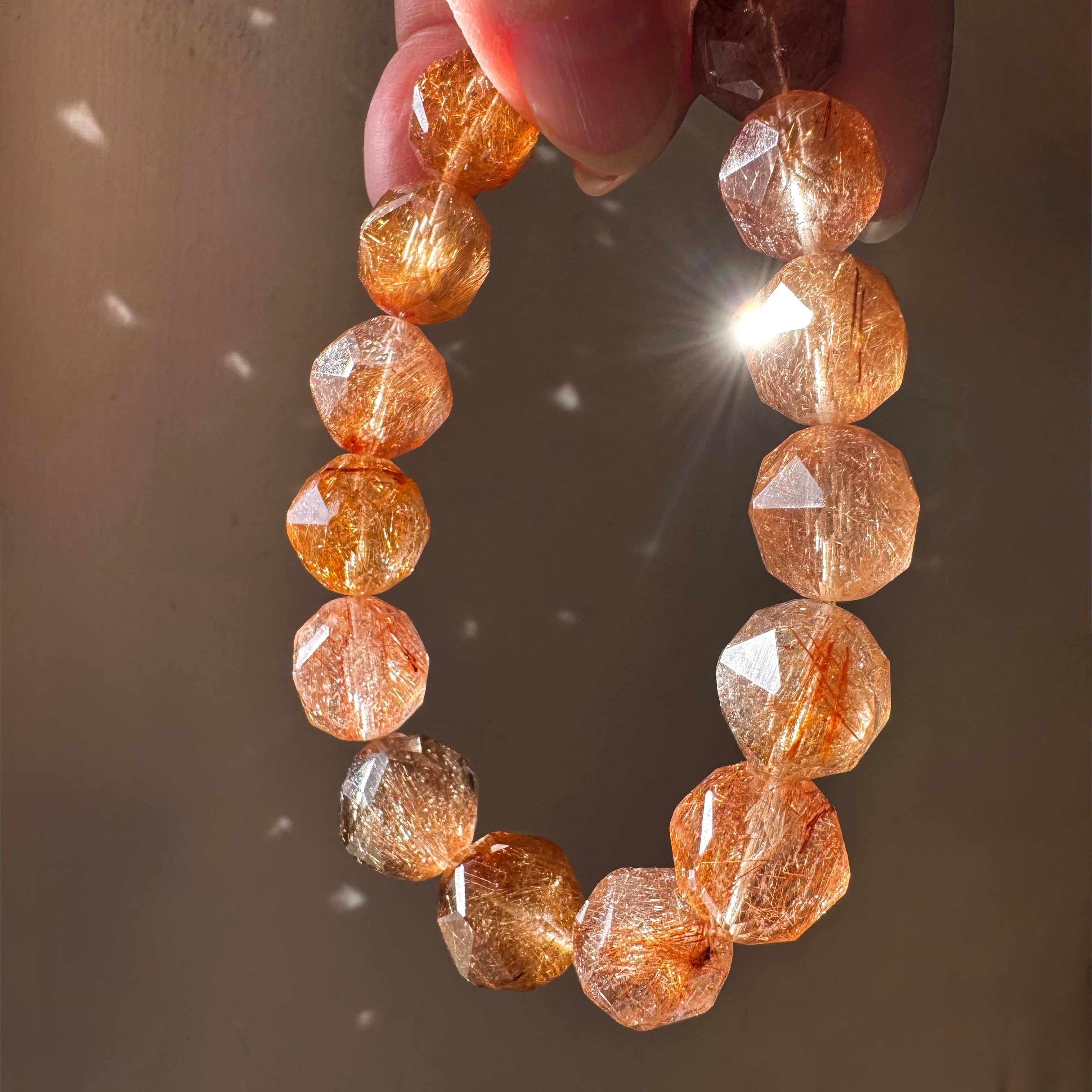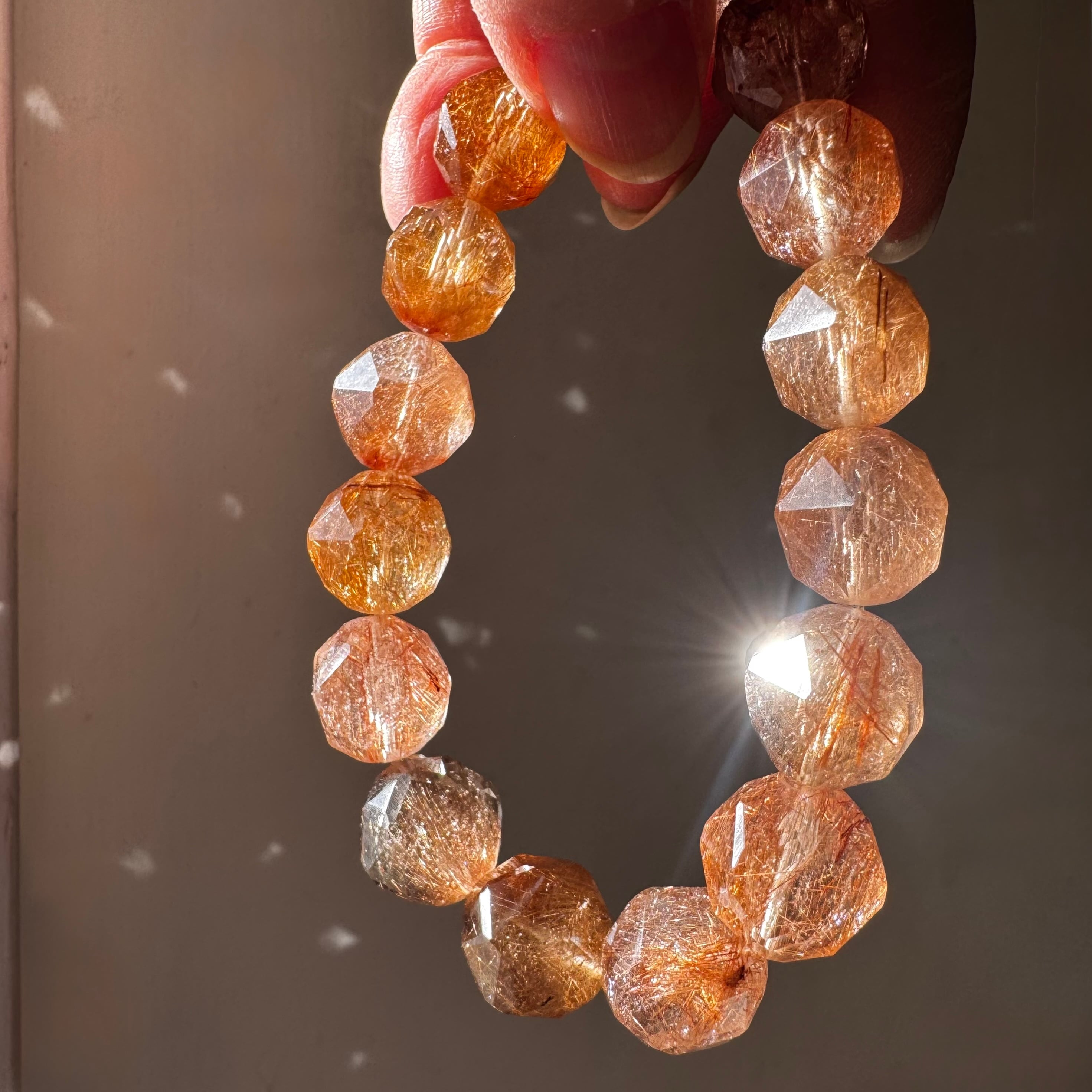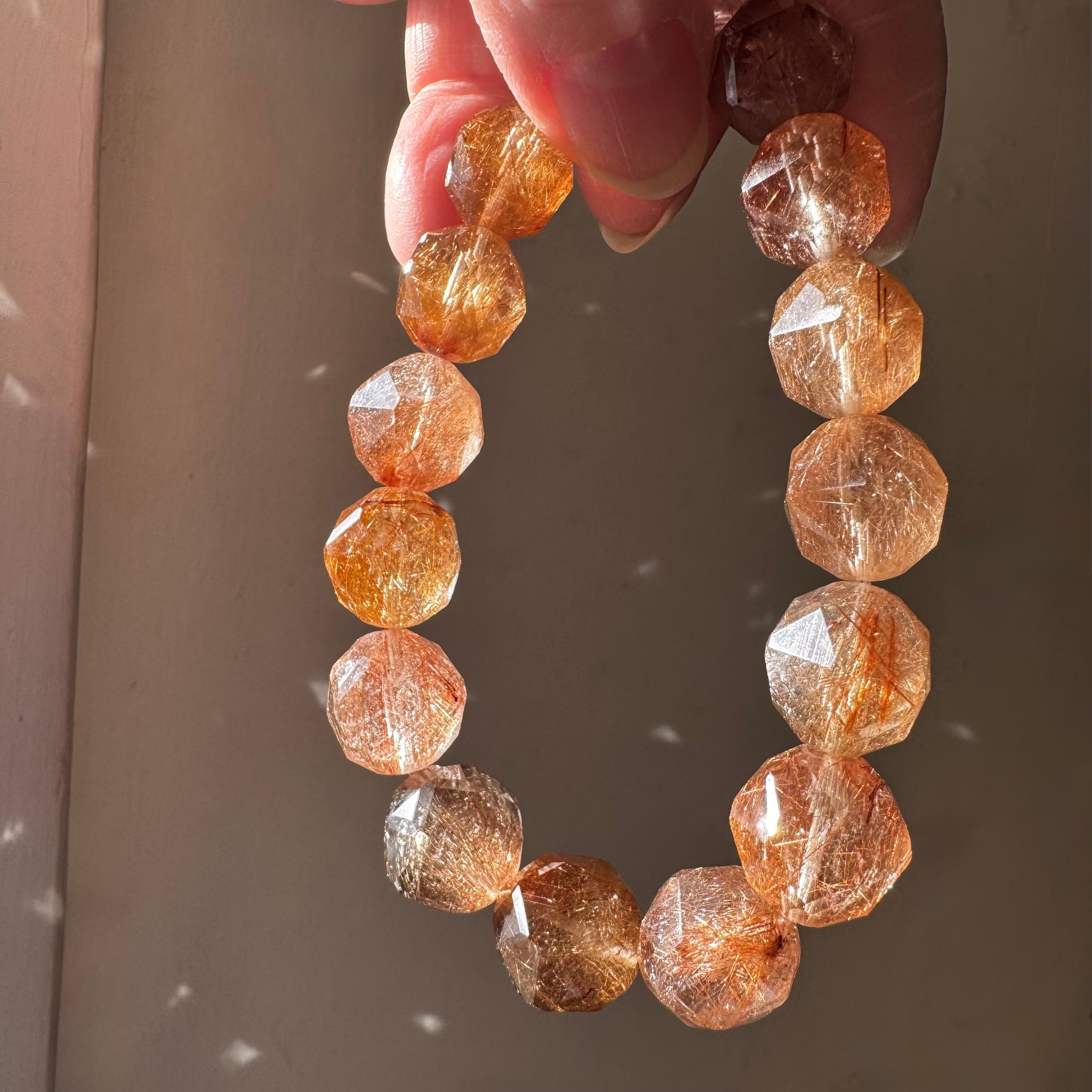 珍しいカット入りルチルクオーツ・13mm(内周17.5cm)