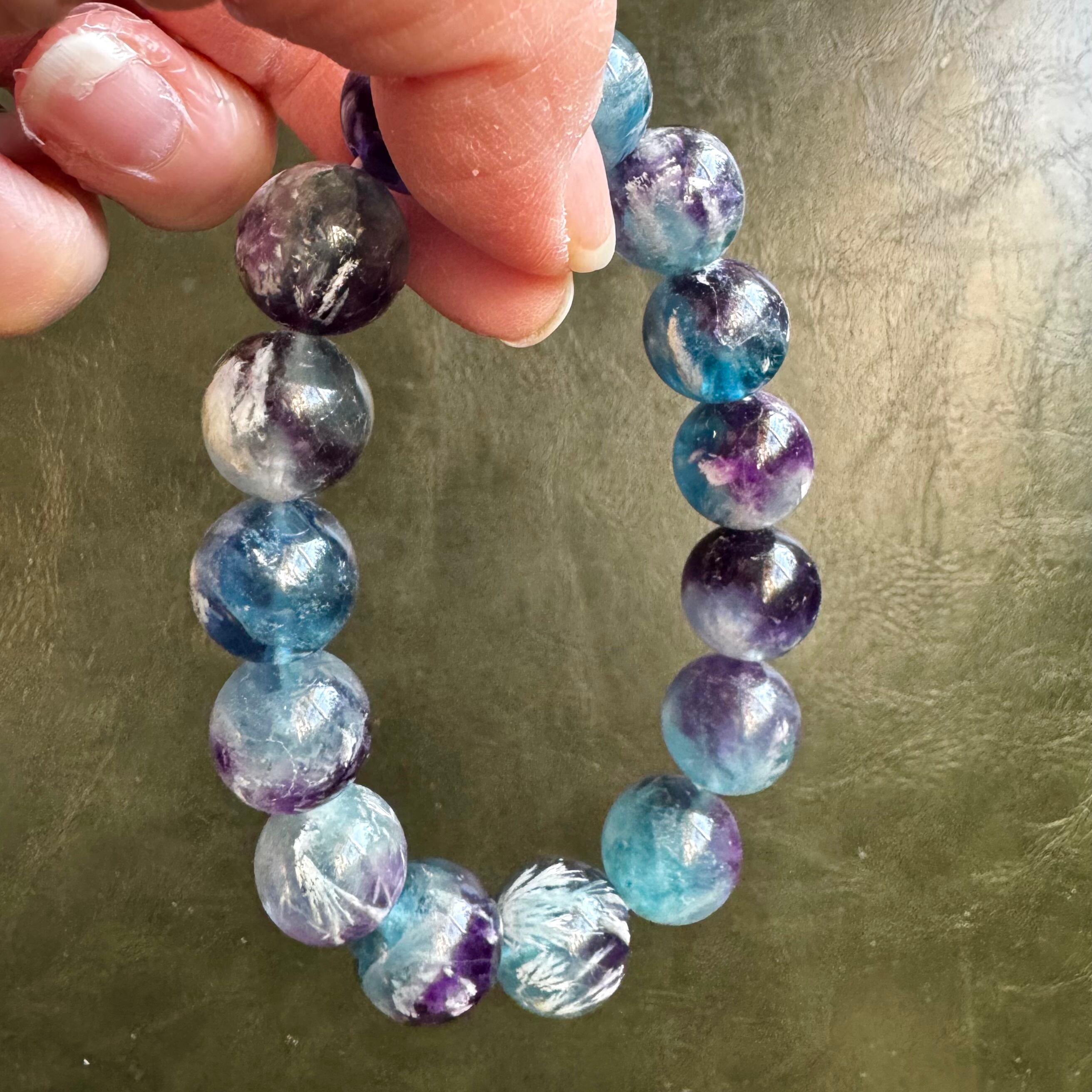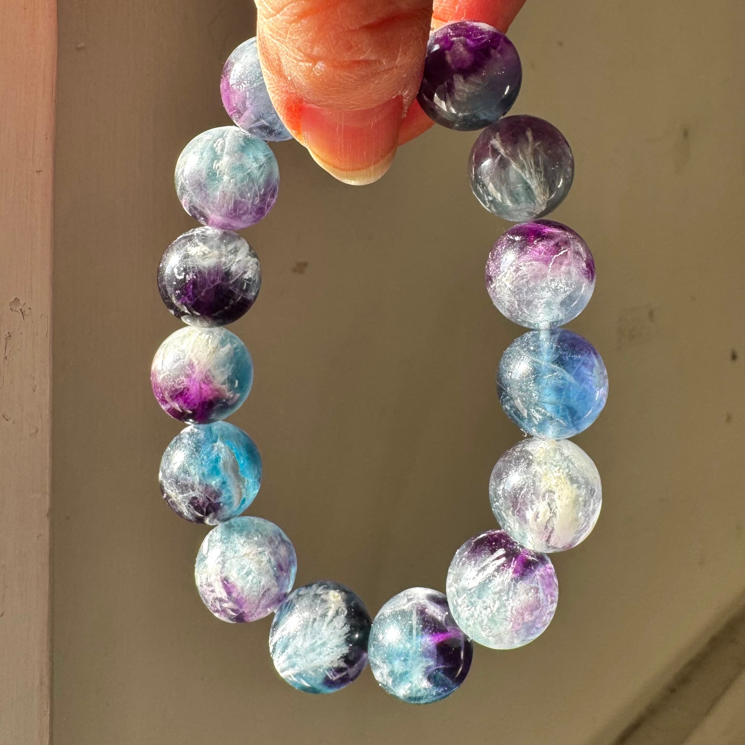 こちらは、ブルーとパープルがメインの全体的にお色が濃いめのブレスレットです