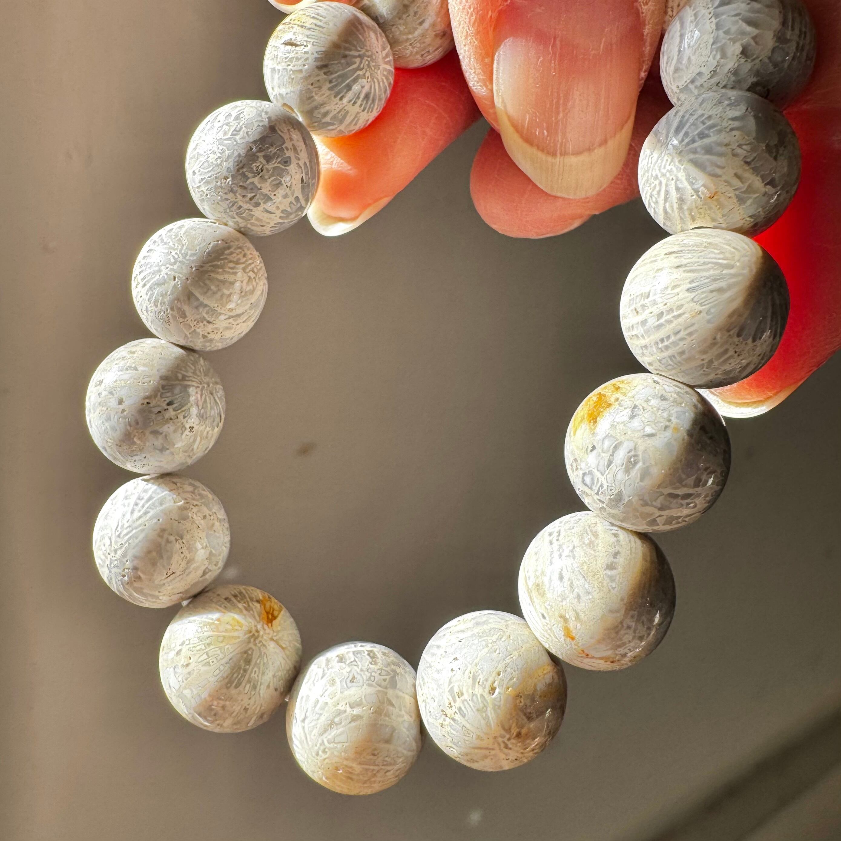 フォッシルコーラルブレスレット(ライトグレー)・11.5mm