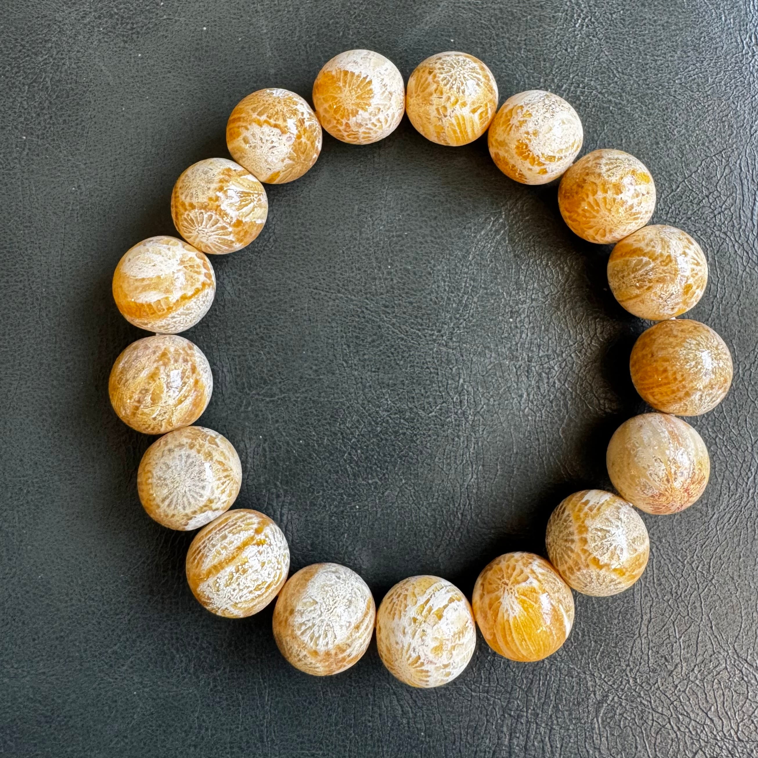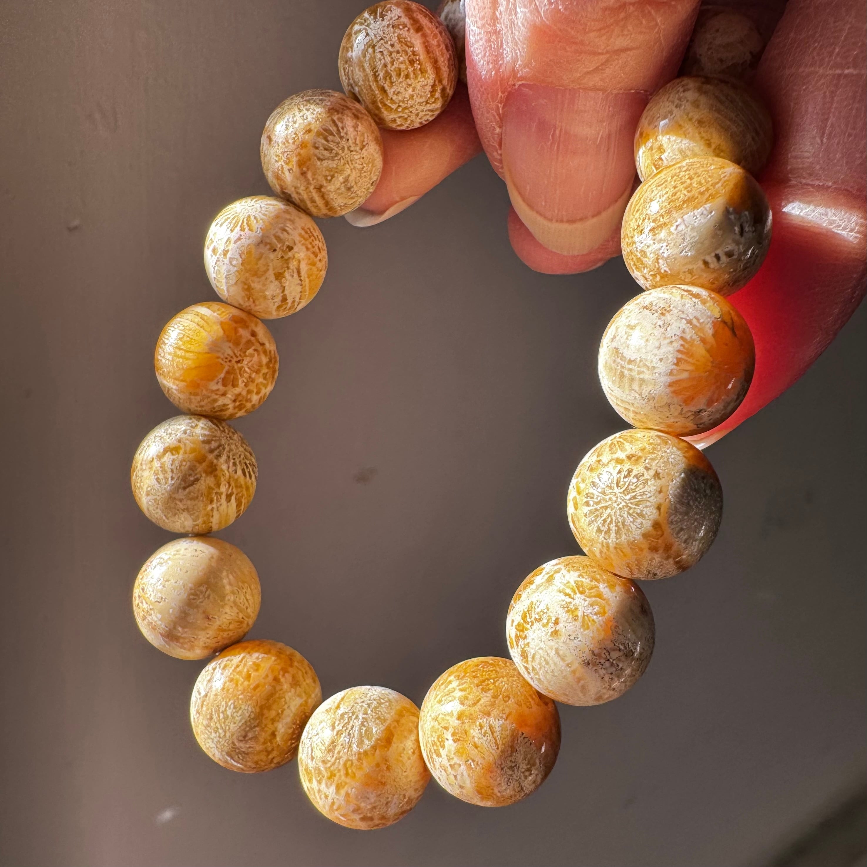 フォッシルコーラルブレスレット(ソフトイエロー)・11.5mm