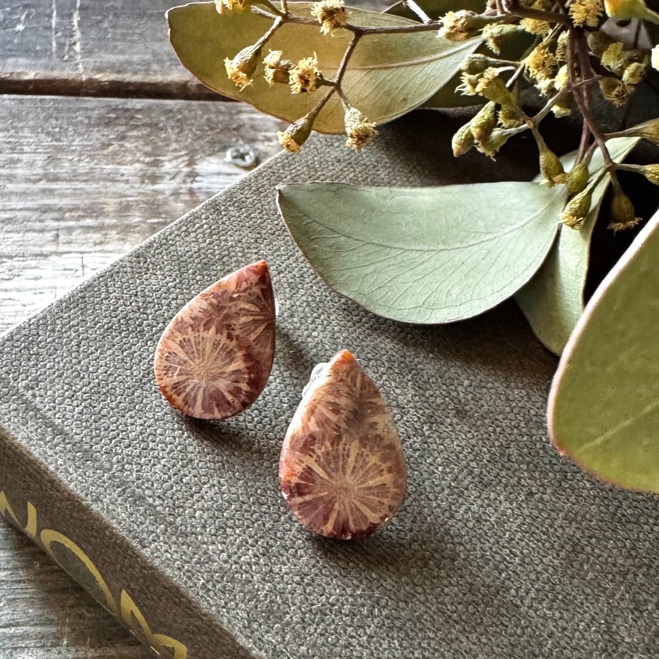 フォッシルコーラル*1粒ピアス・ダークレッド(イヤリング不可)
