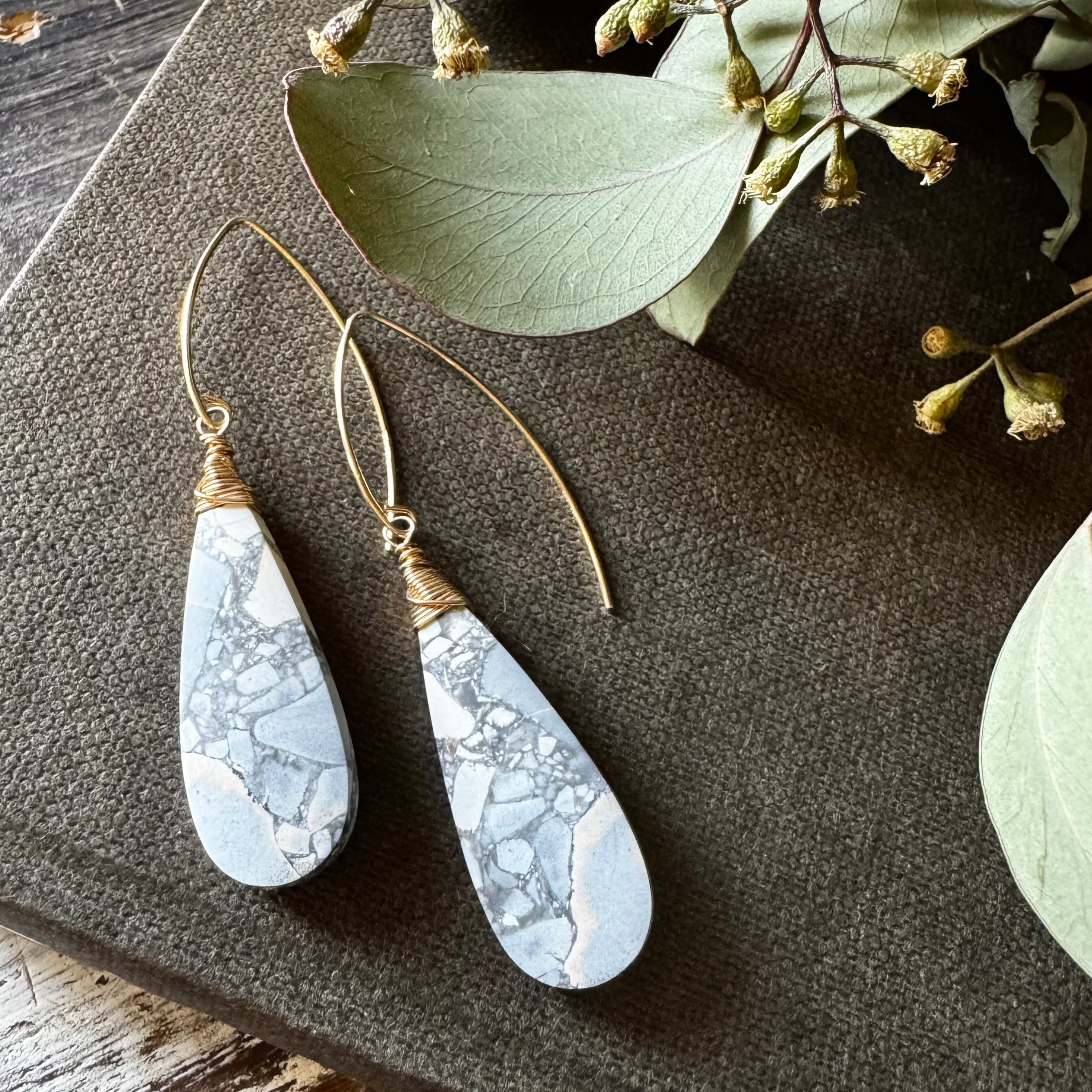 マリガノジャスパー*グレー系ロングフックピアス