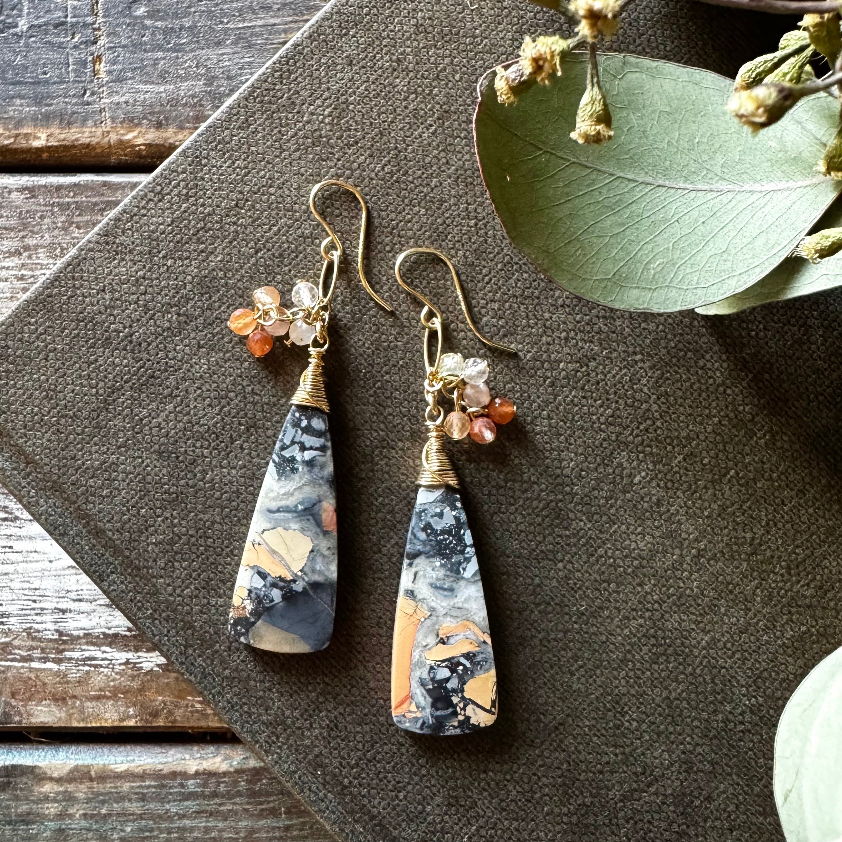 マリガノジャスパー*オレンジ&ブラック系ピアス