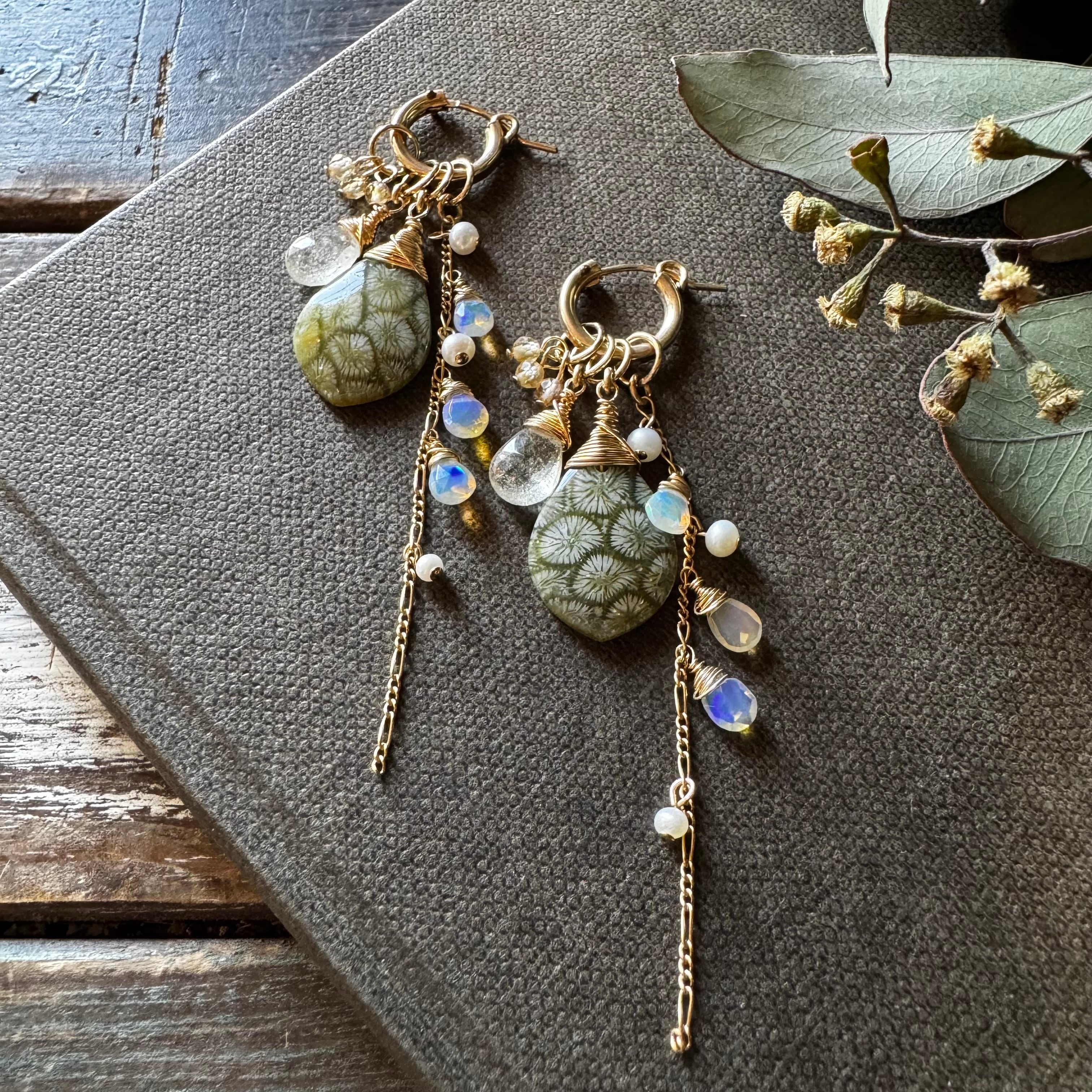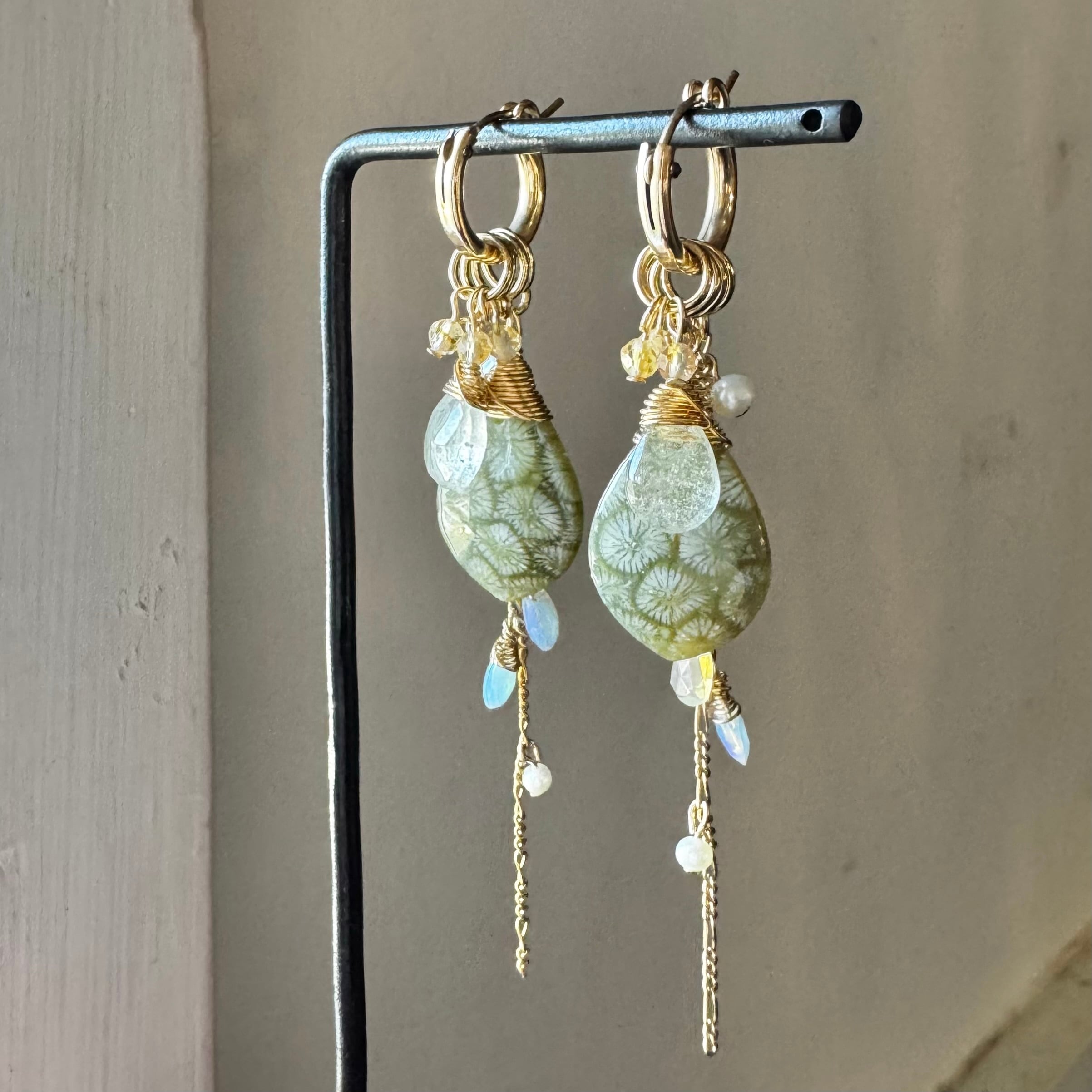 希少グリーンフォッシルコーラル*着せ替えピアス
