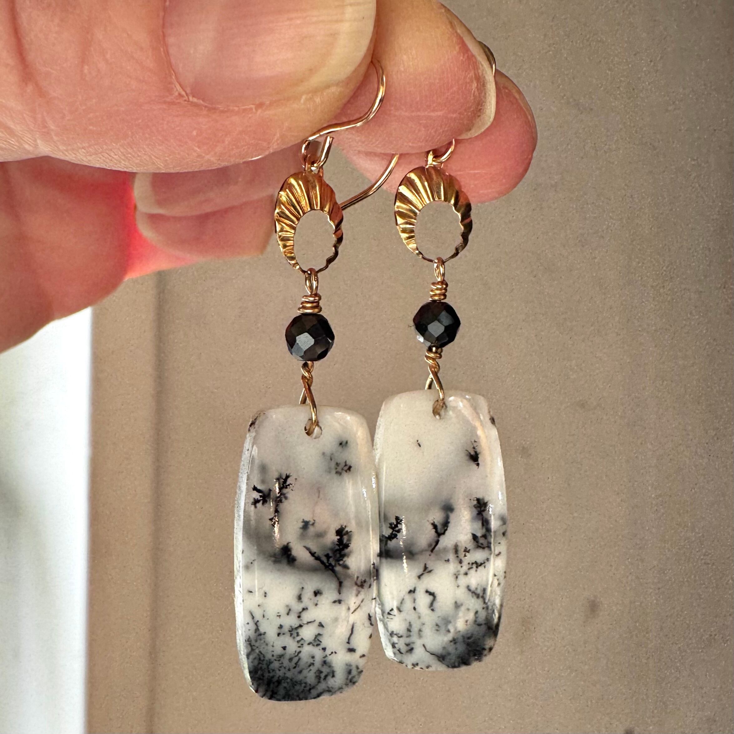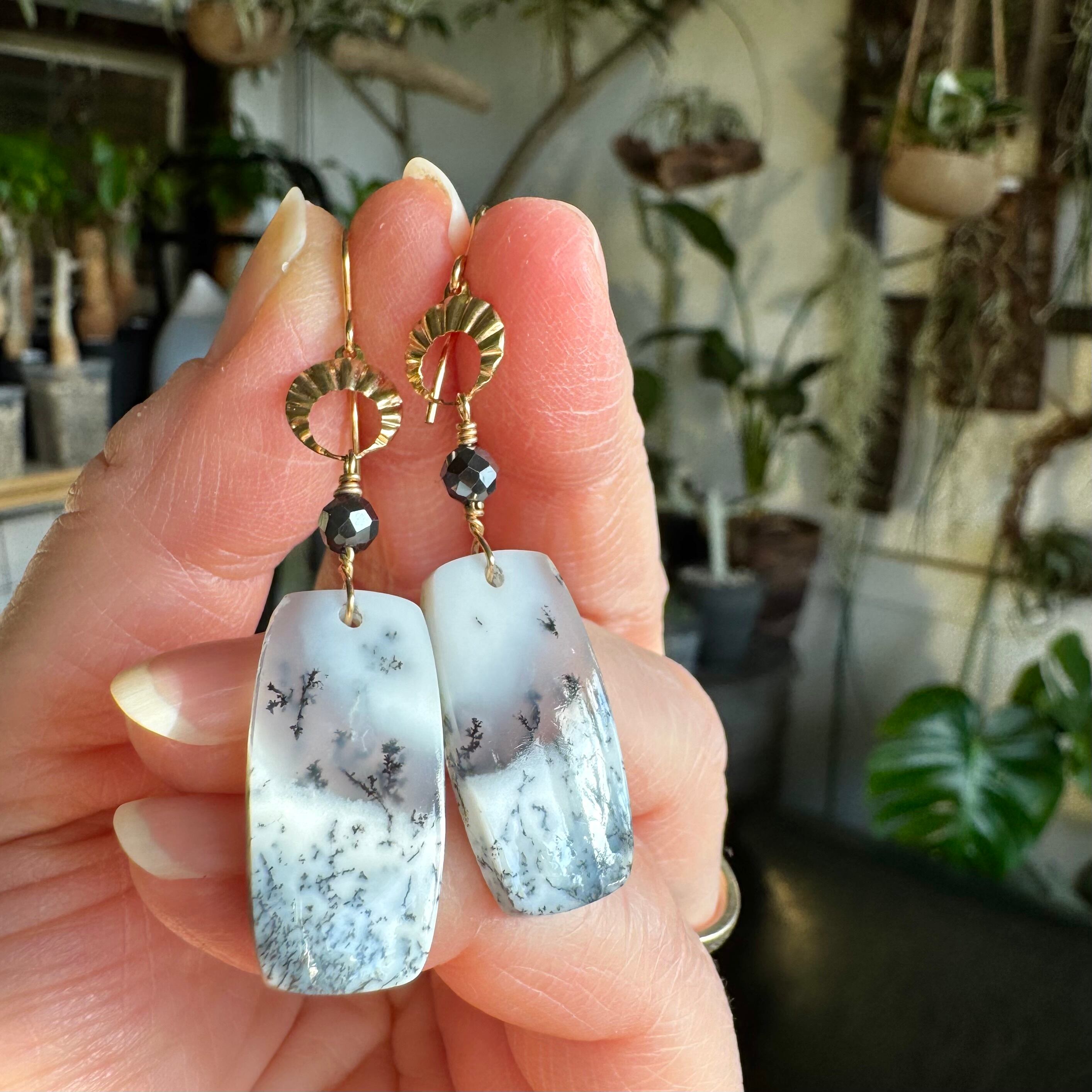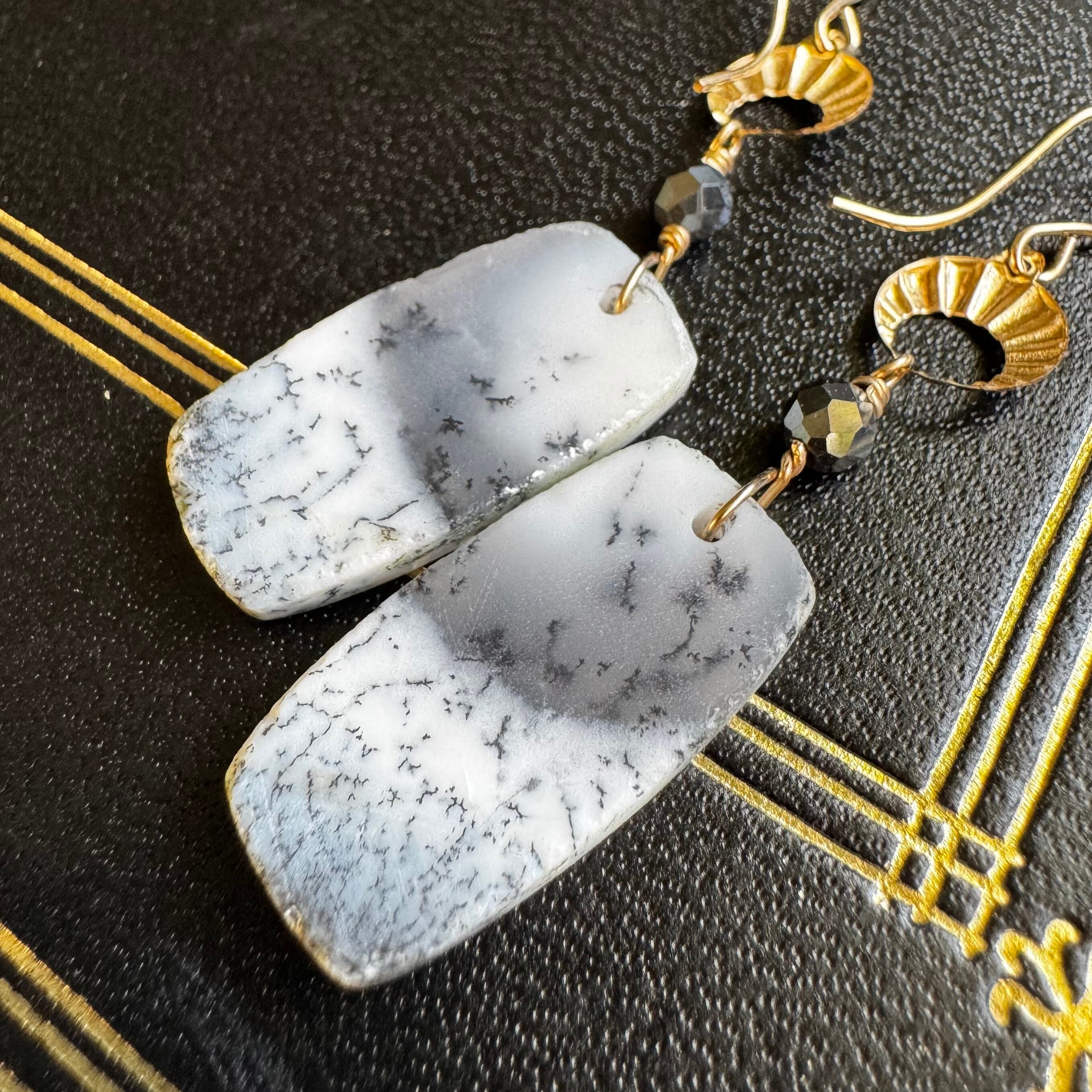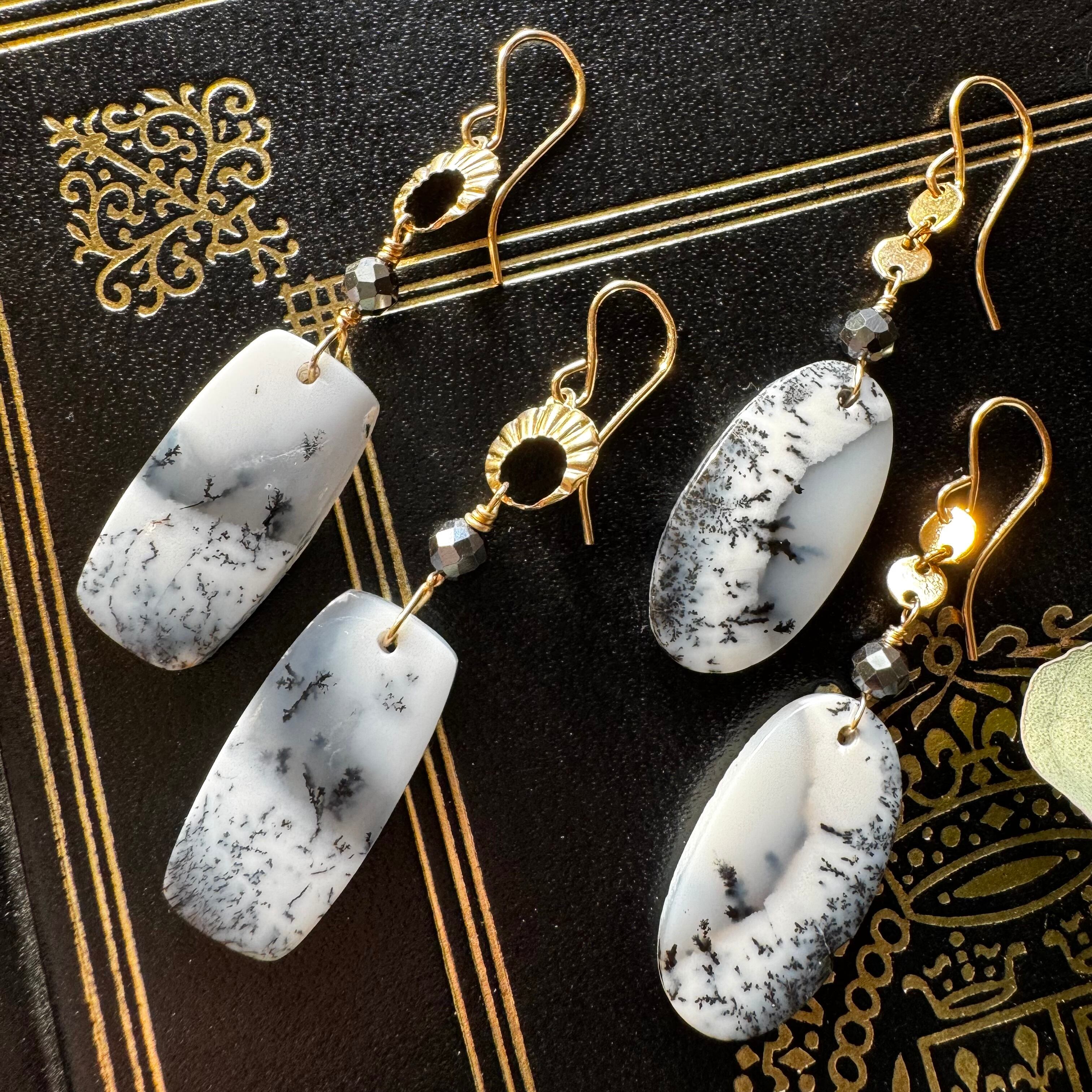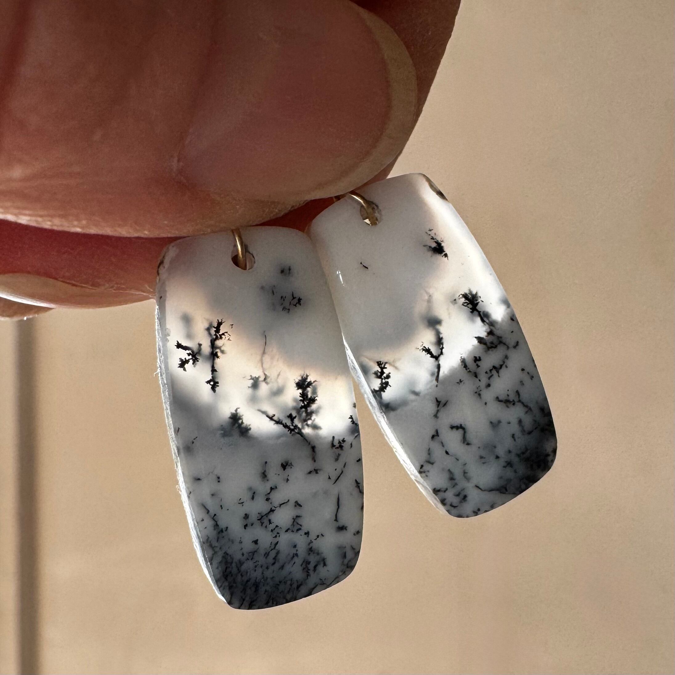 デンドライトオパールピアス(丸みレクタングル)
