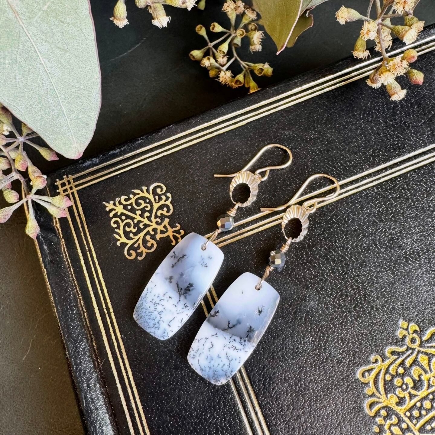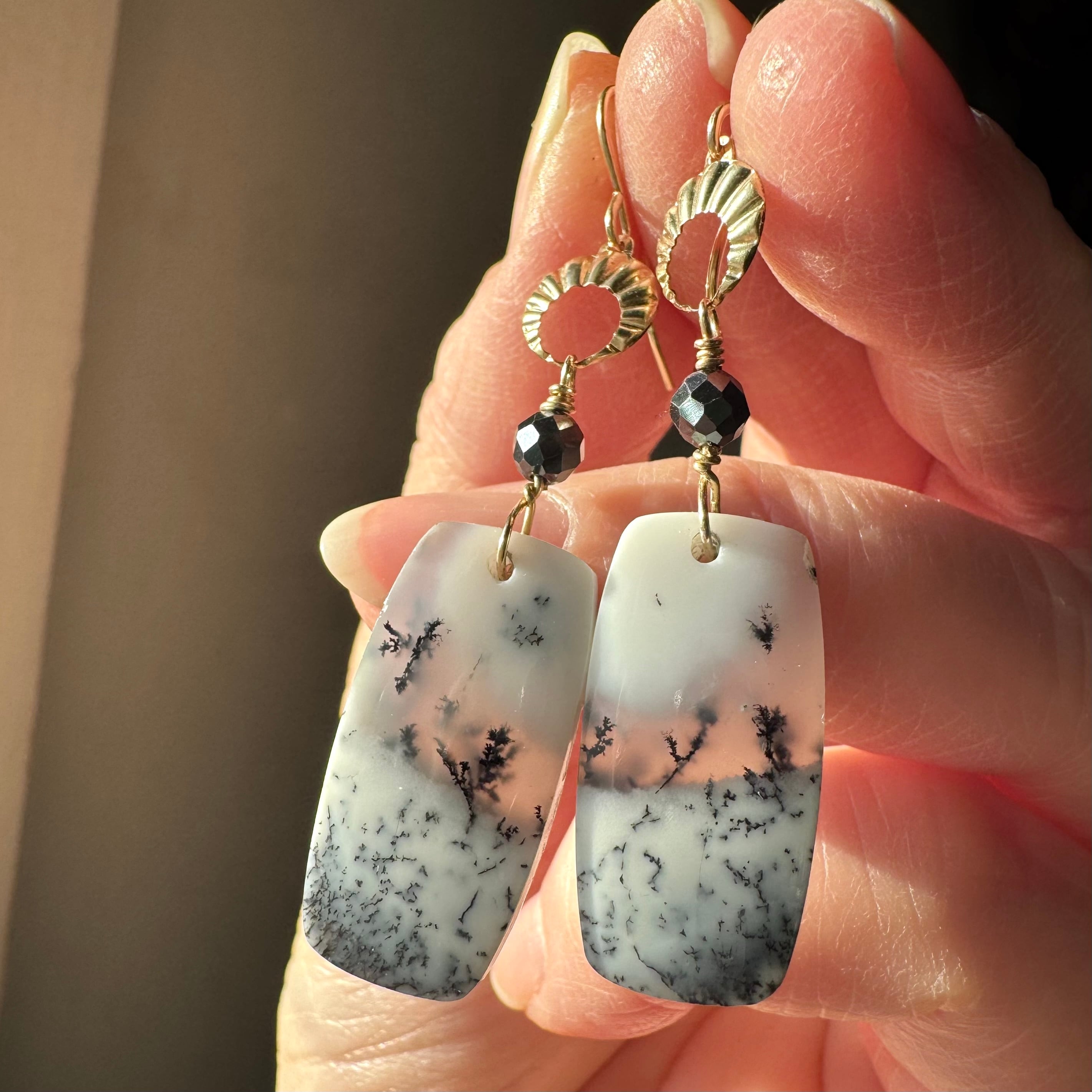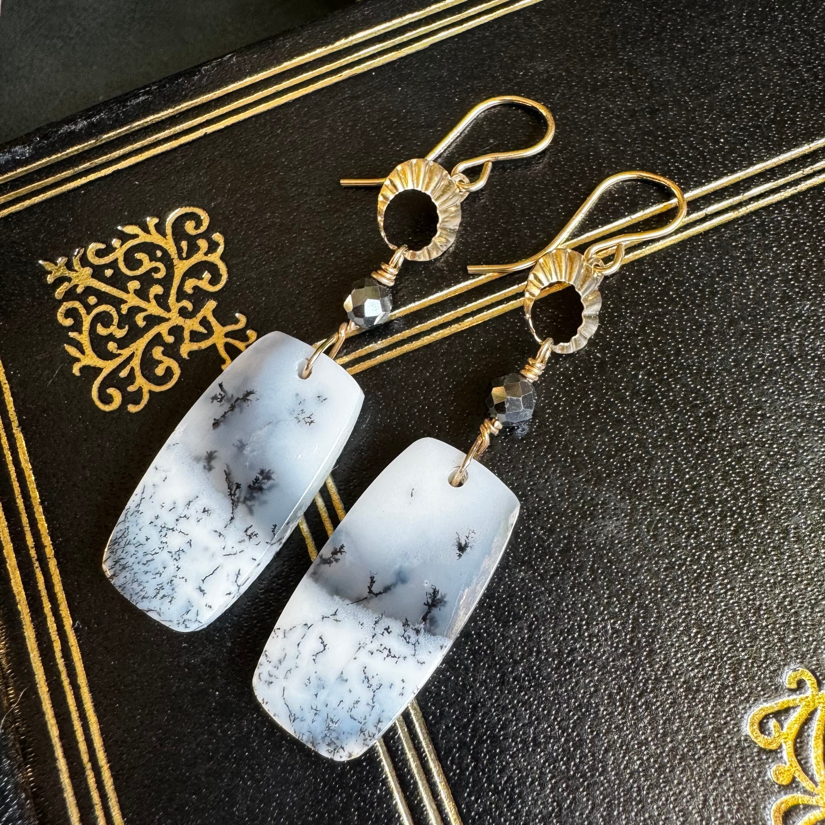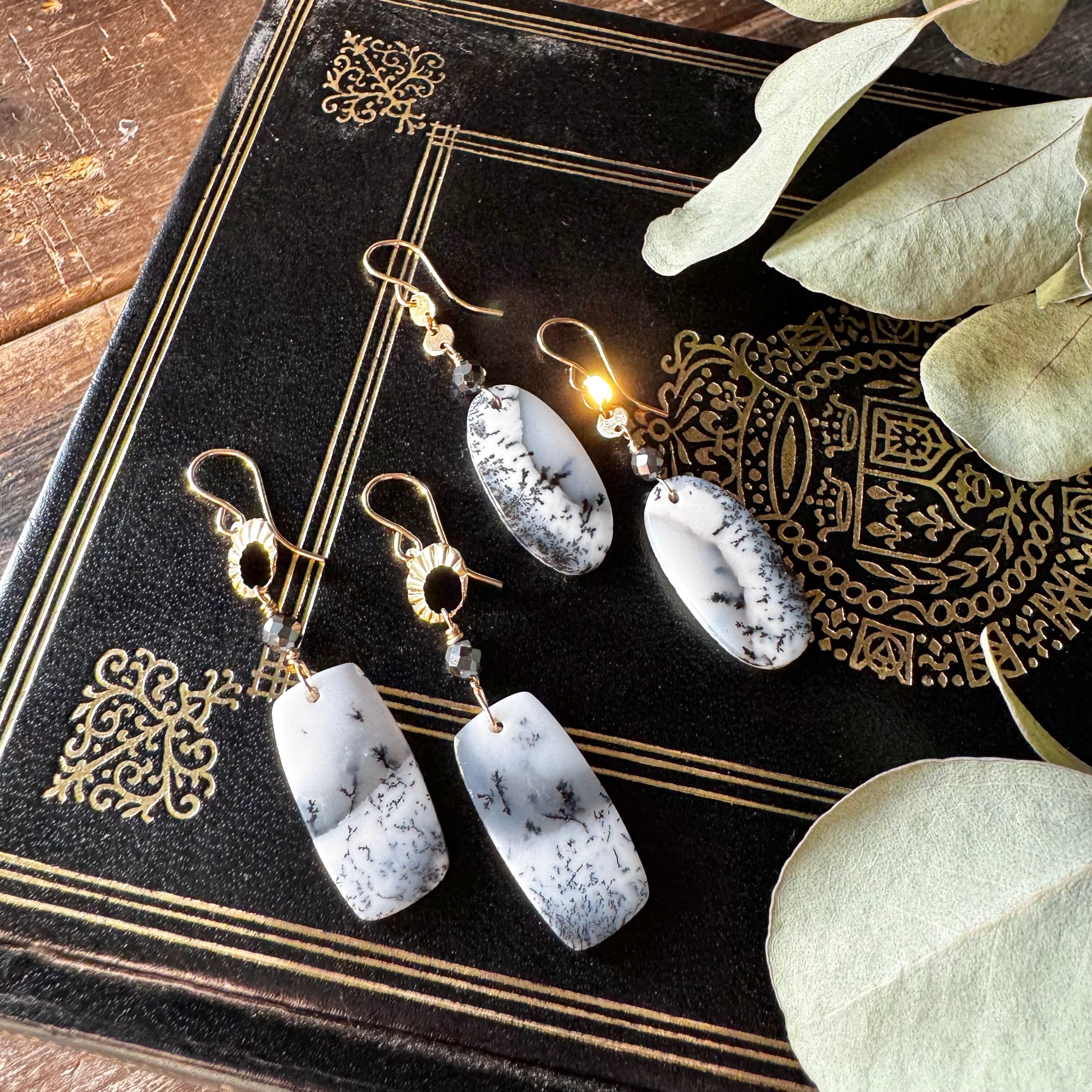 乳白色や半透明のオパールの中に、樹木やシダ植物のような枝状模様の鉱物が内包された天然石です