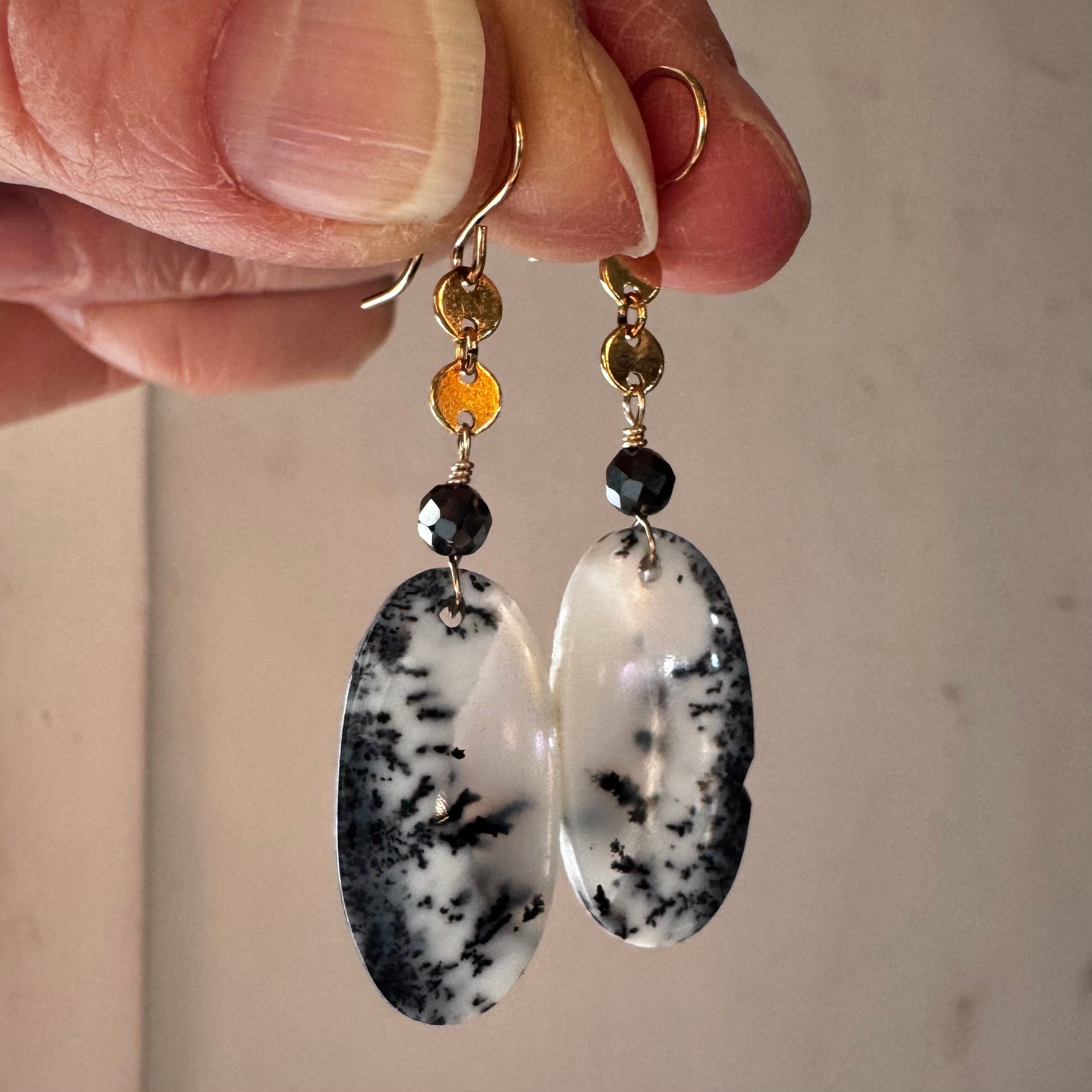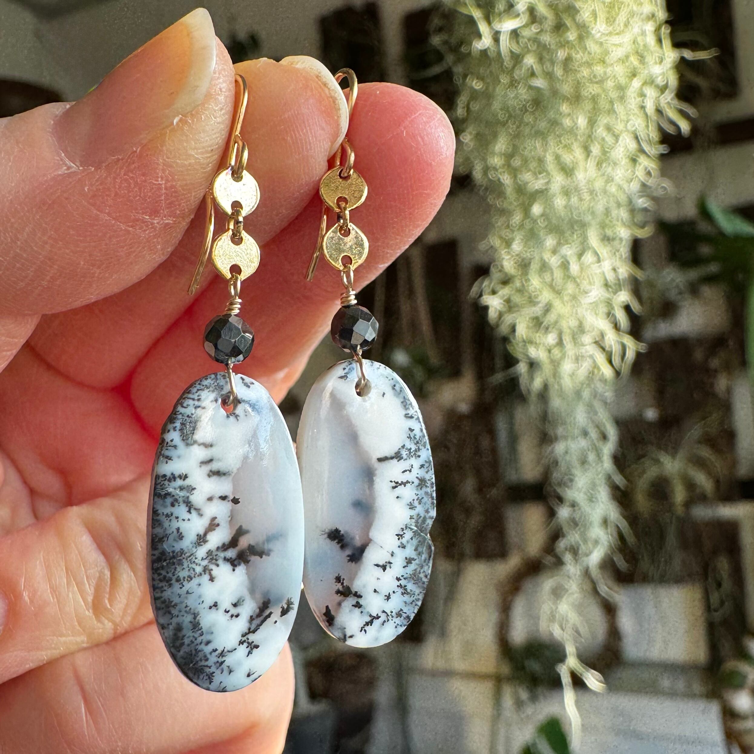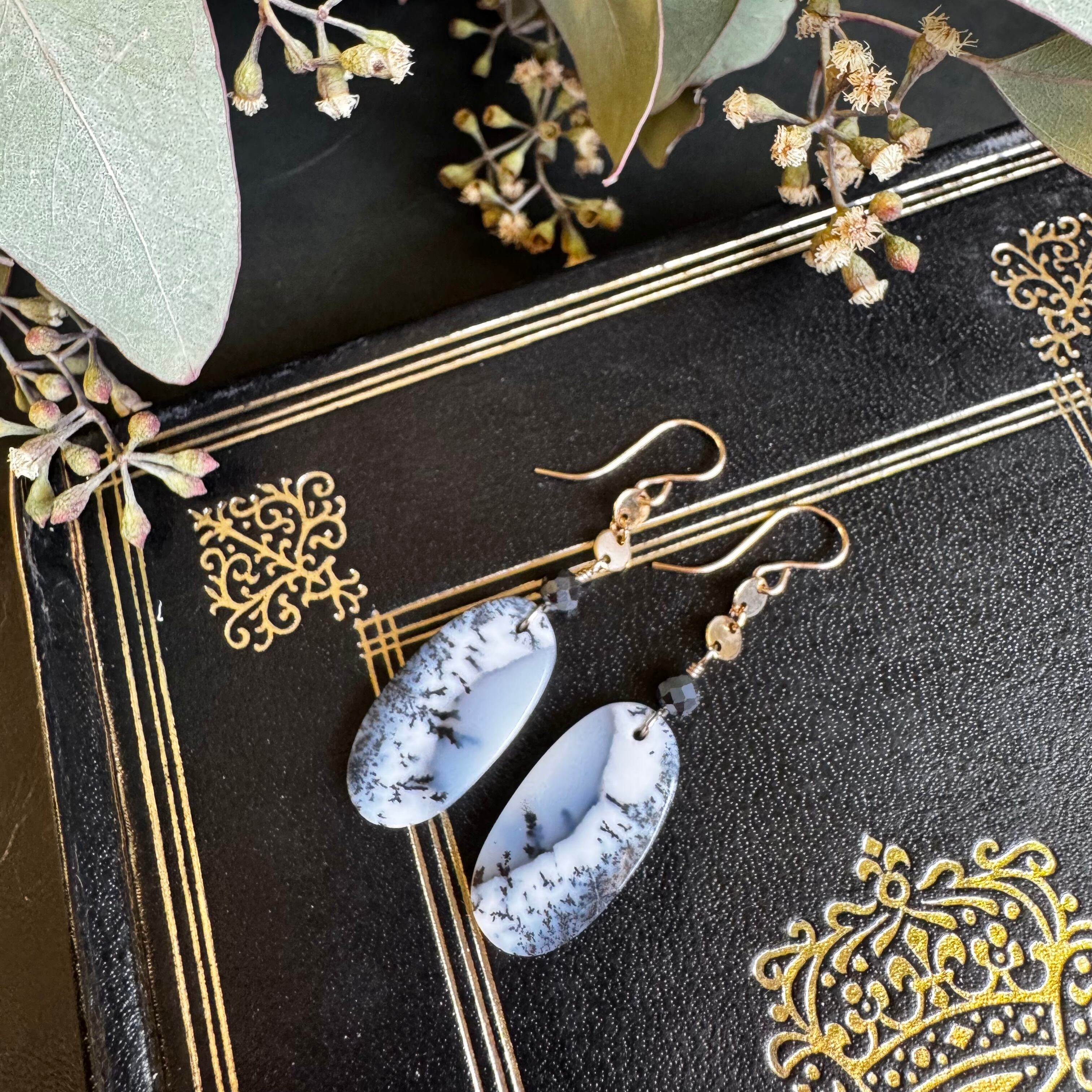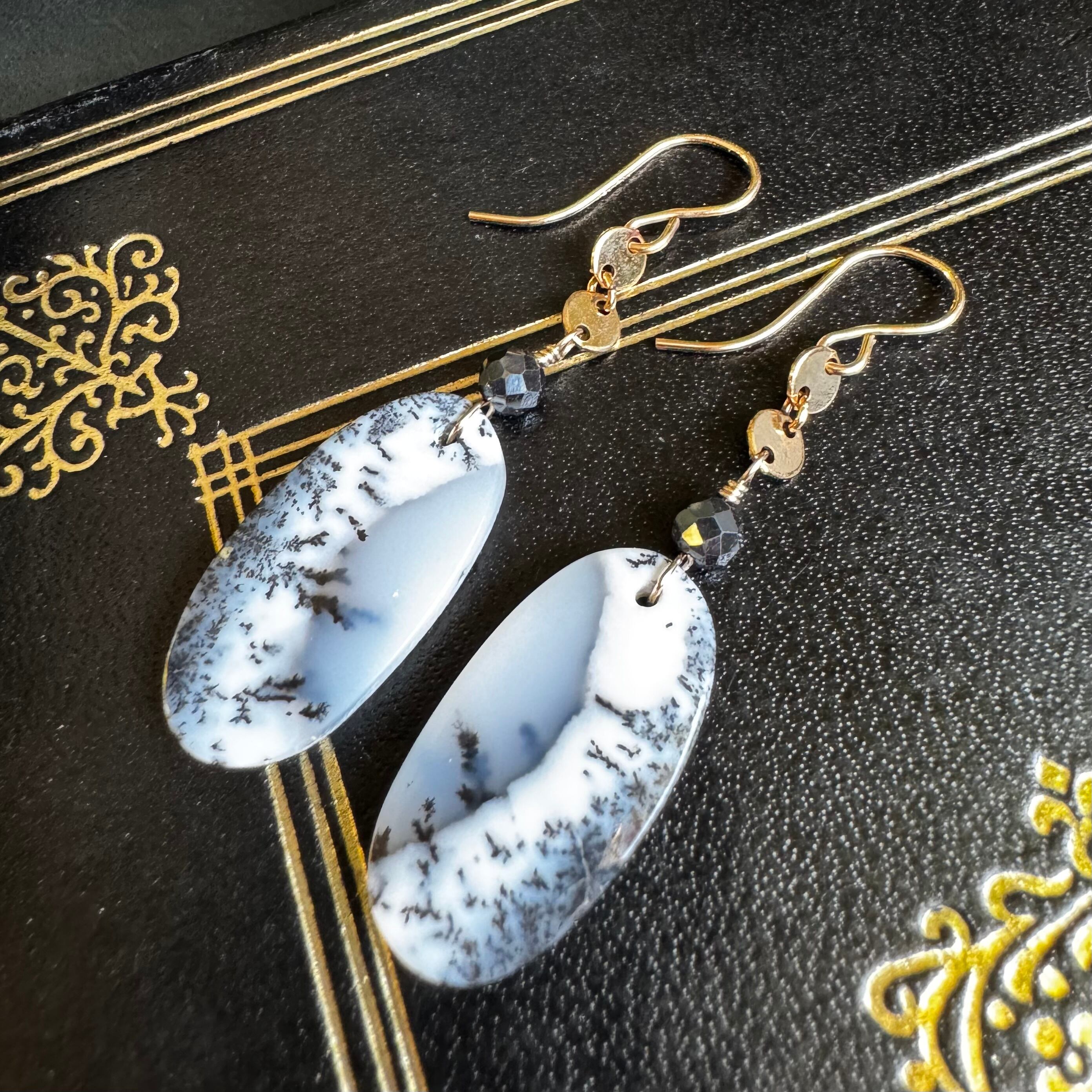 乳白色や半透明のオパールの中に、樹木やシダ植物のような枝状模様の鉱物が内包された天然石です