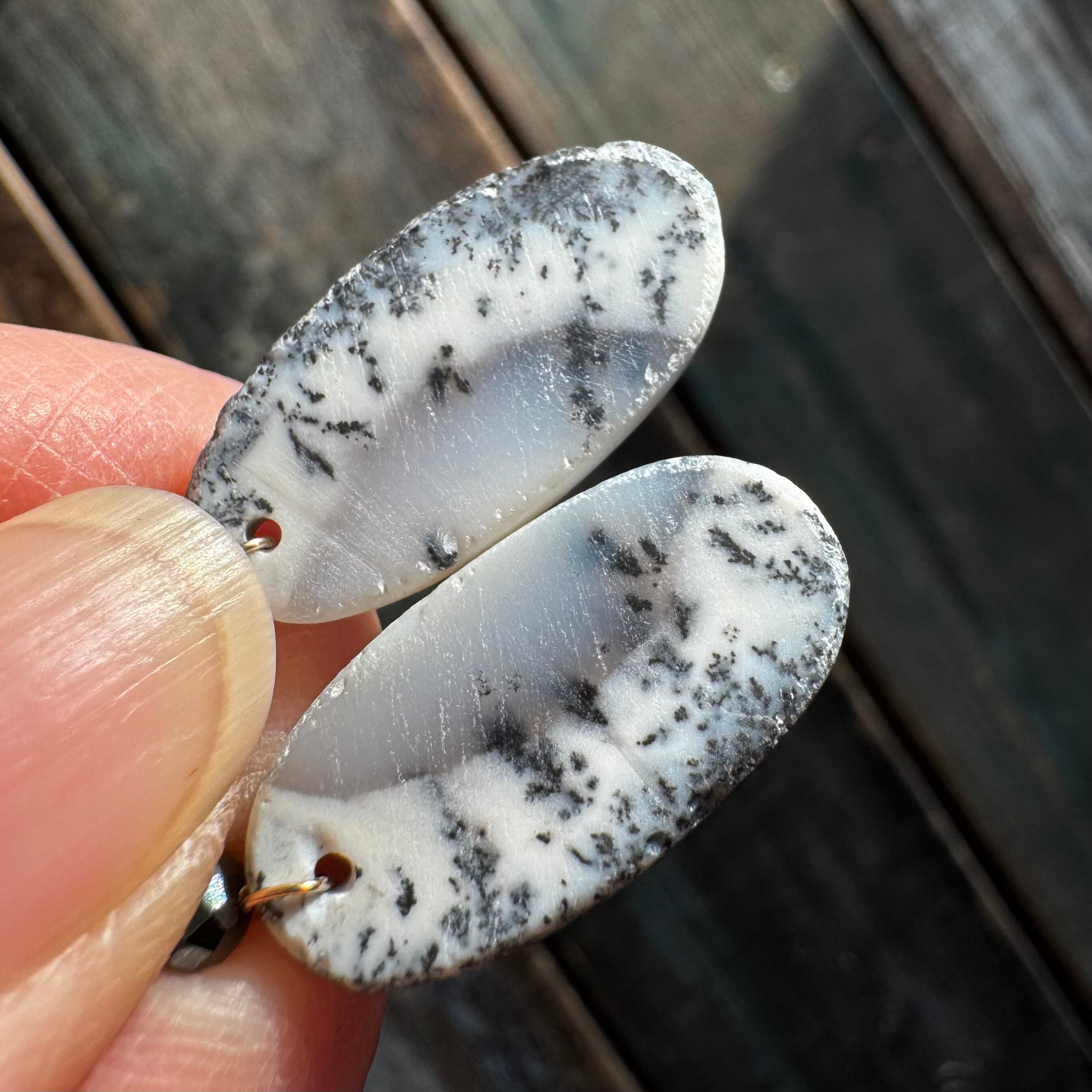 模様に個体差があり、一点もの感の強い石で、こちらのペアは、魚眼レンズを通した冬の景色のようです