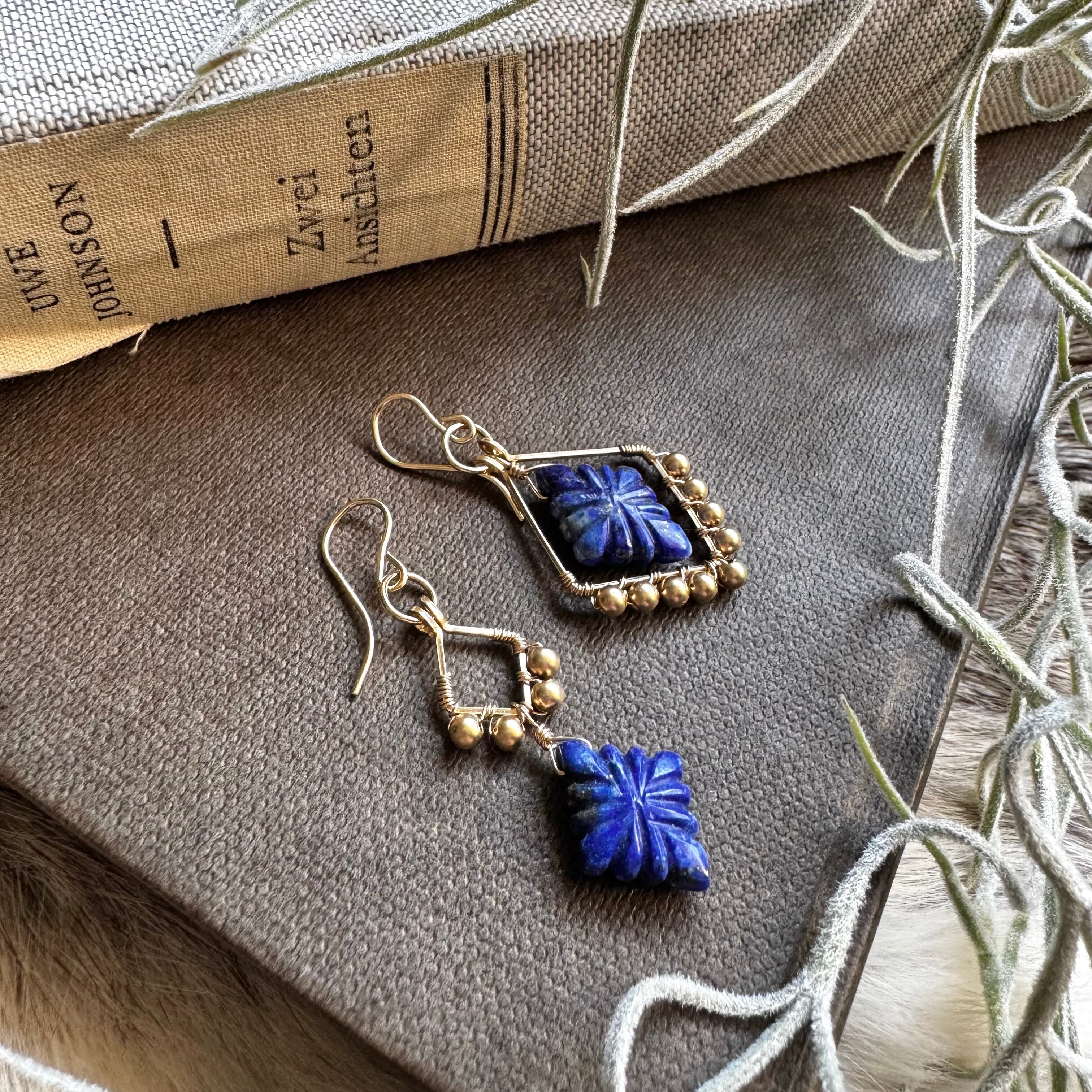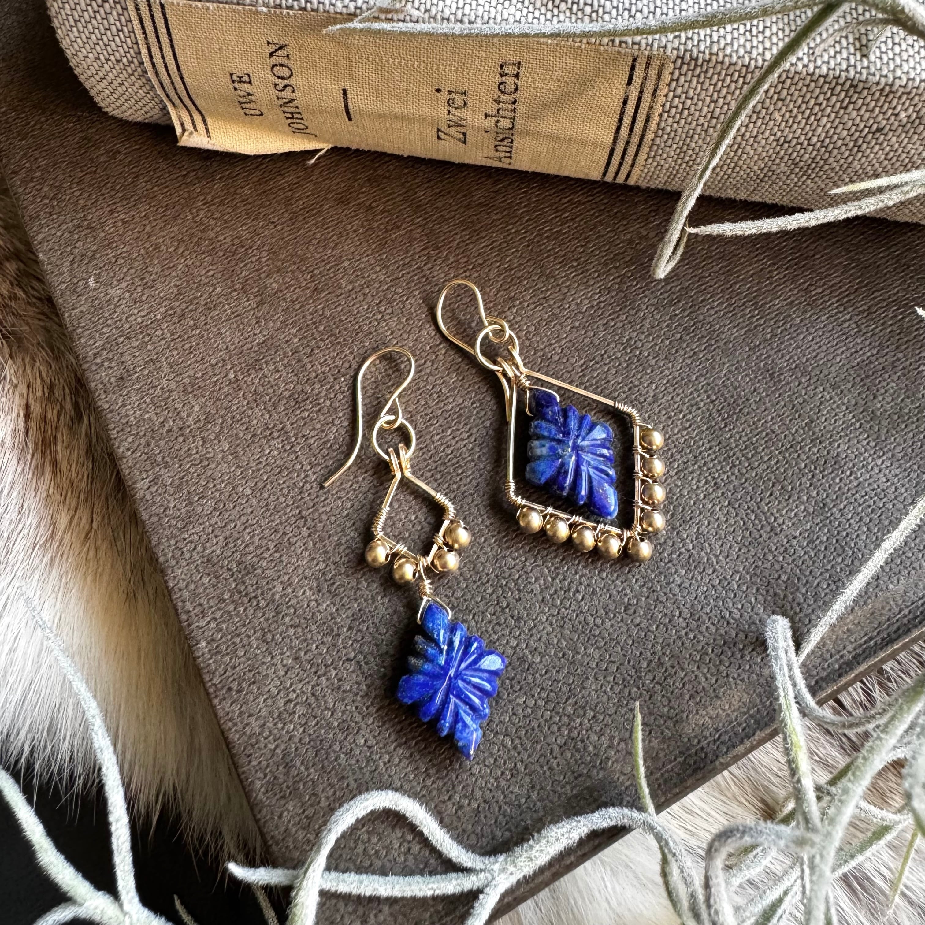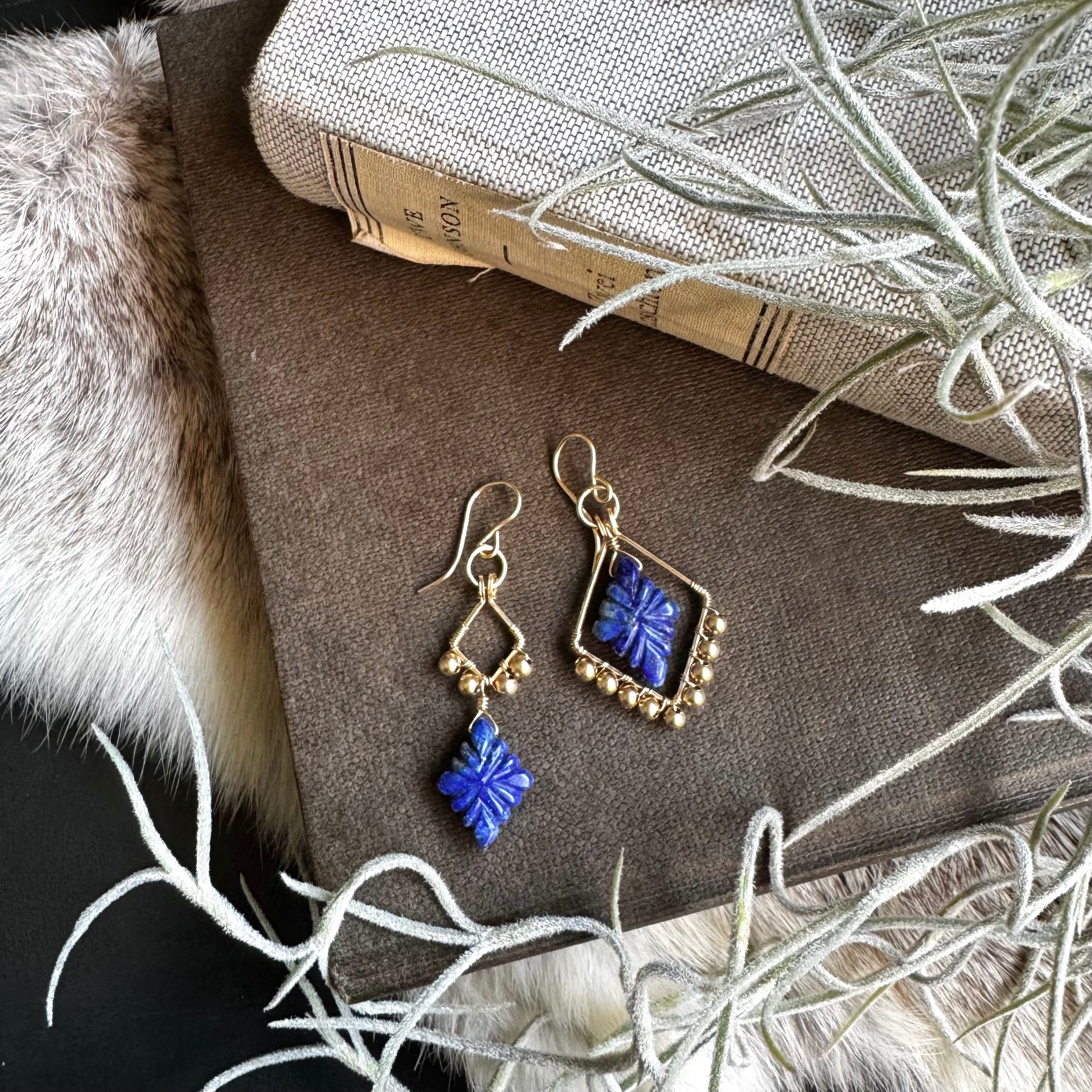 ラピスラズリアシメピアス(イヤリング)・カービングアシメタイプ