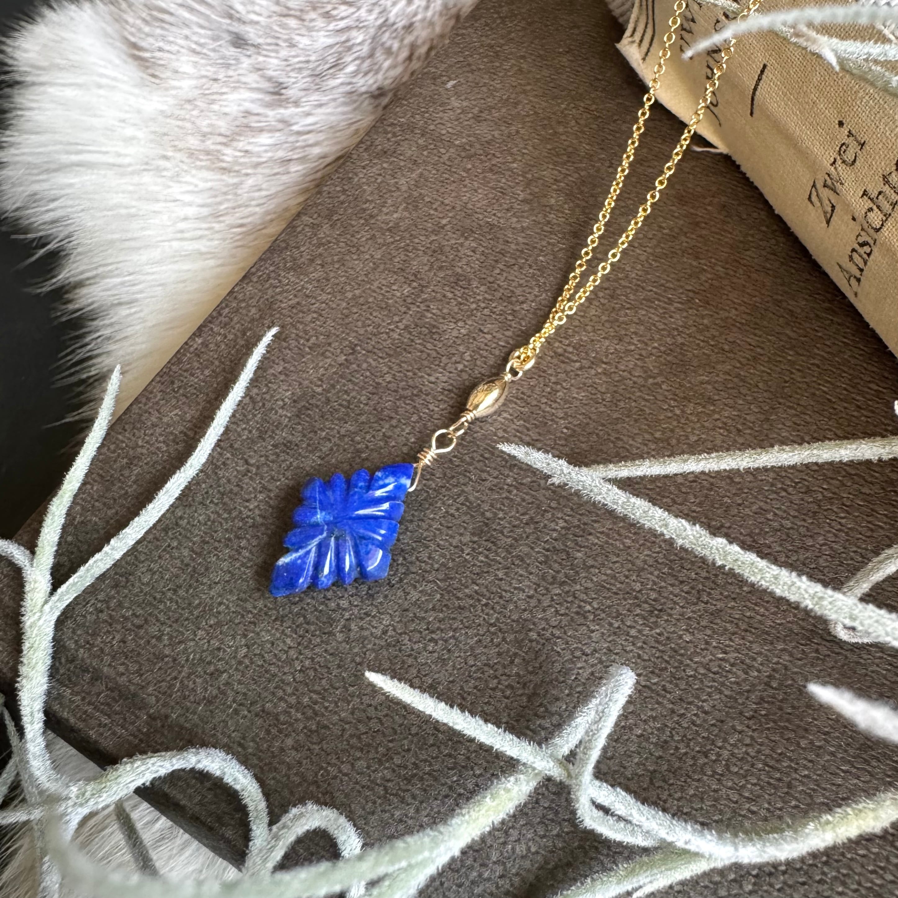 ラピスラズリは、瑠璃色の中にゴールドのパイライトや白いカルサイトが混ざった石です