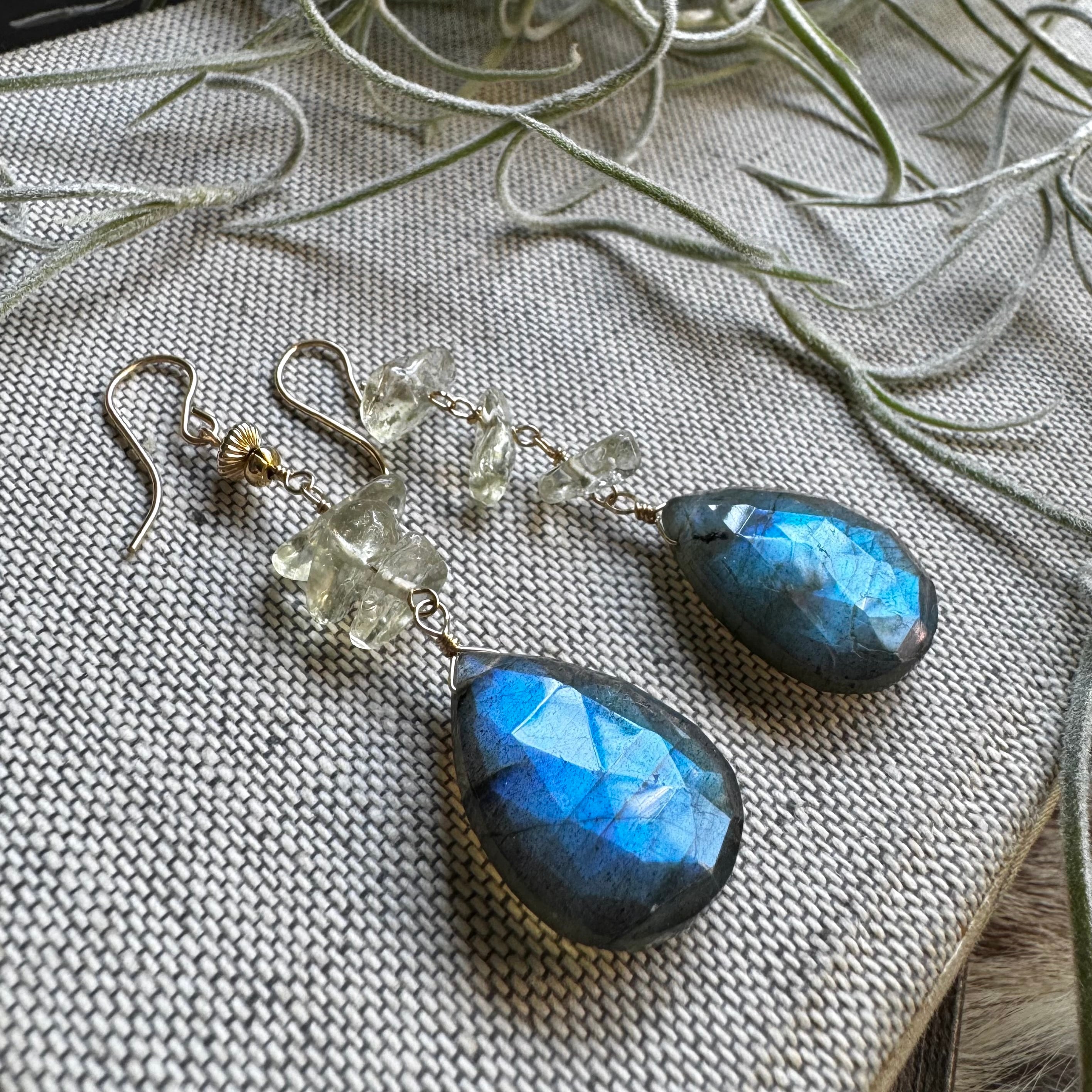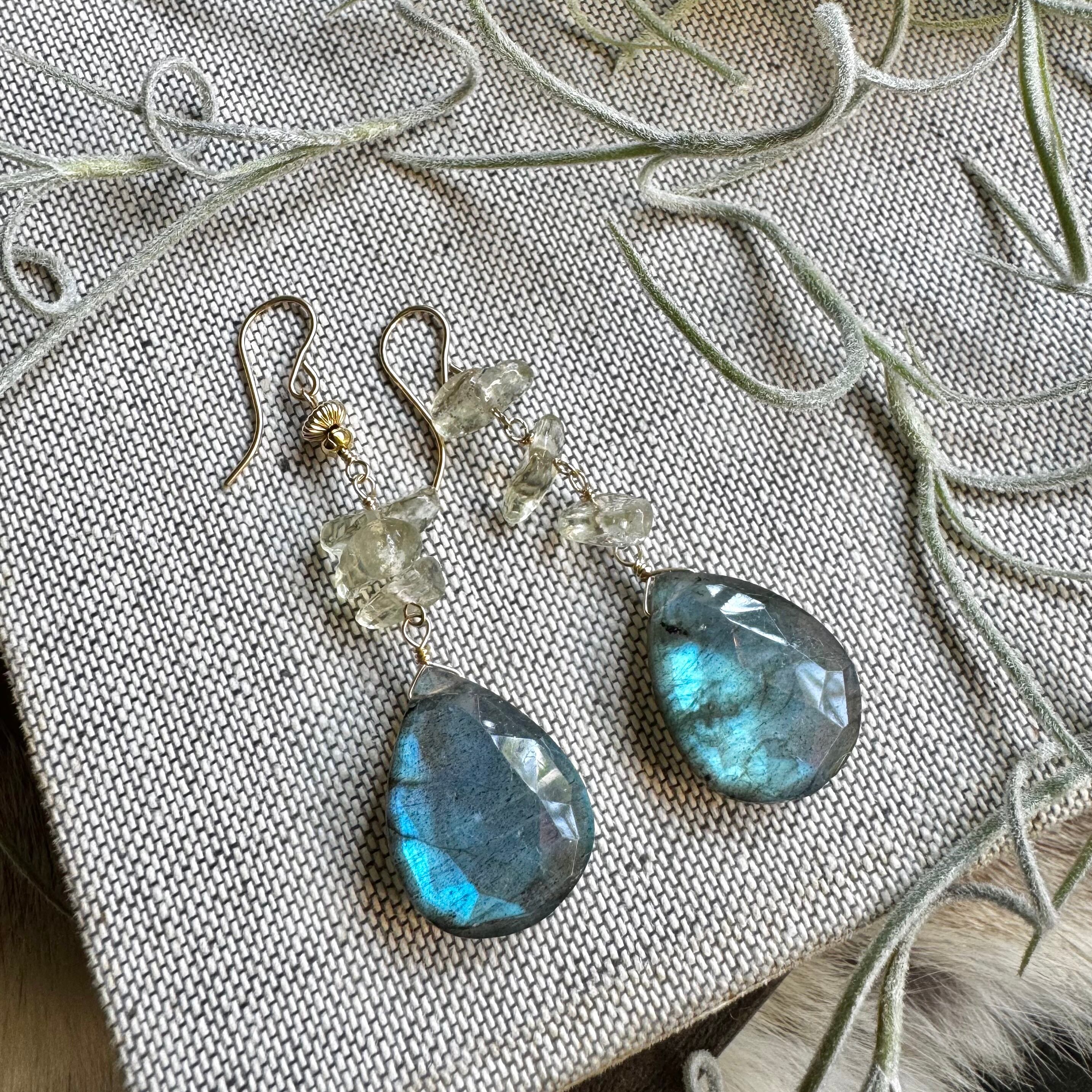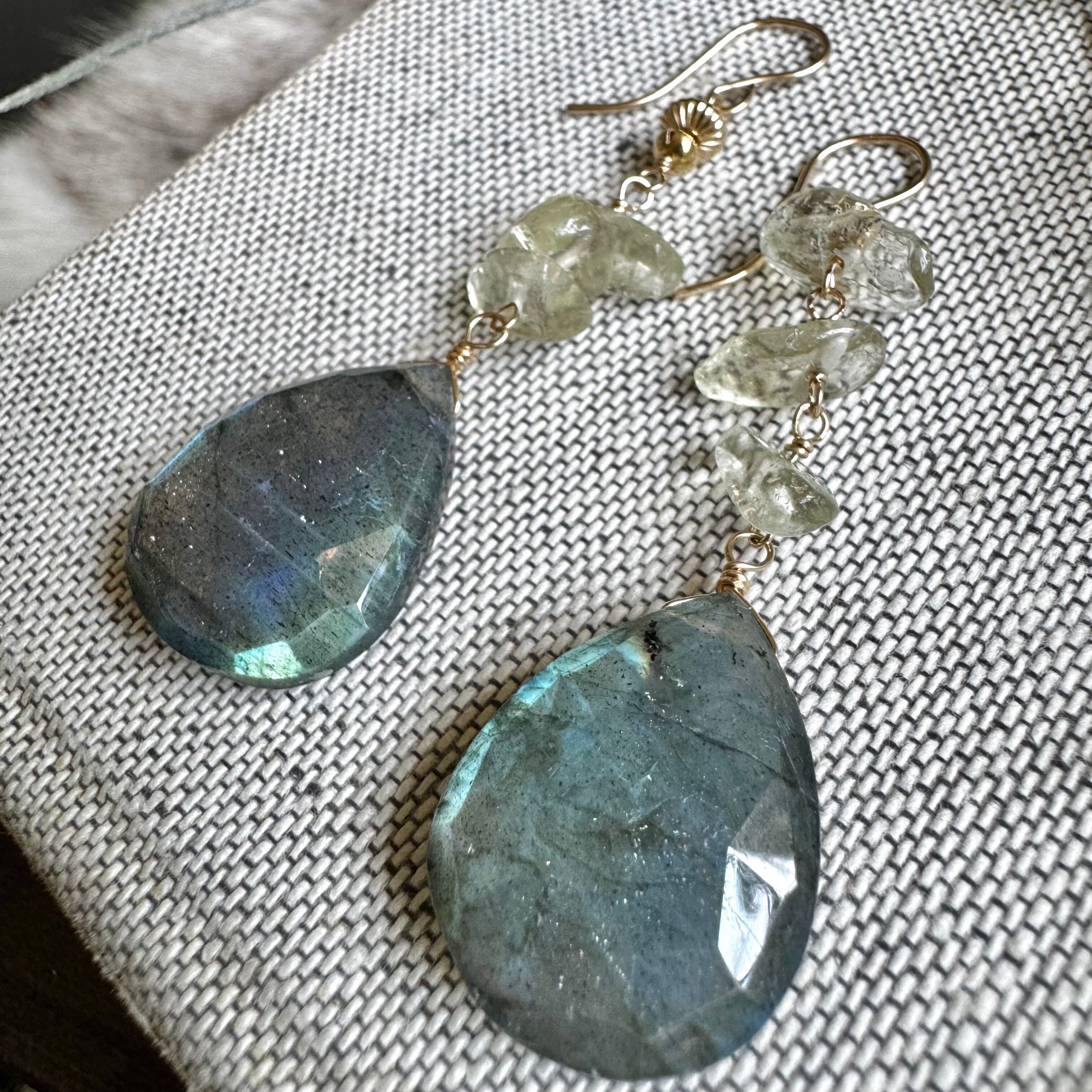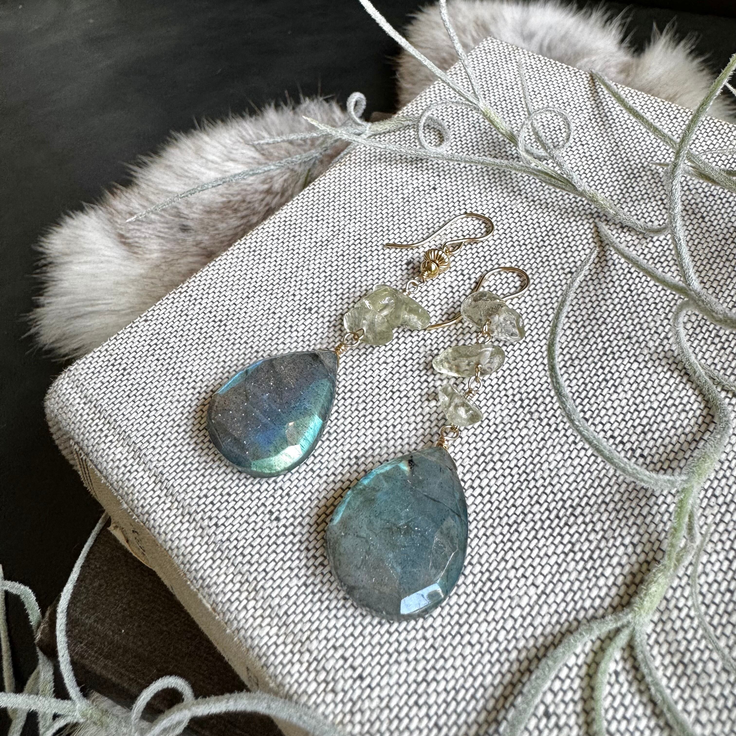 ラブラドライト&リビアングラスアシメピアス(イヤリング)