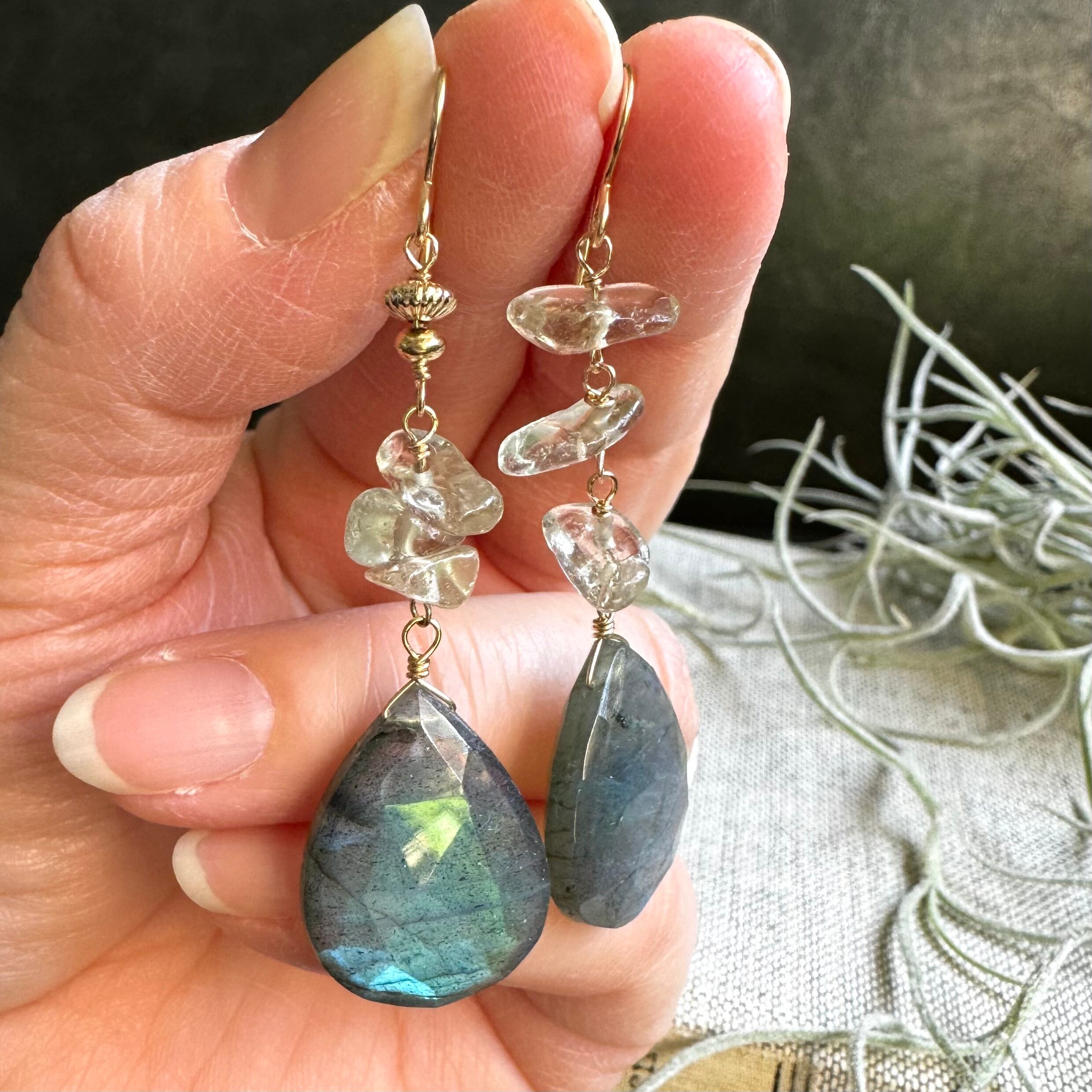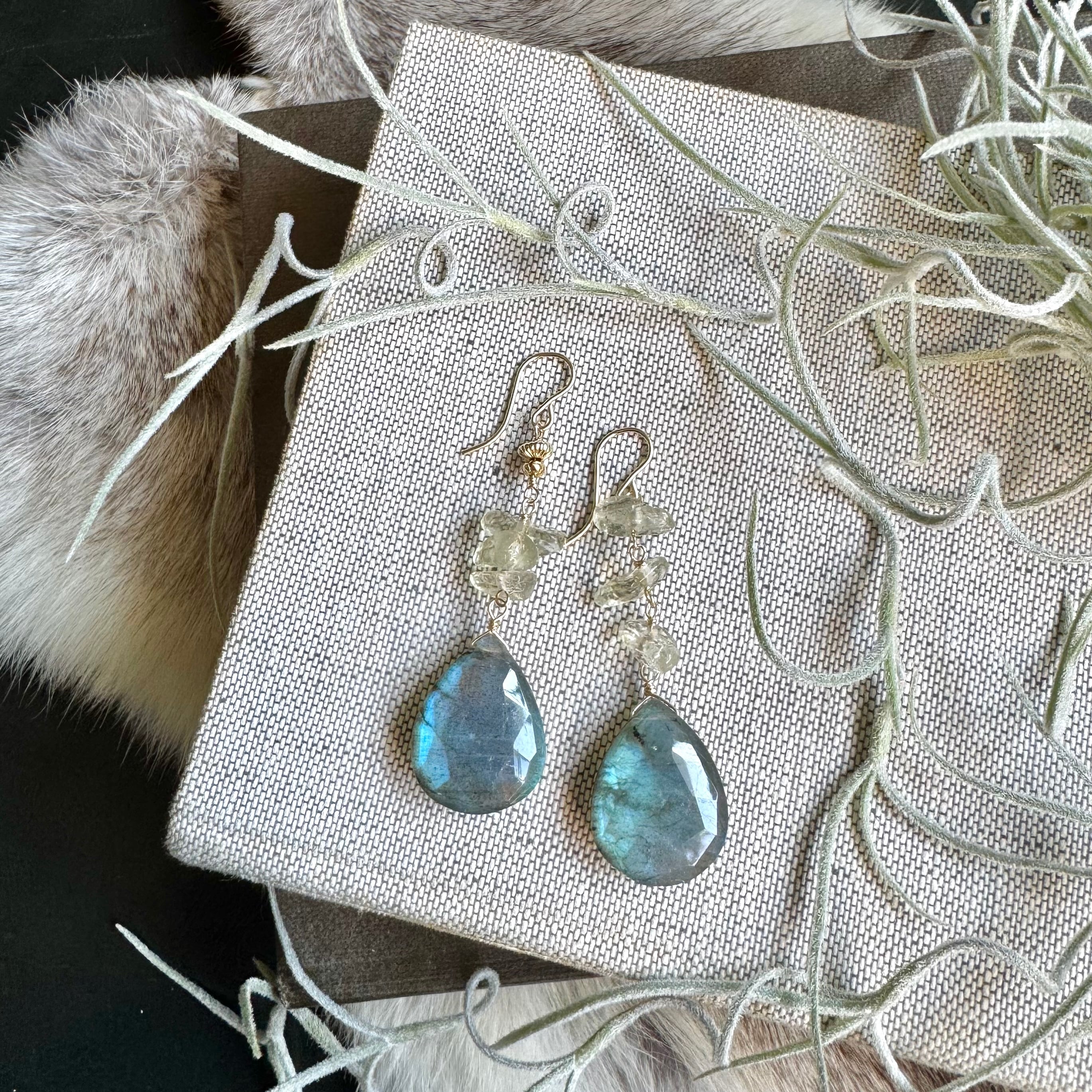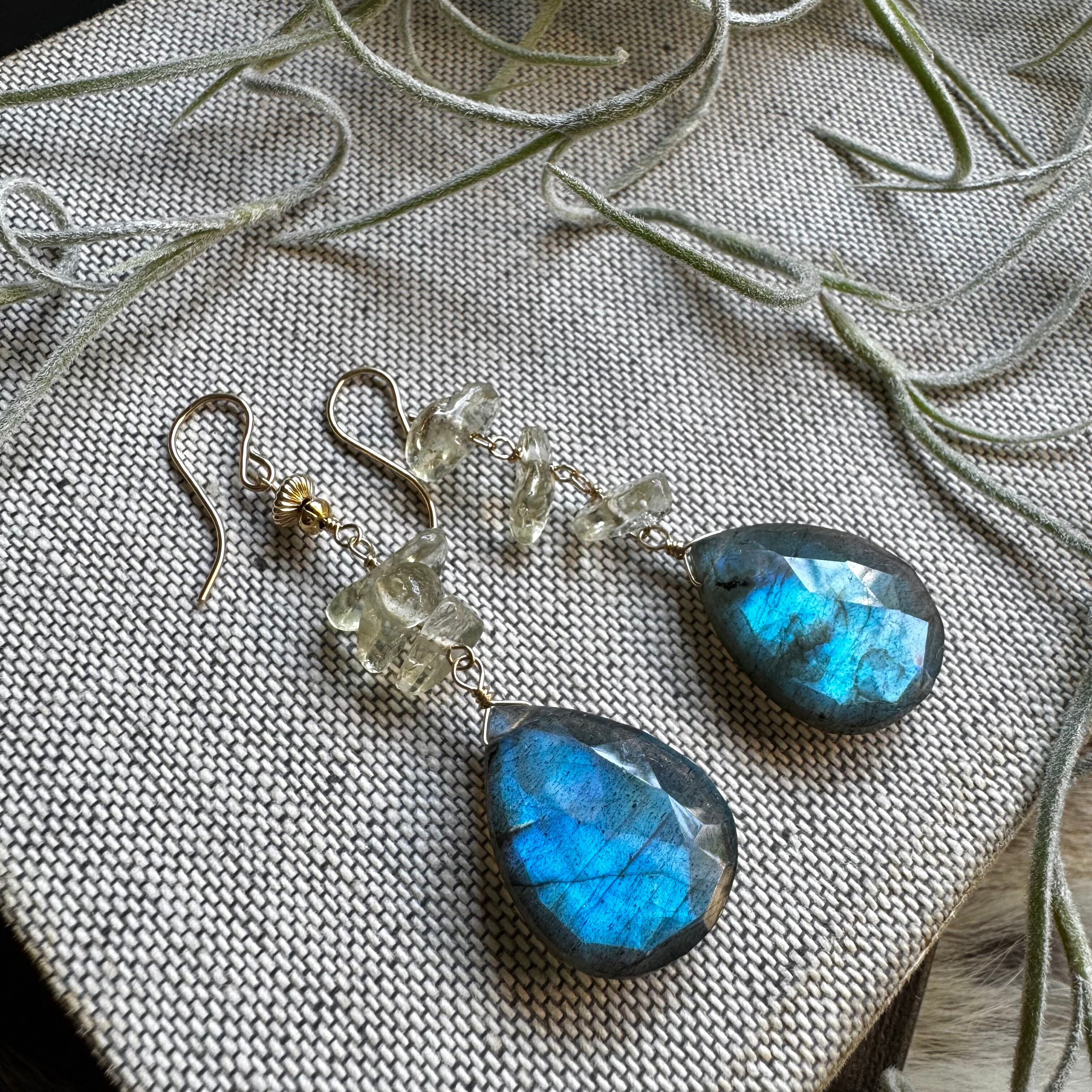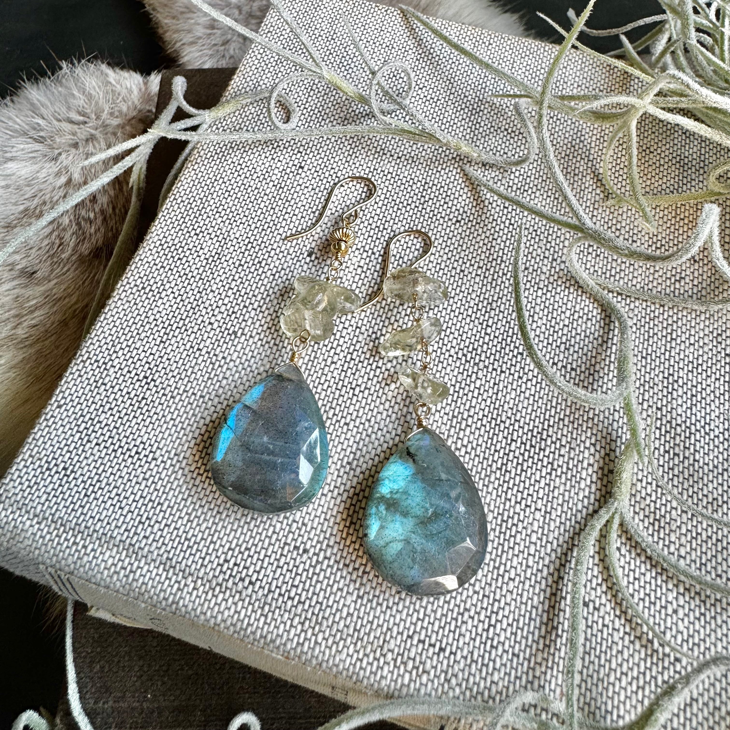 ラブラドライト&リビアングラスアシメピアス(イヤリング)