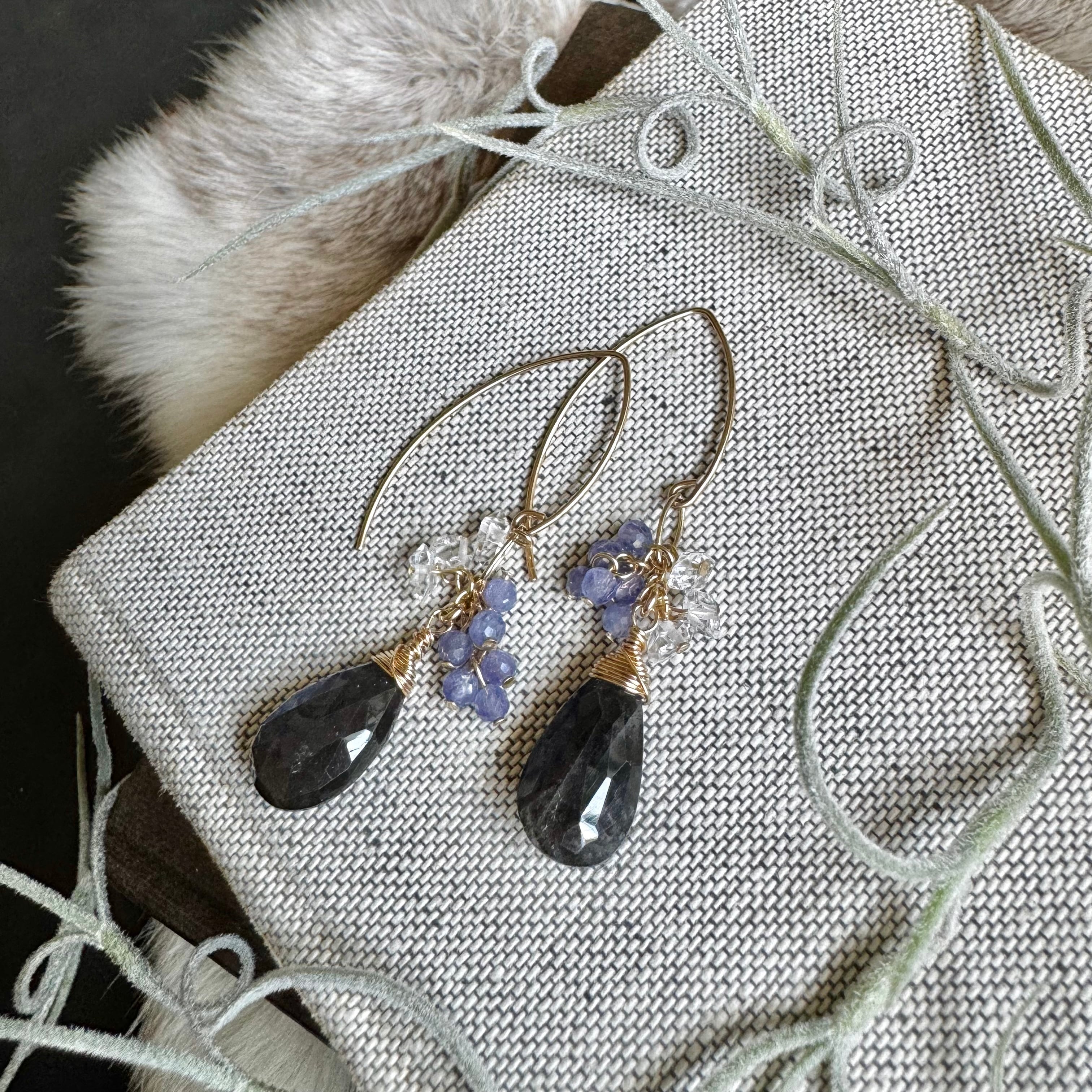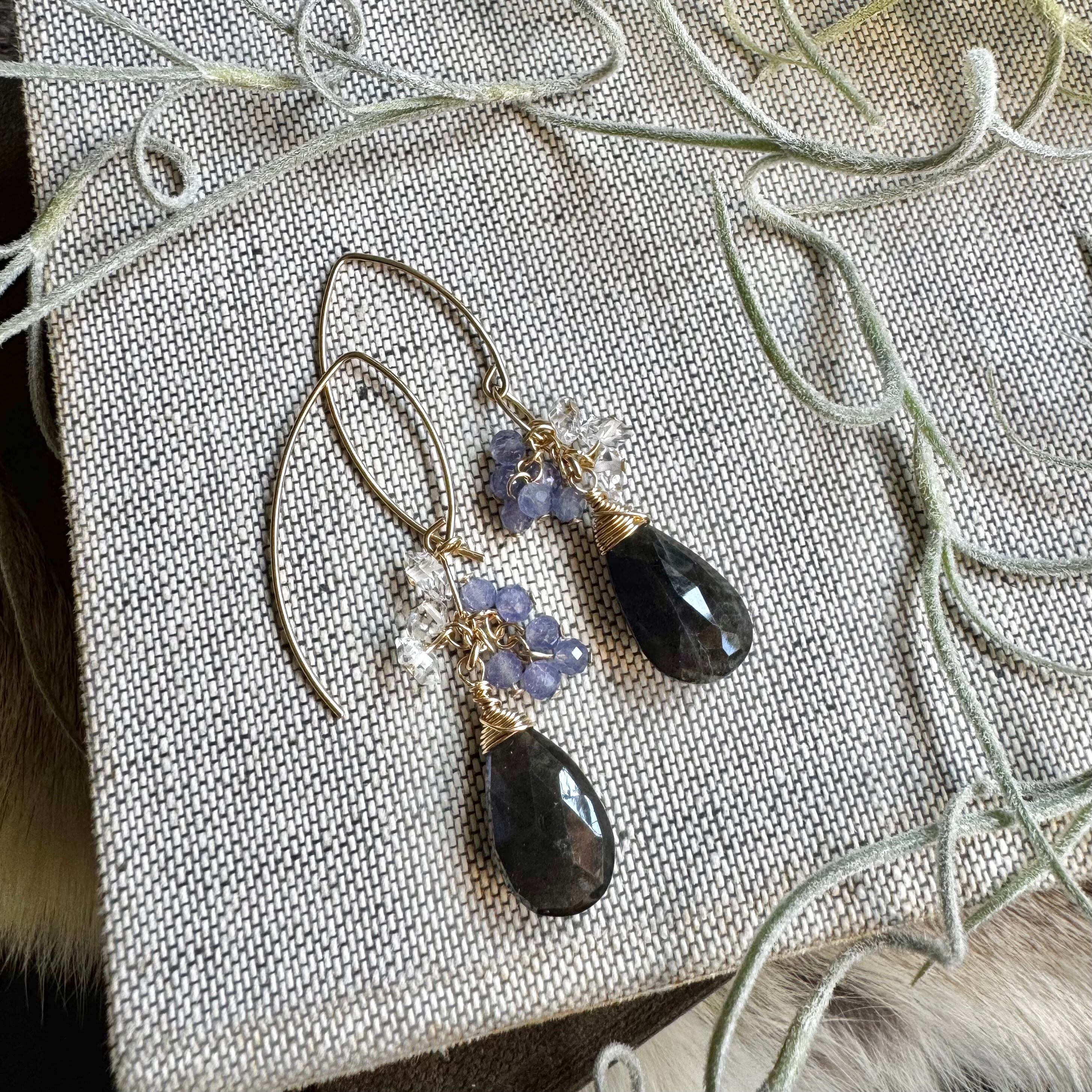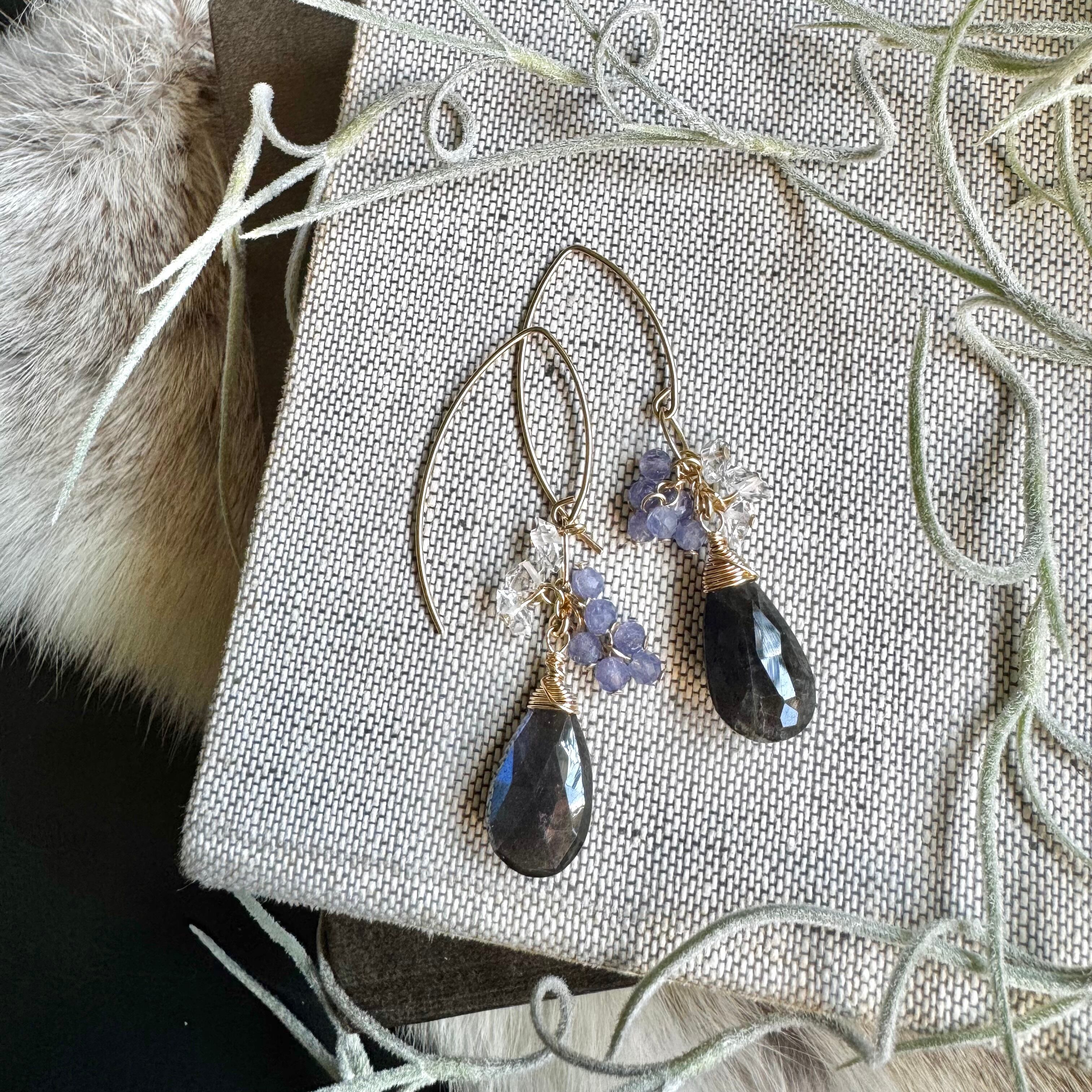 ラブラドライト&タンザナイト&ハーキマーピアス(イヤリング)