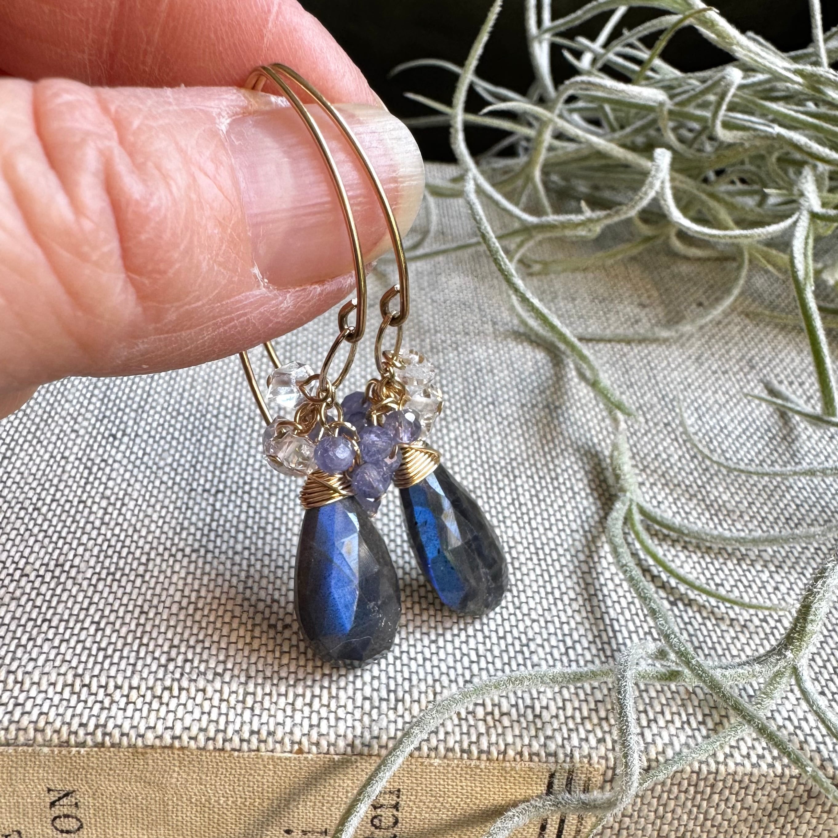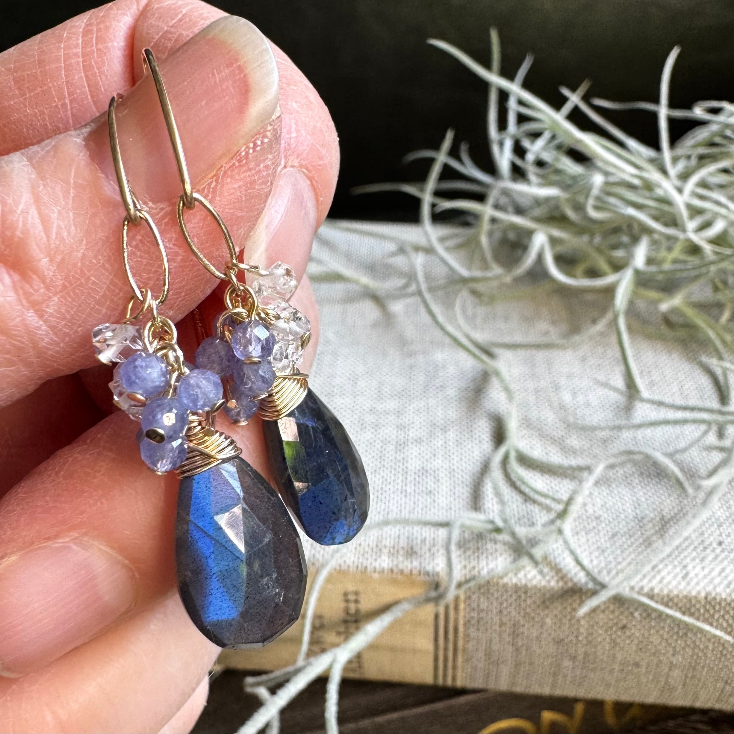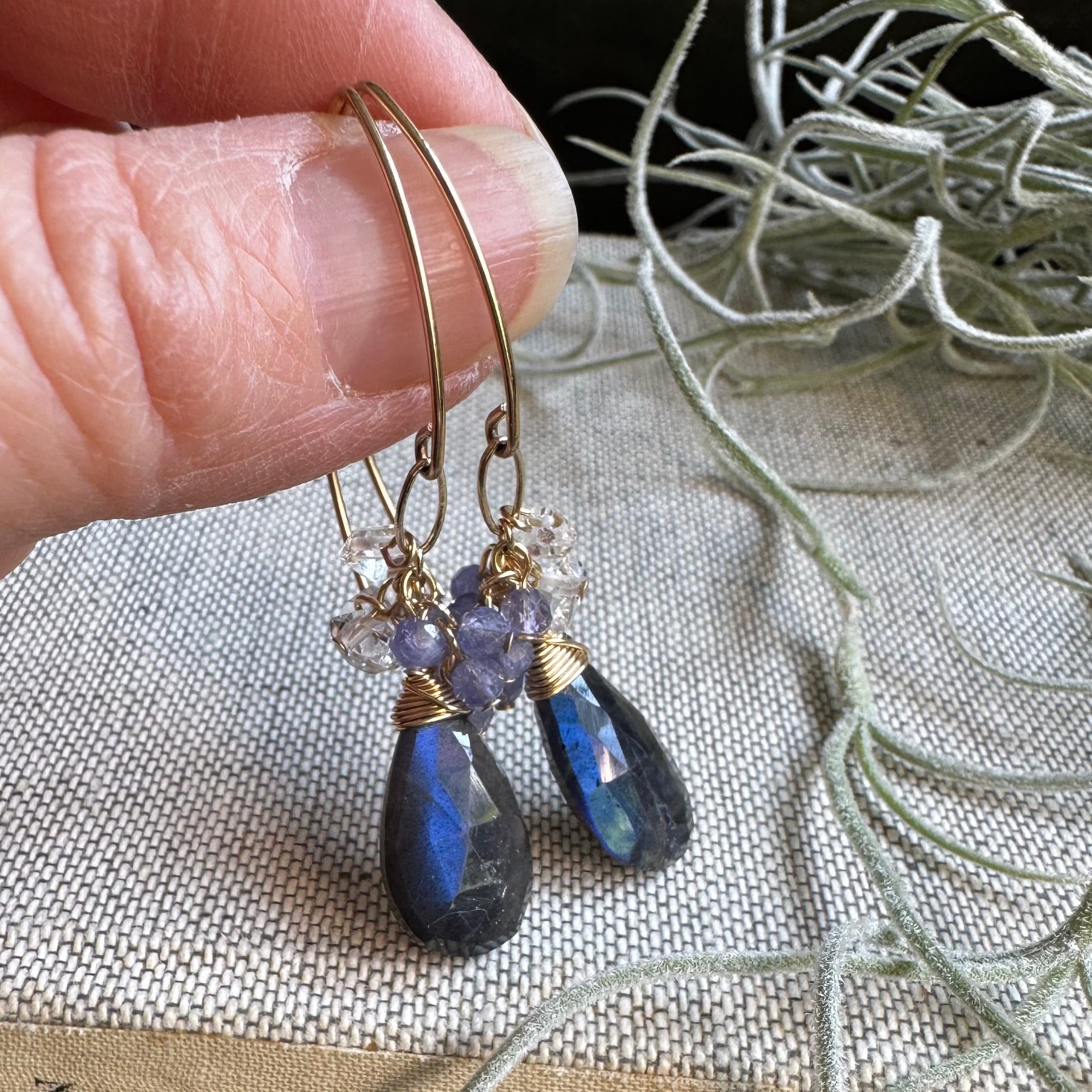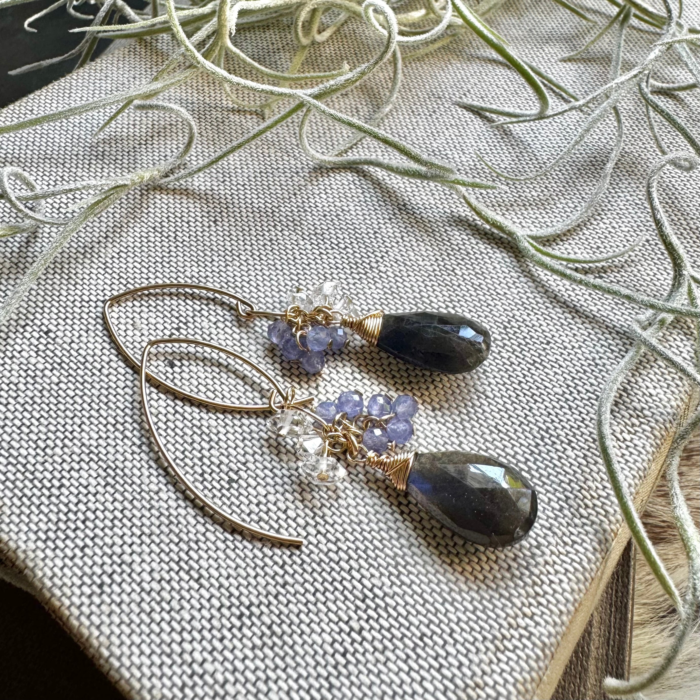 ラブラドライト&タンザナイト&ハーキマーピアス(イヤリング)