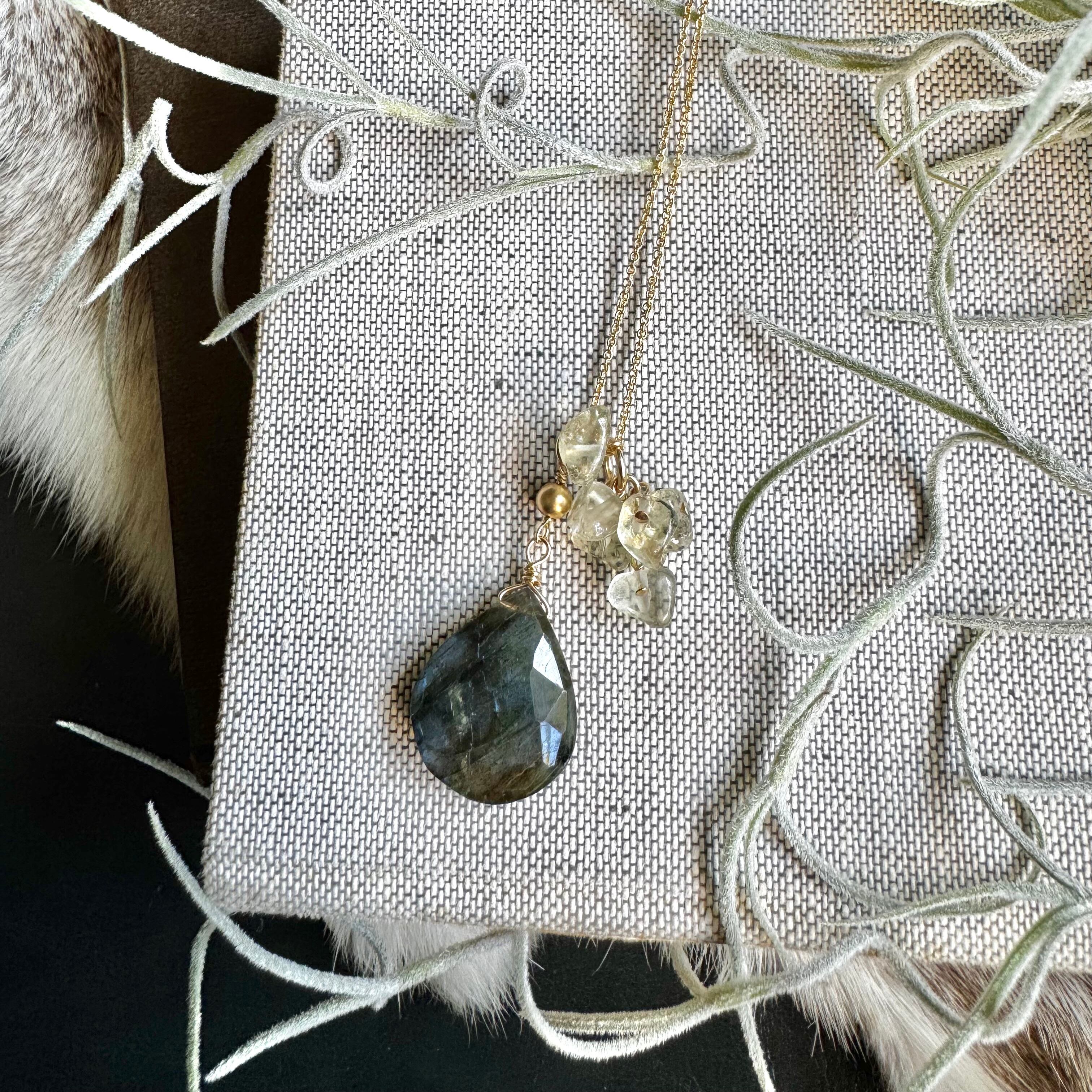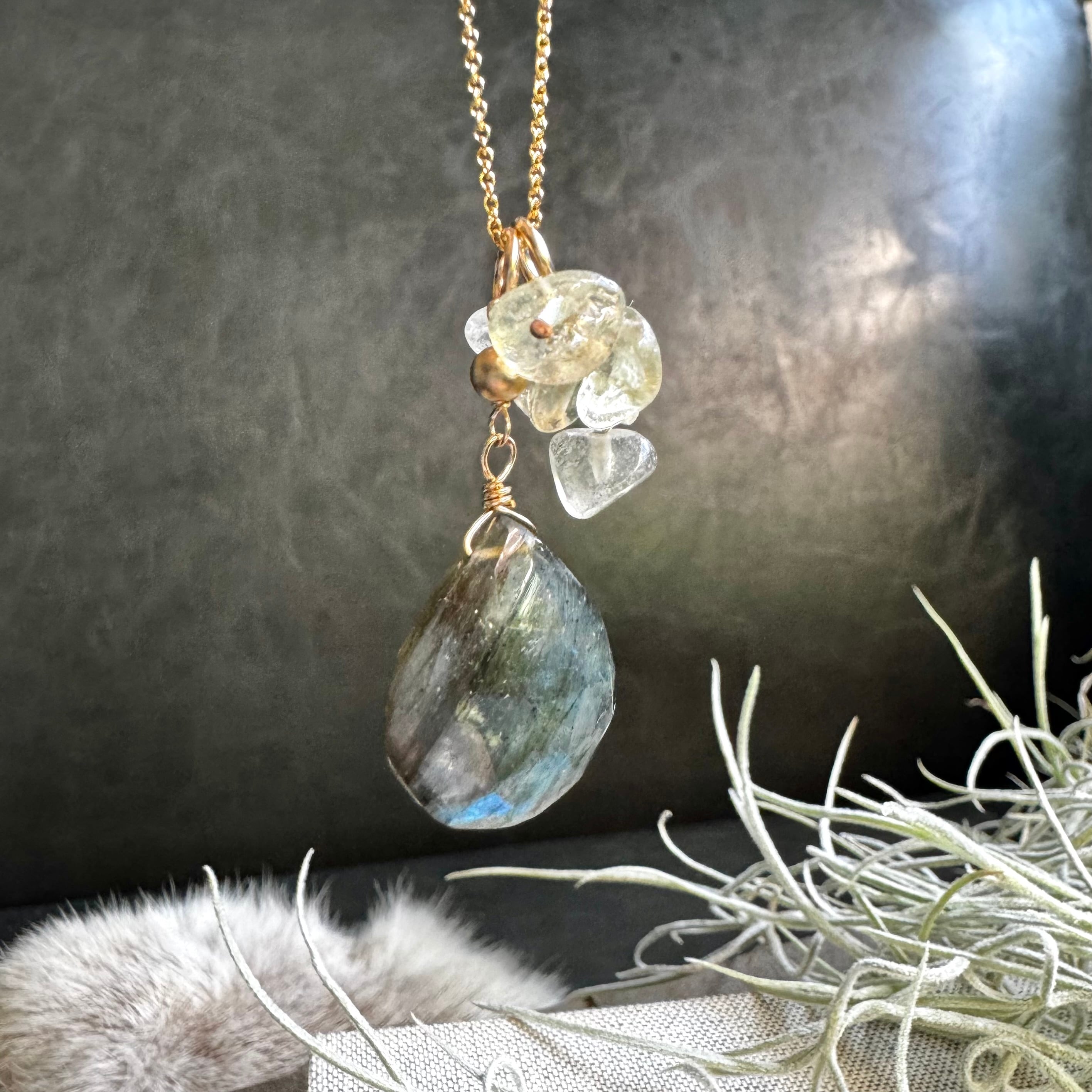 グレーやブラックベースの一見地味な石ですが、光が当たると様々なお色が輝く神秘的な天然石です