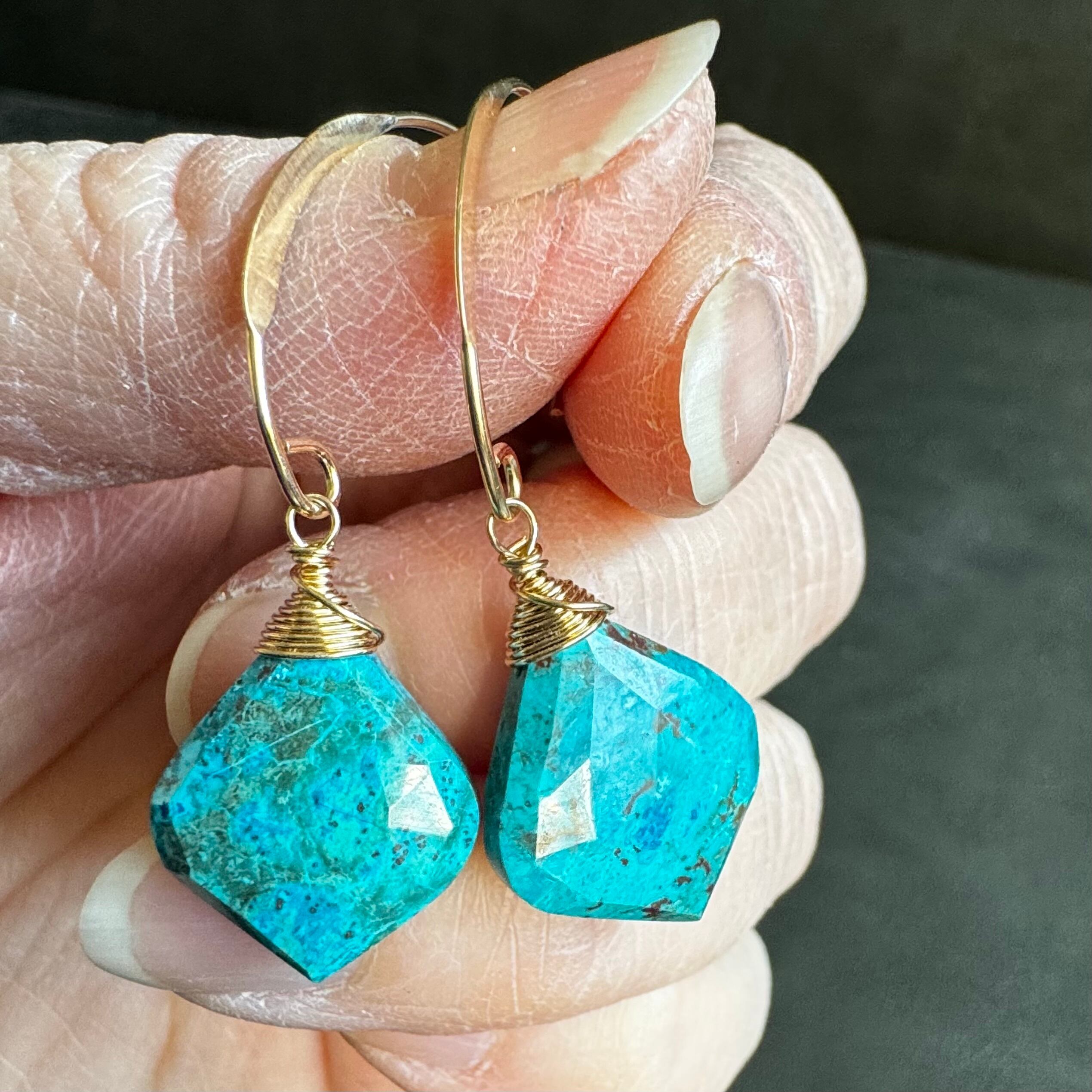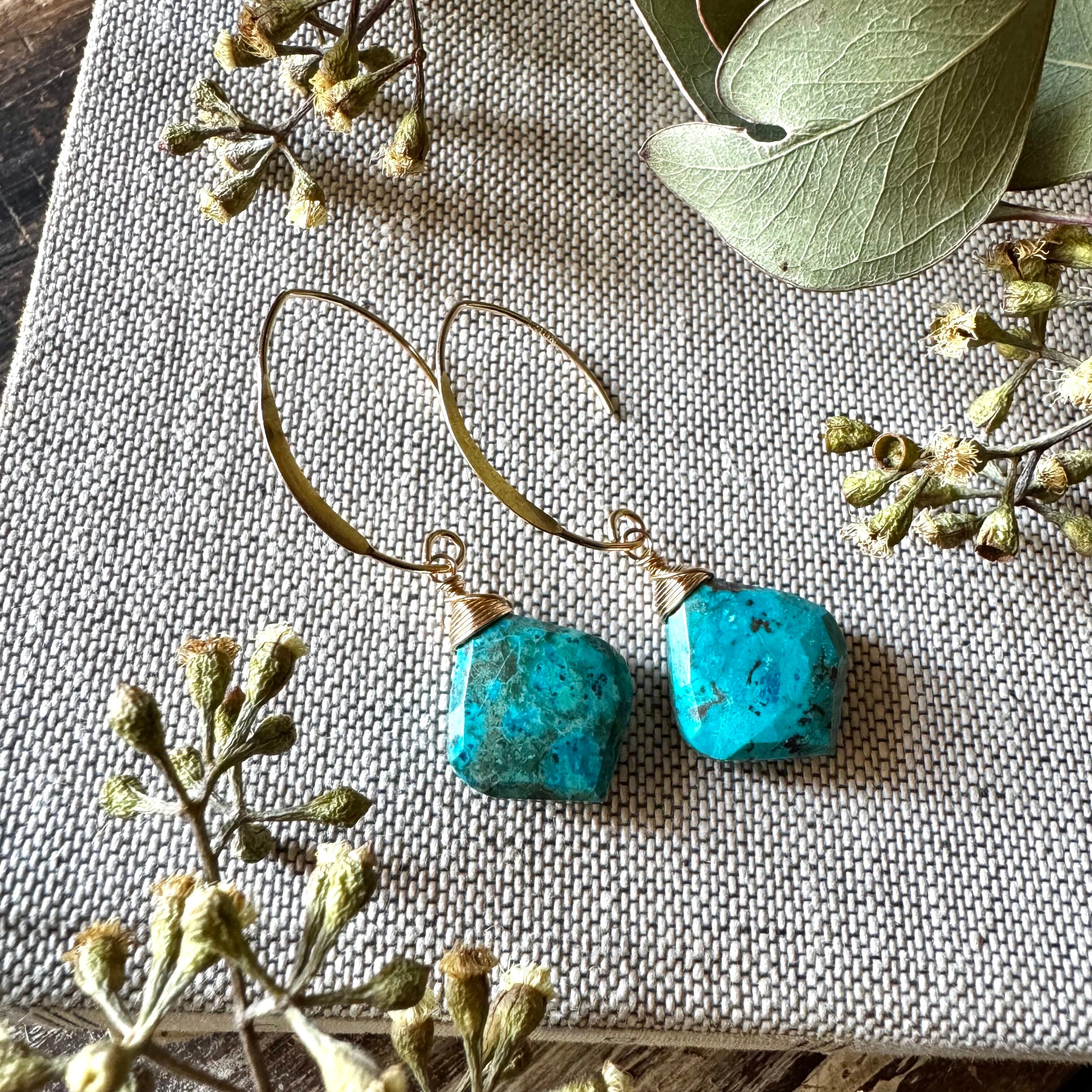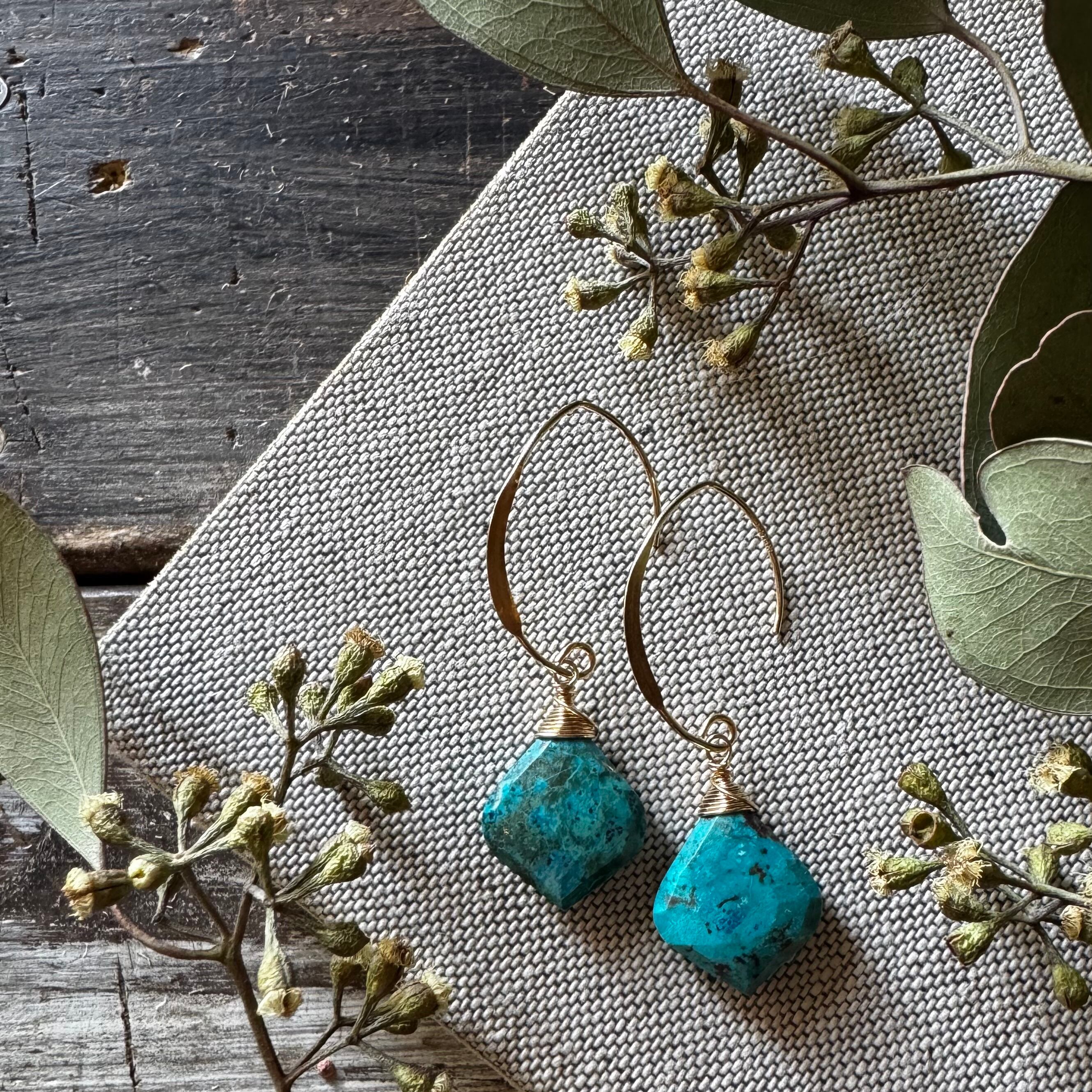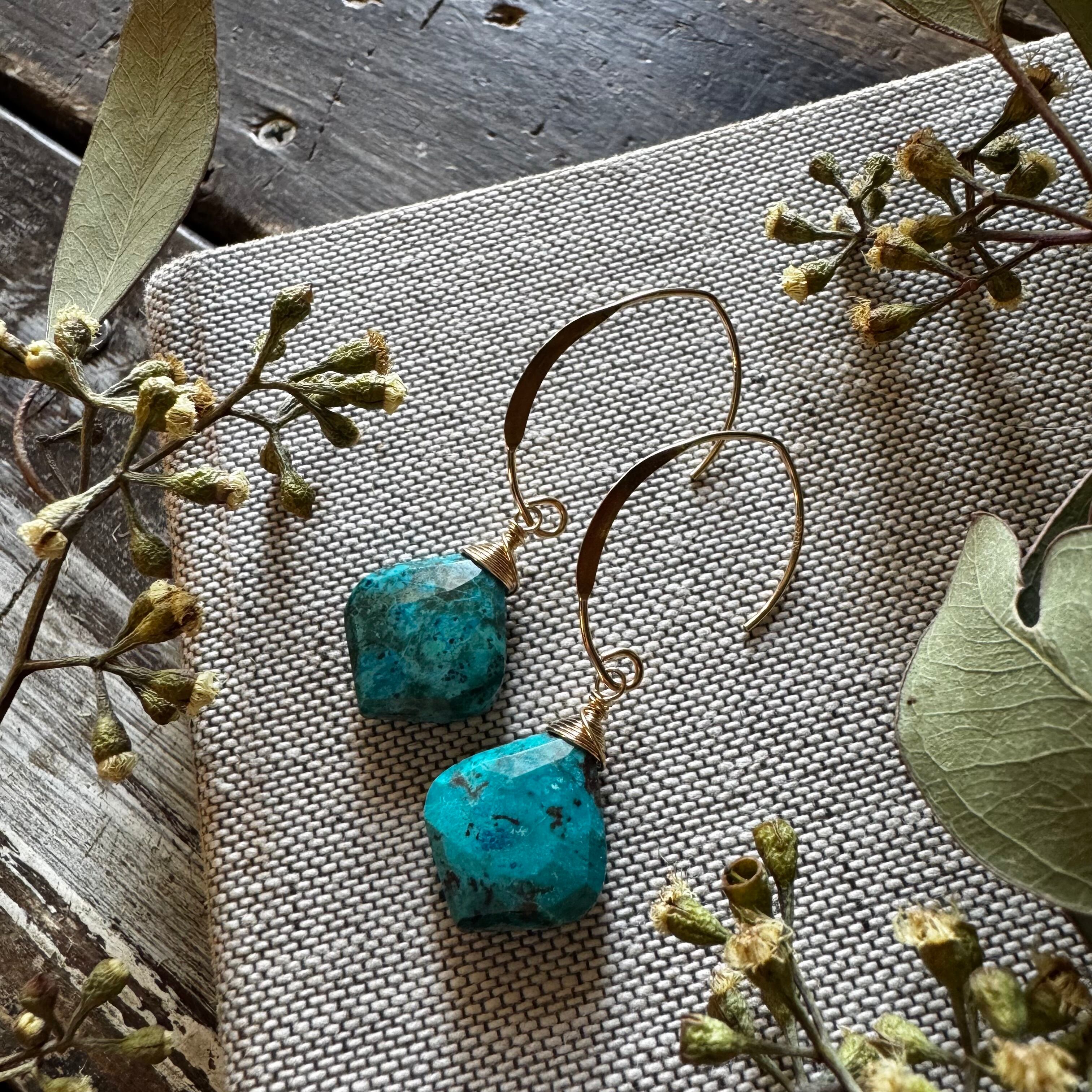 クリソコラは、ブルーやグリーンにブラウンやブラックが混ざった地球の様な色合いの石です