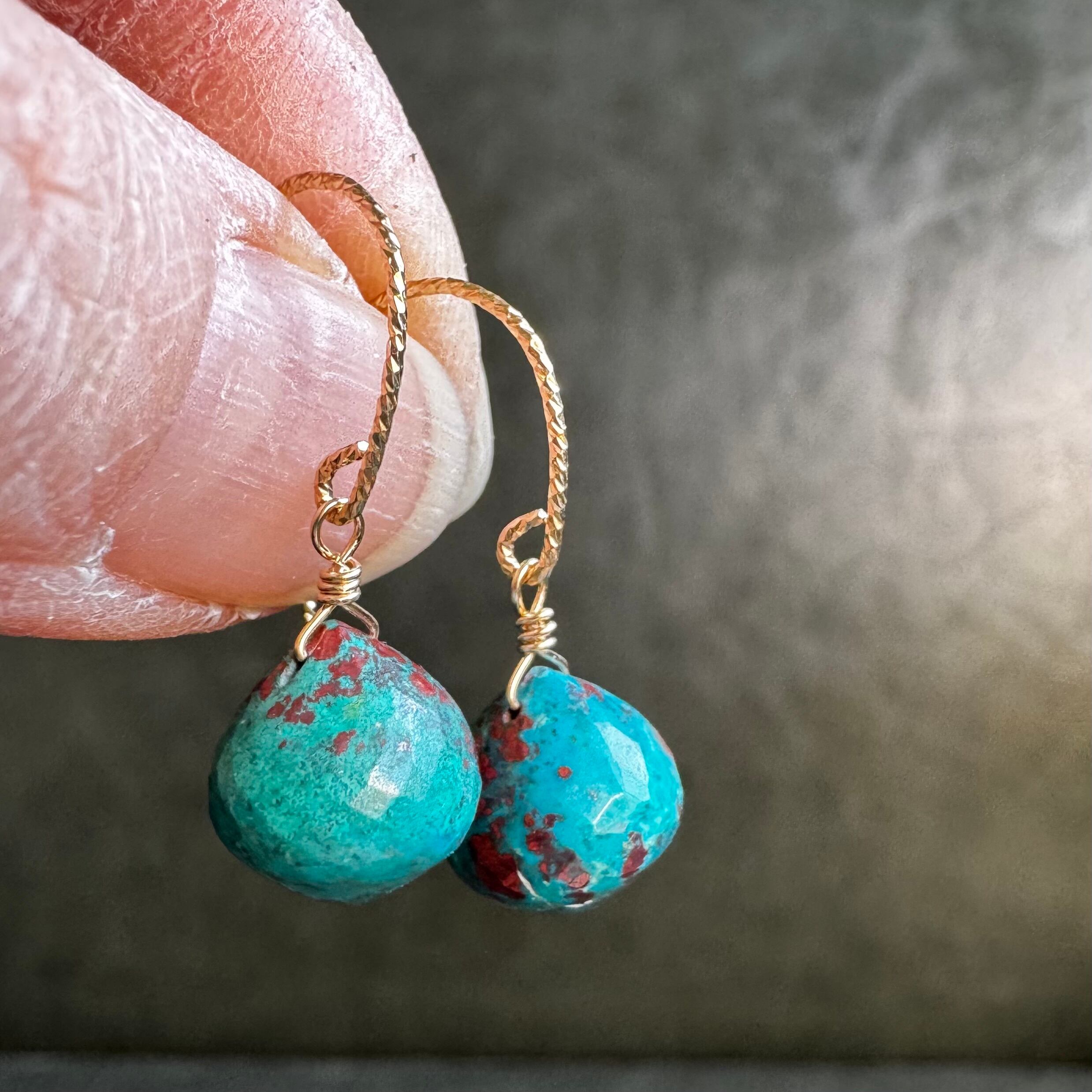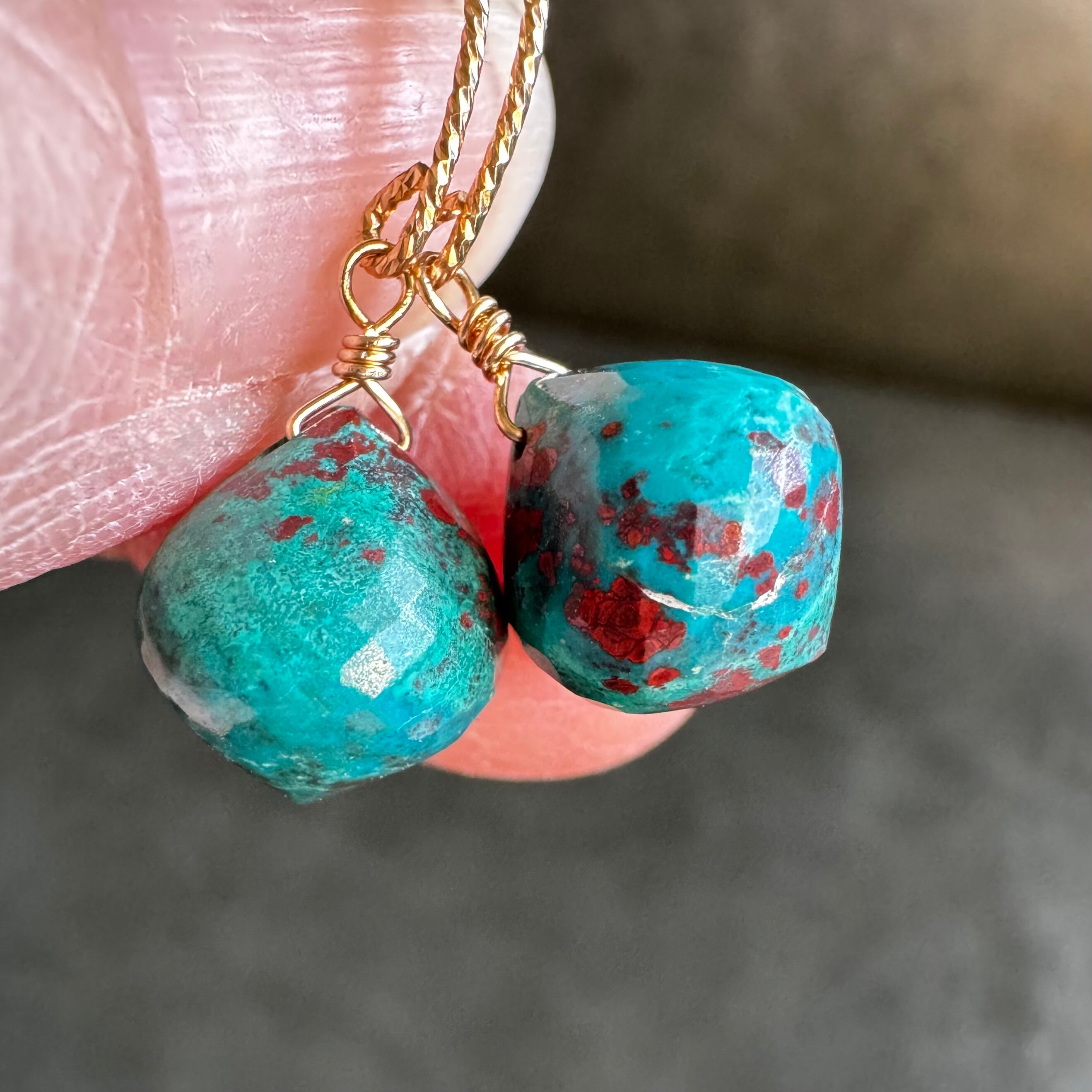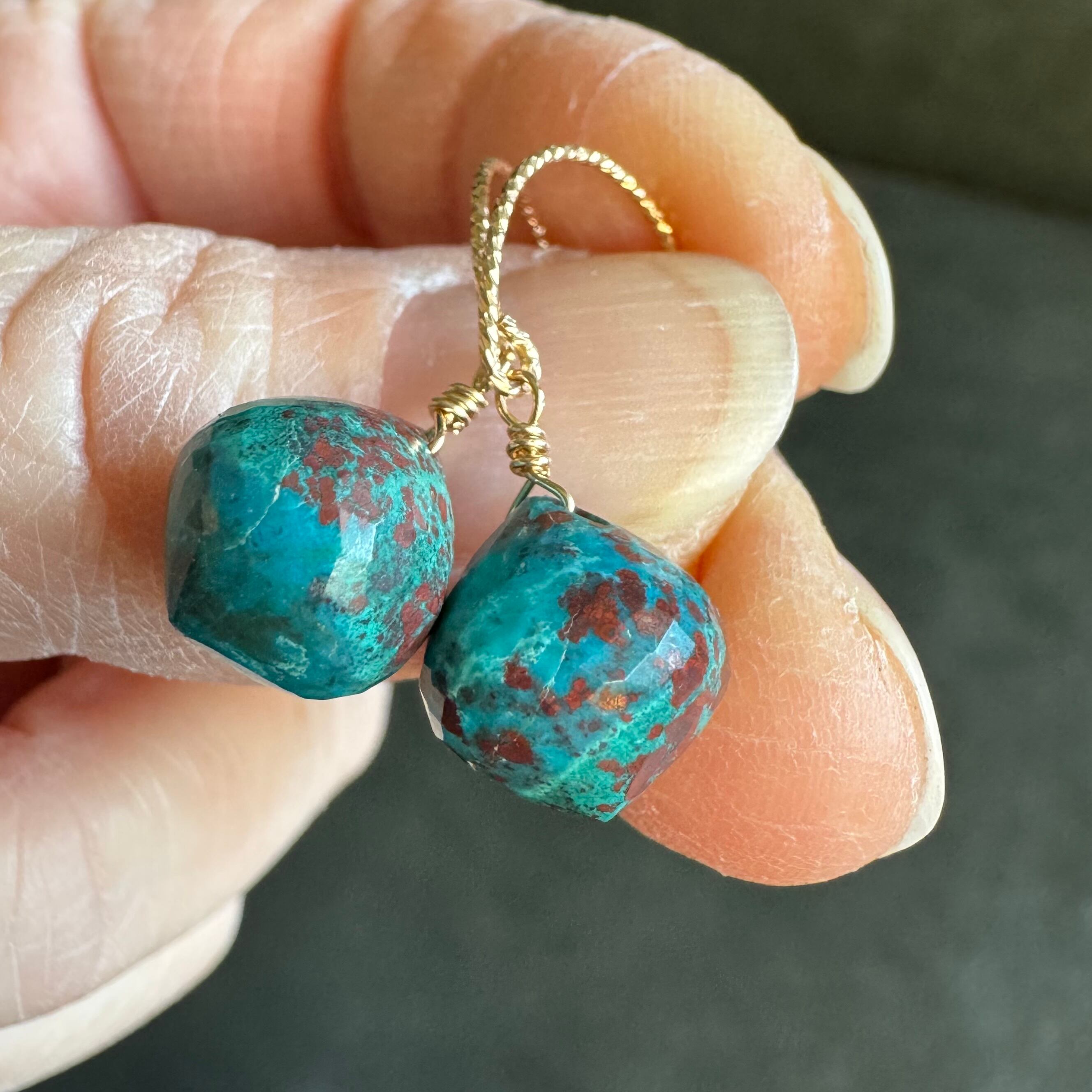 クリソコラは、ブルーやグリーンにブラウンやブラックが混ざった地球の様な色合いの石です