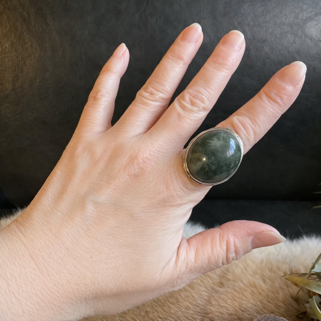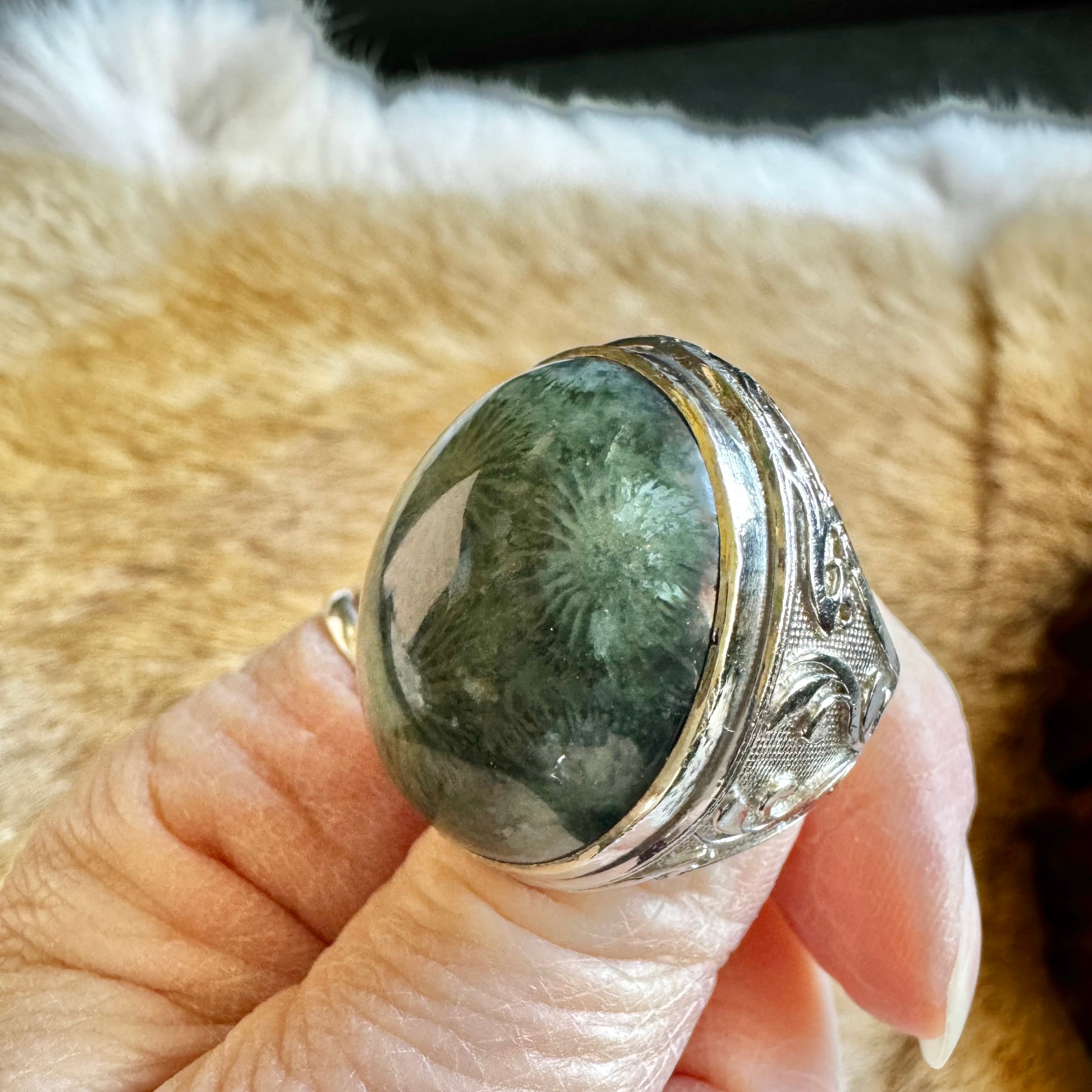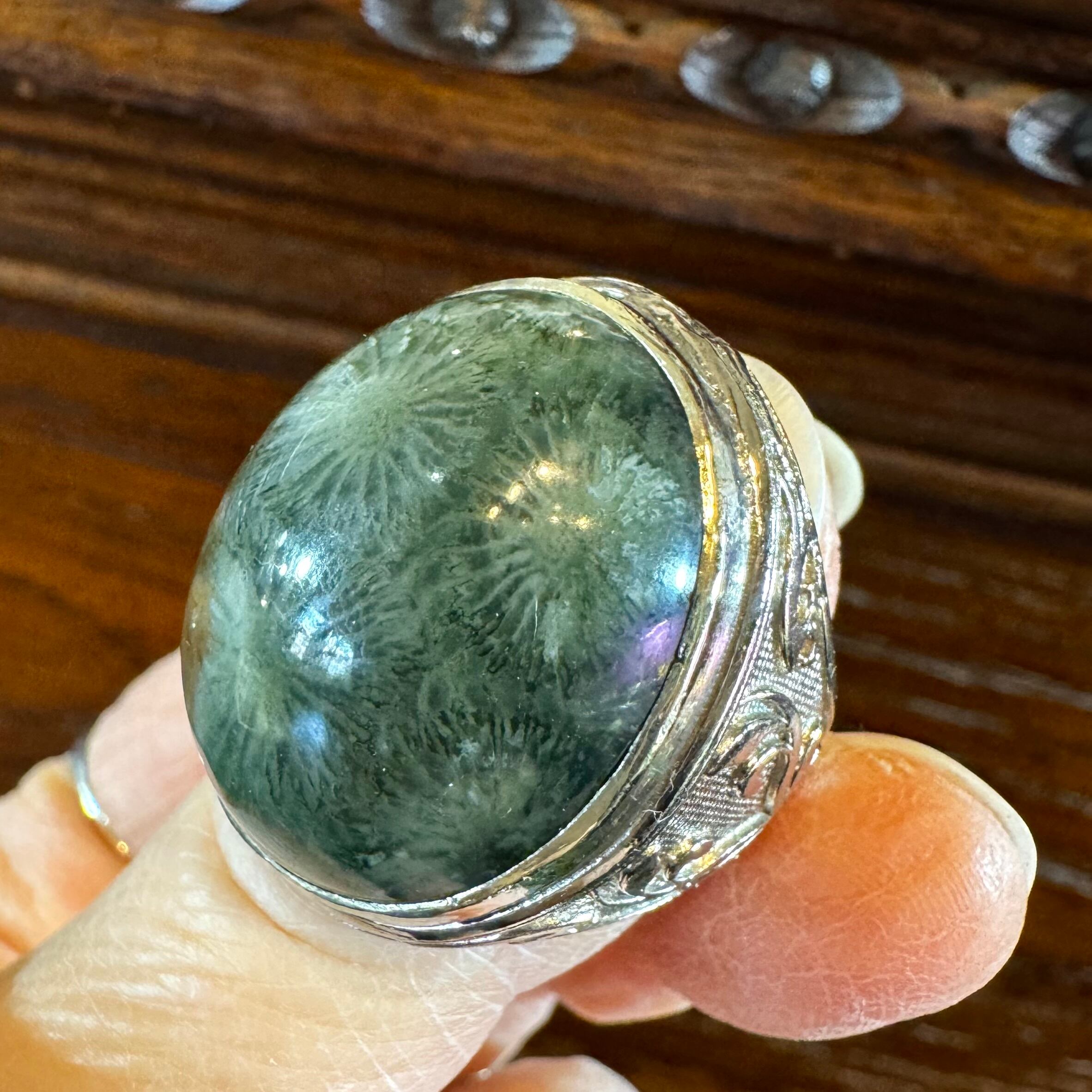 フォッシルコーラル*アルパカリングNo.1(超大粒ダークグリーン)