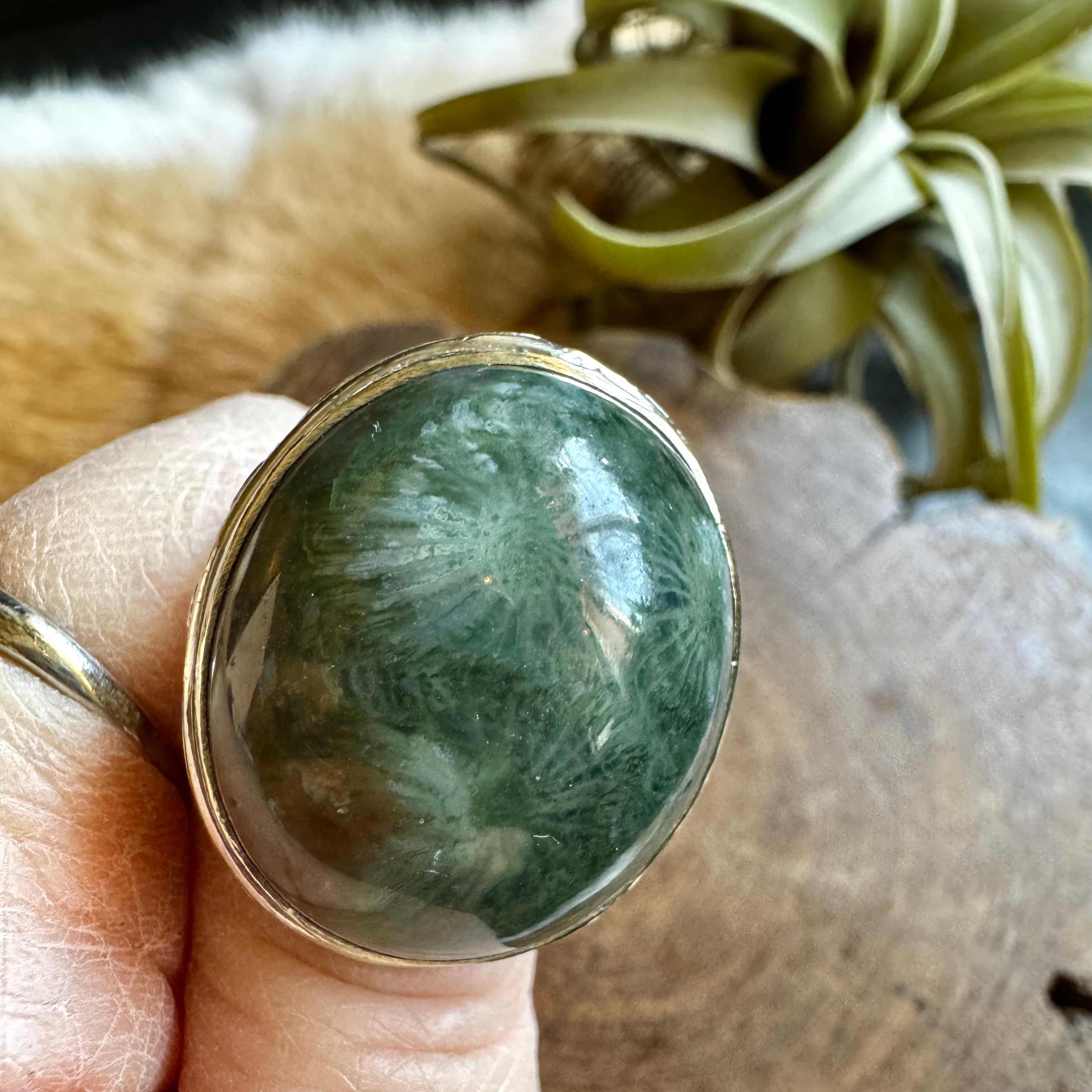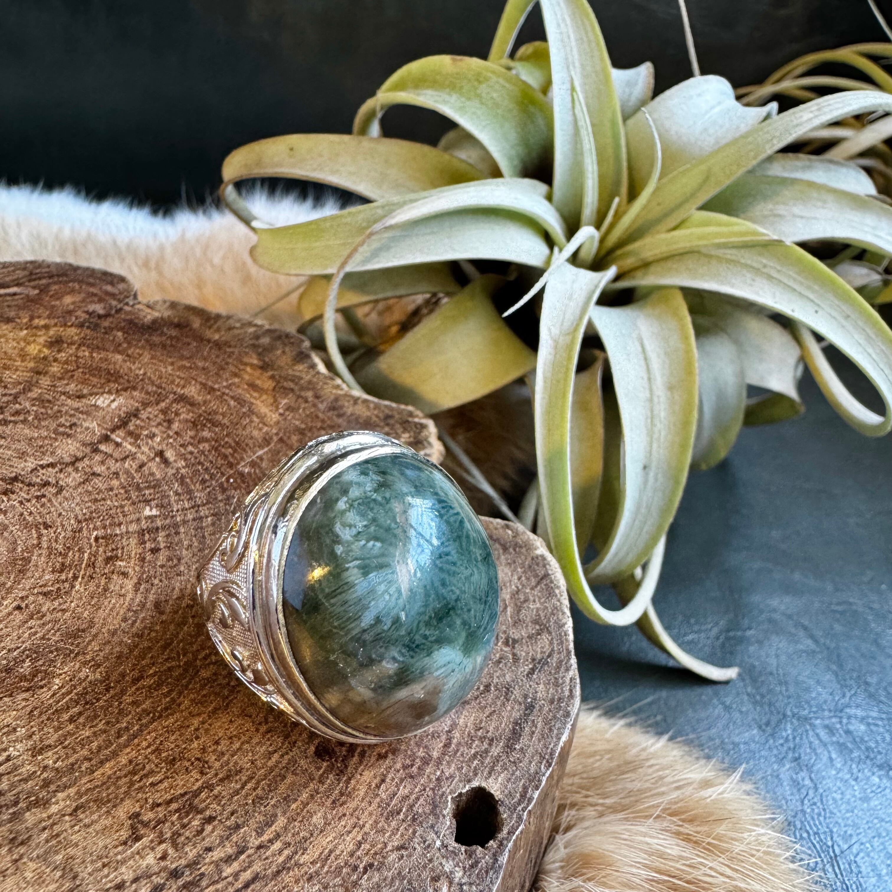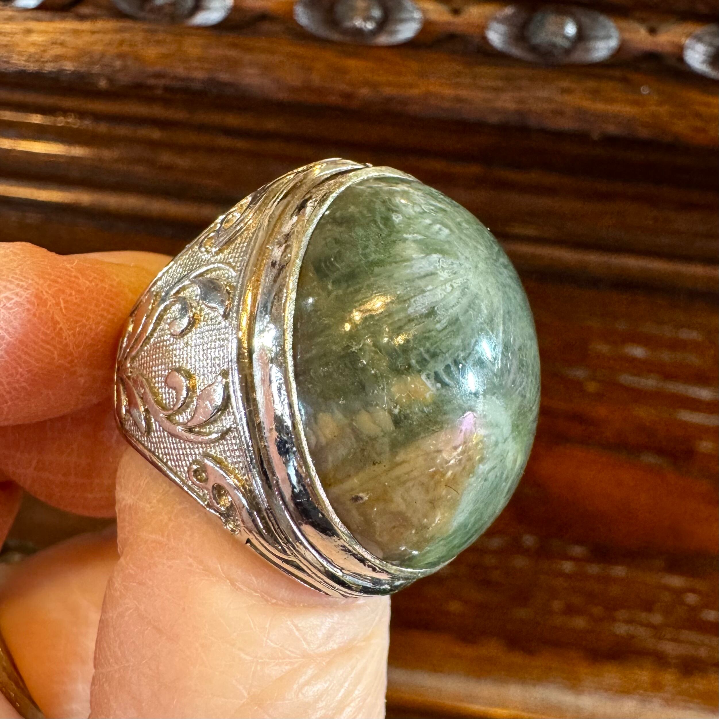 フォッシルコーラル*アルパカリングNo.1(超大粒ダークグリーン)