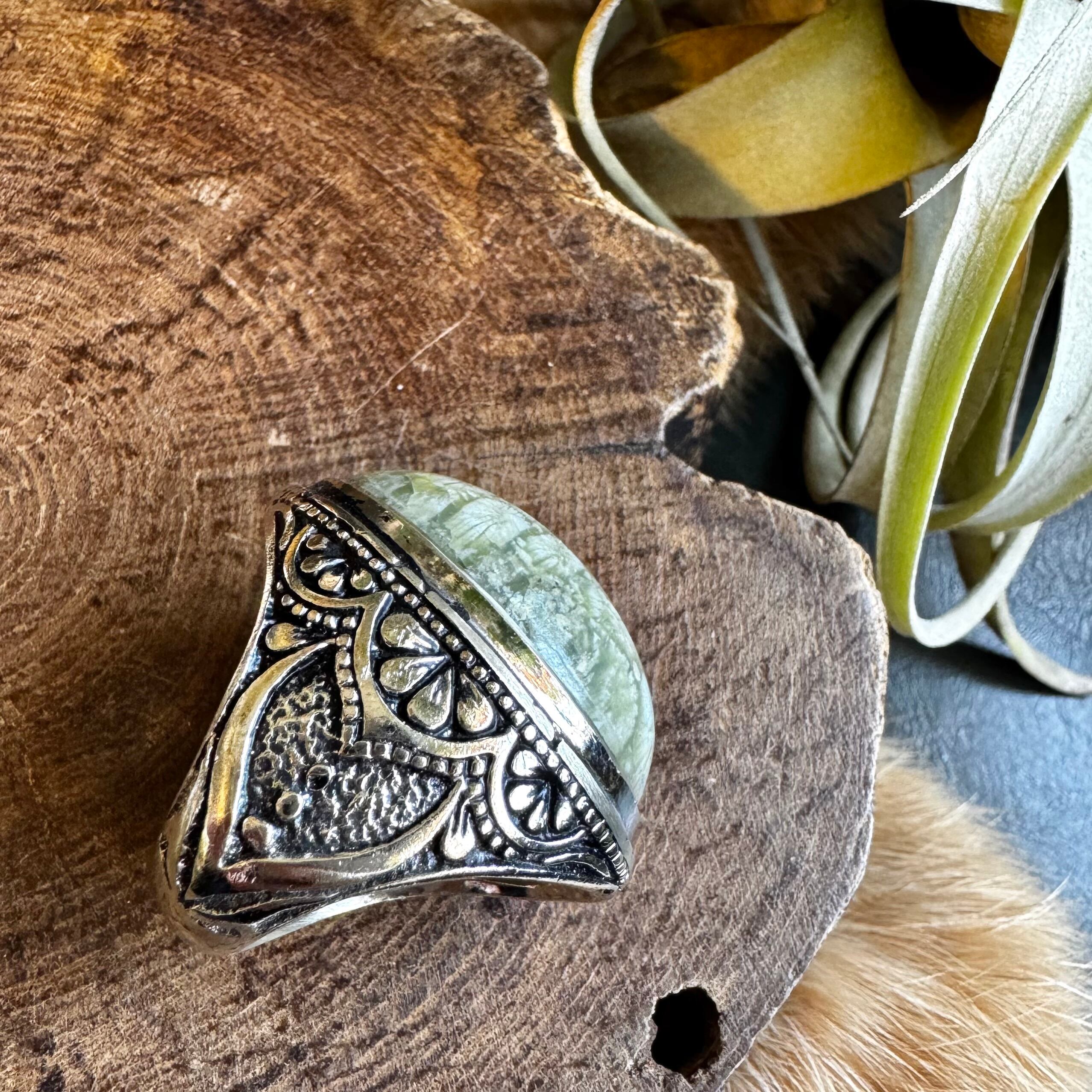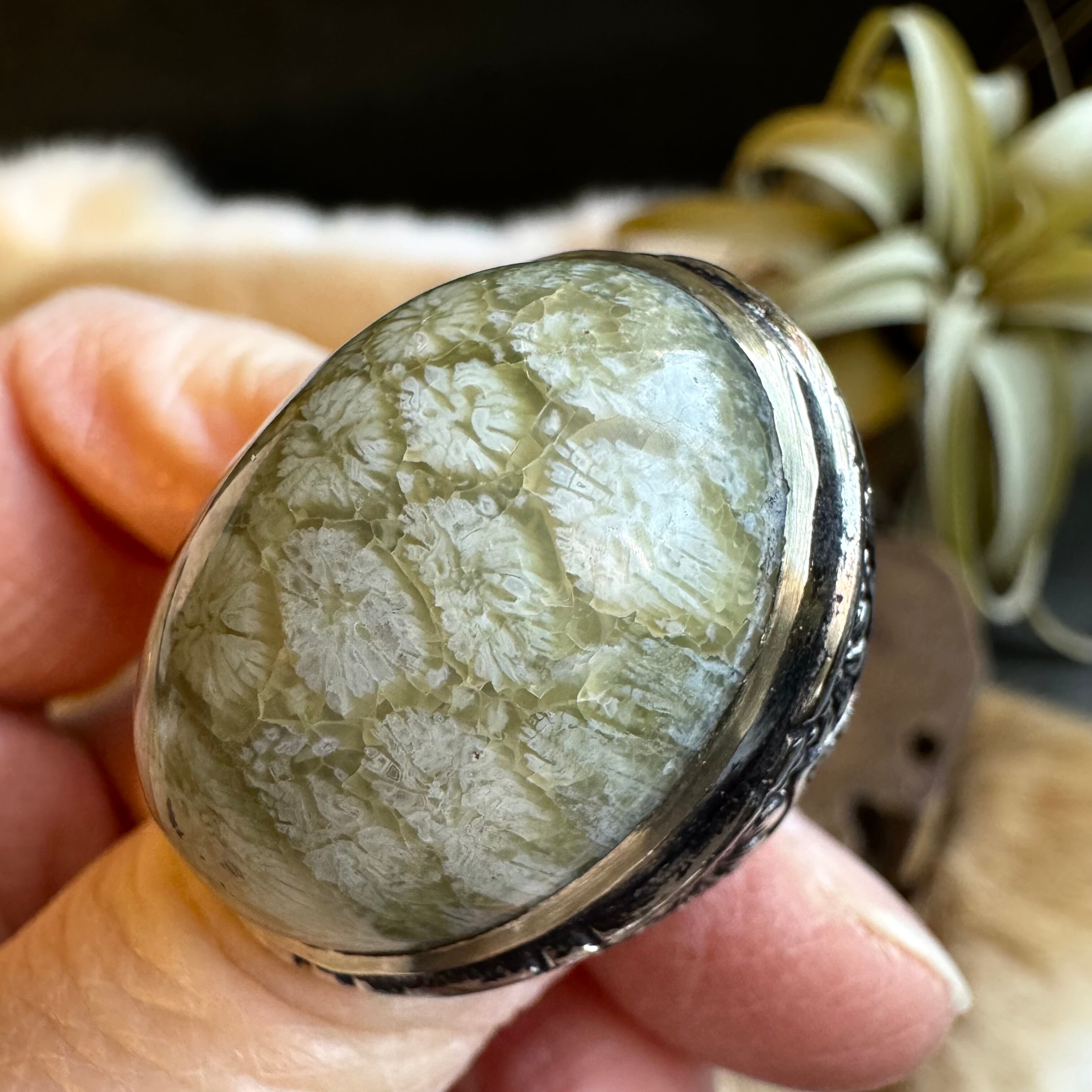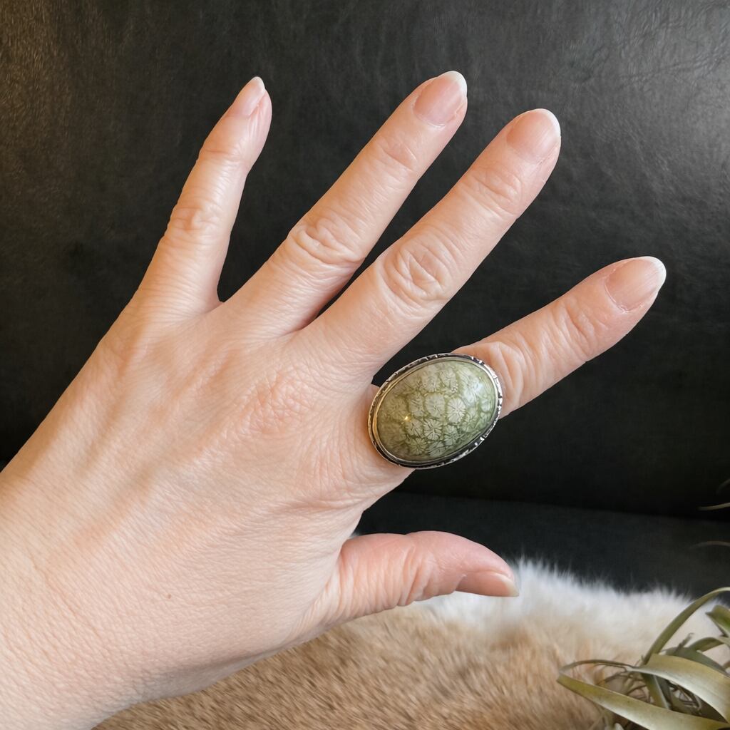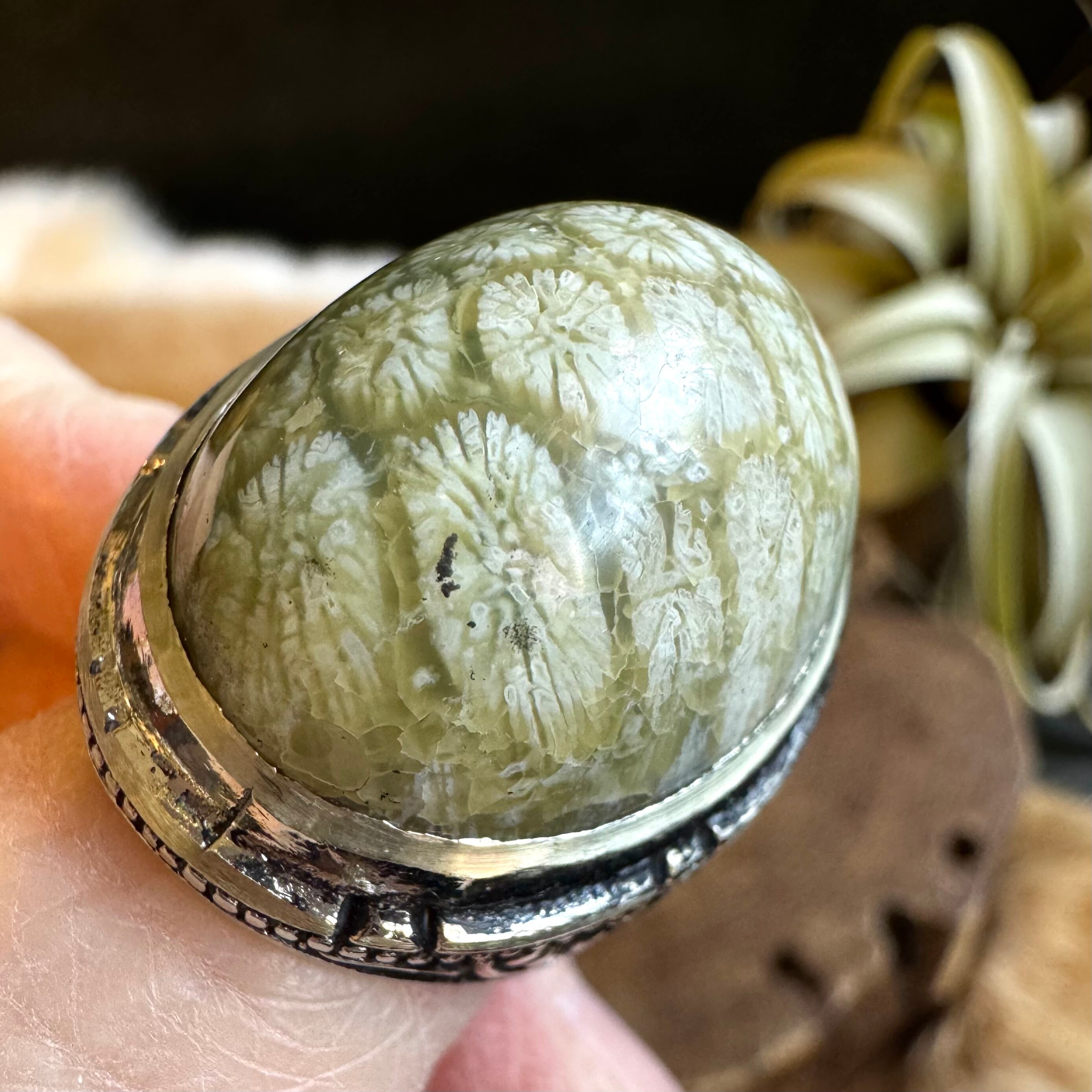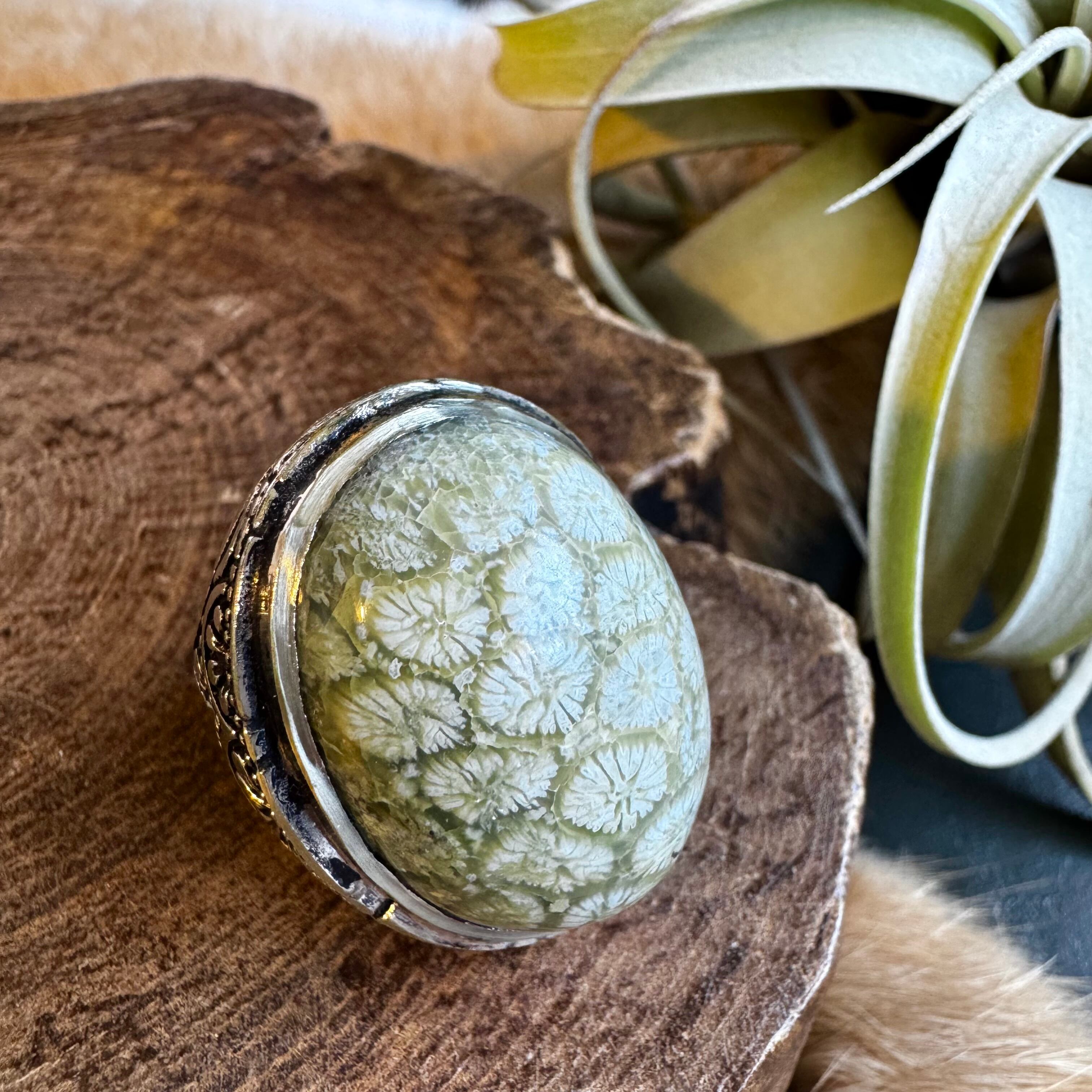 フォッシルコーラル*アルパカリングNo.2(大粒ライトグリーン)