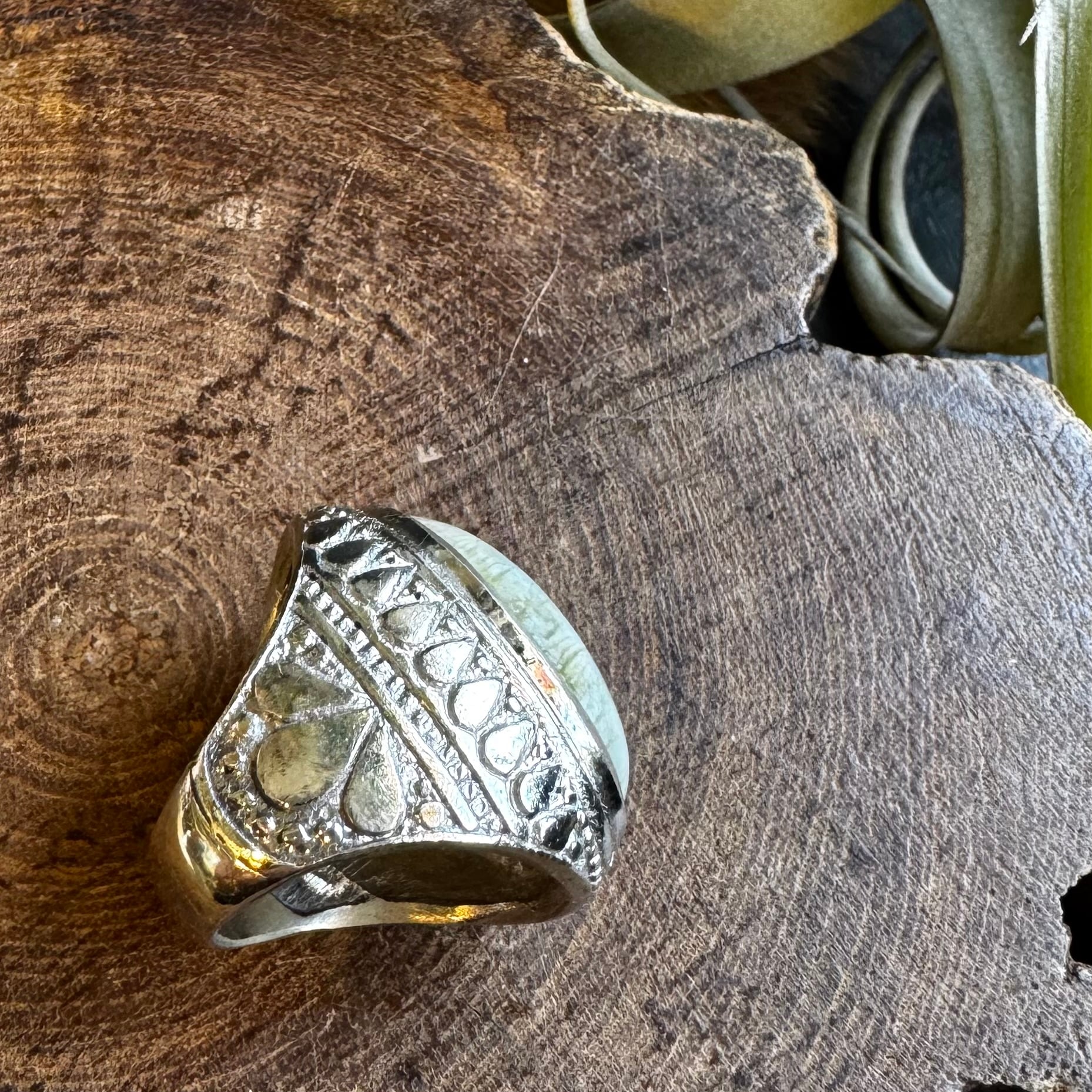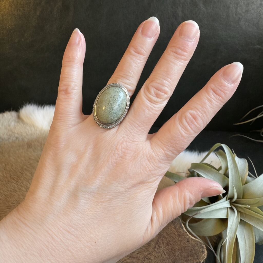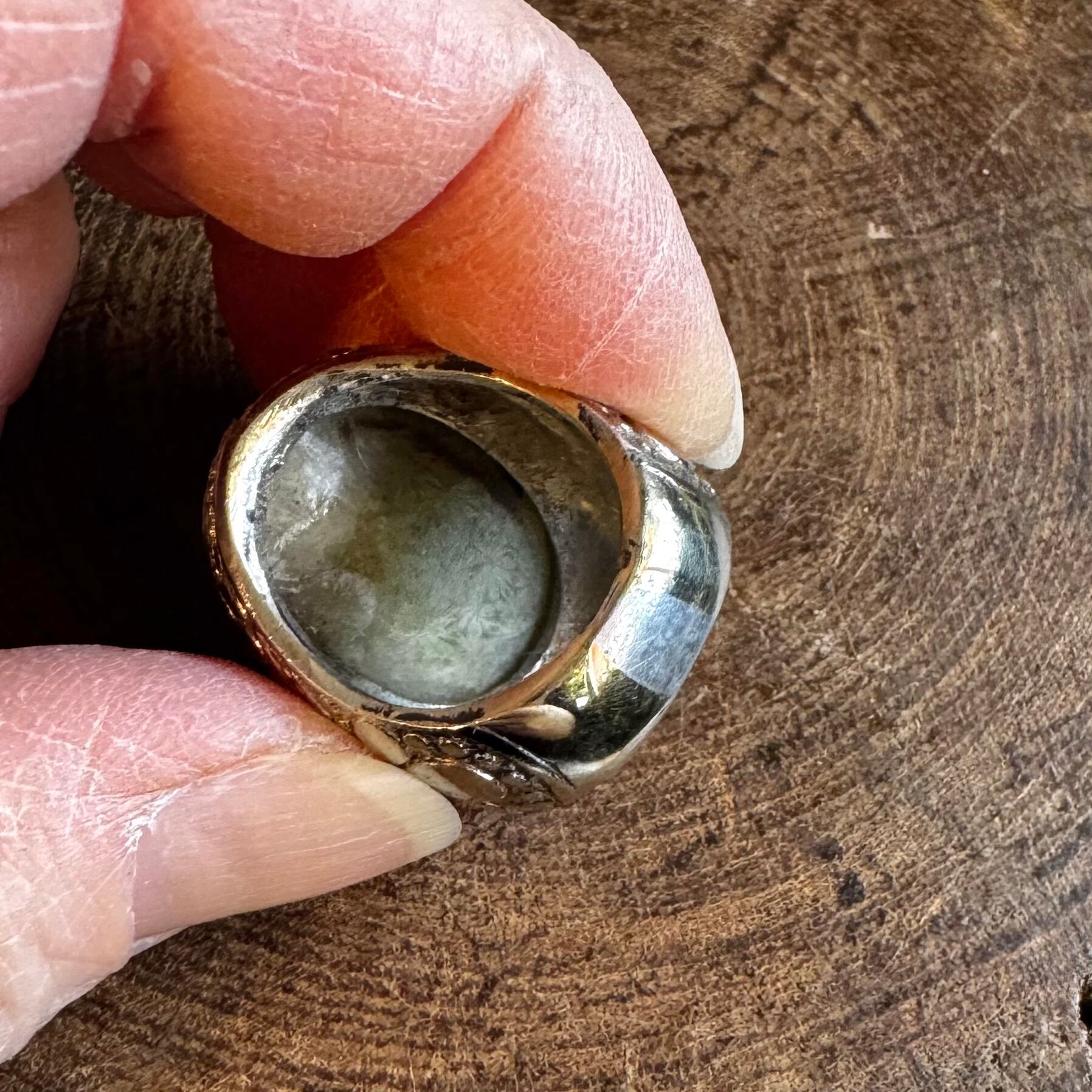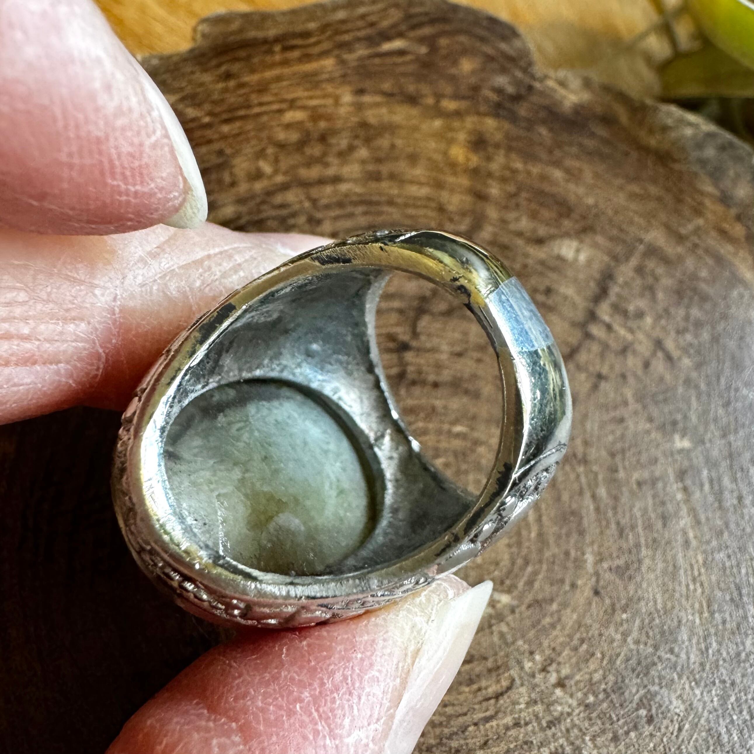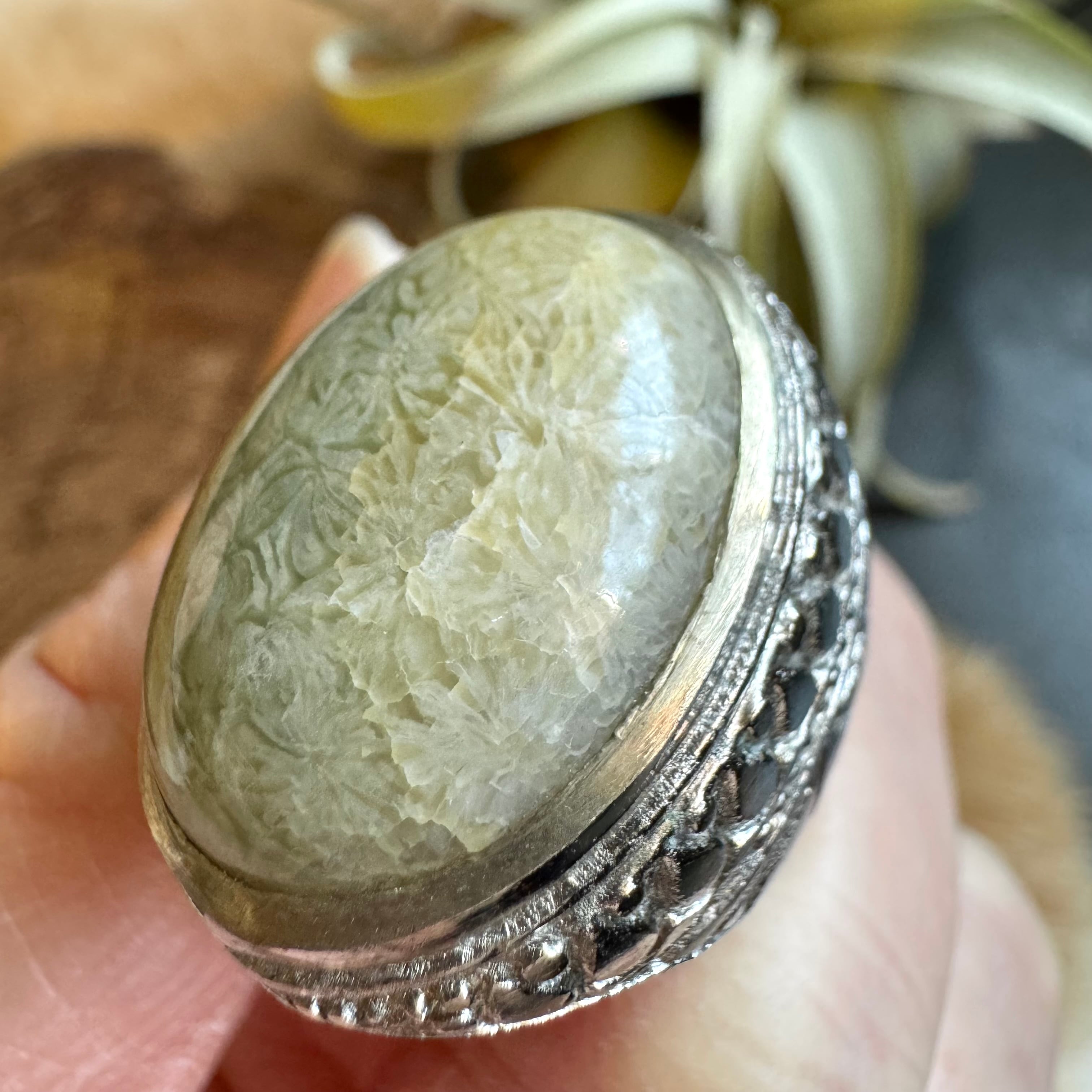 フォッシルコーラル*アルパカリングNo.3(大粒ライトグリーン花柄)