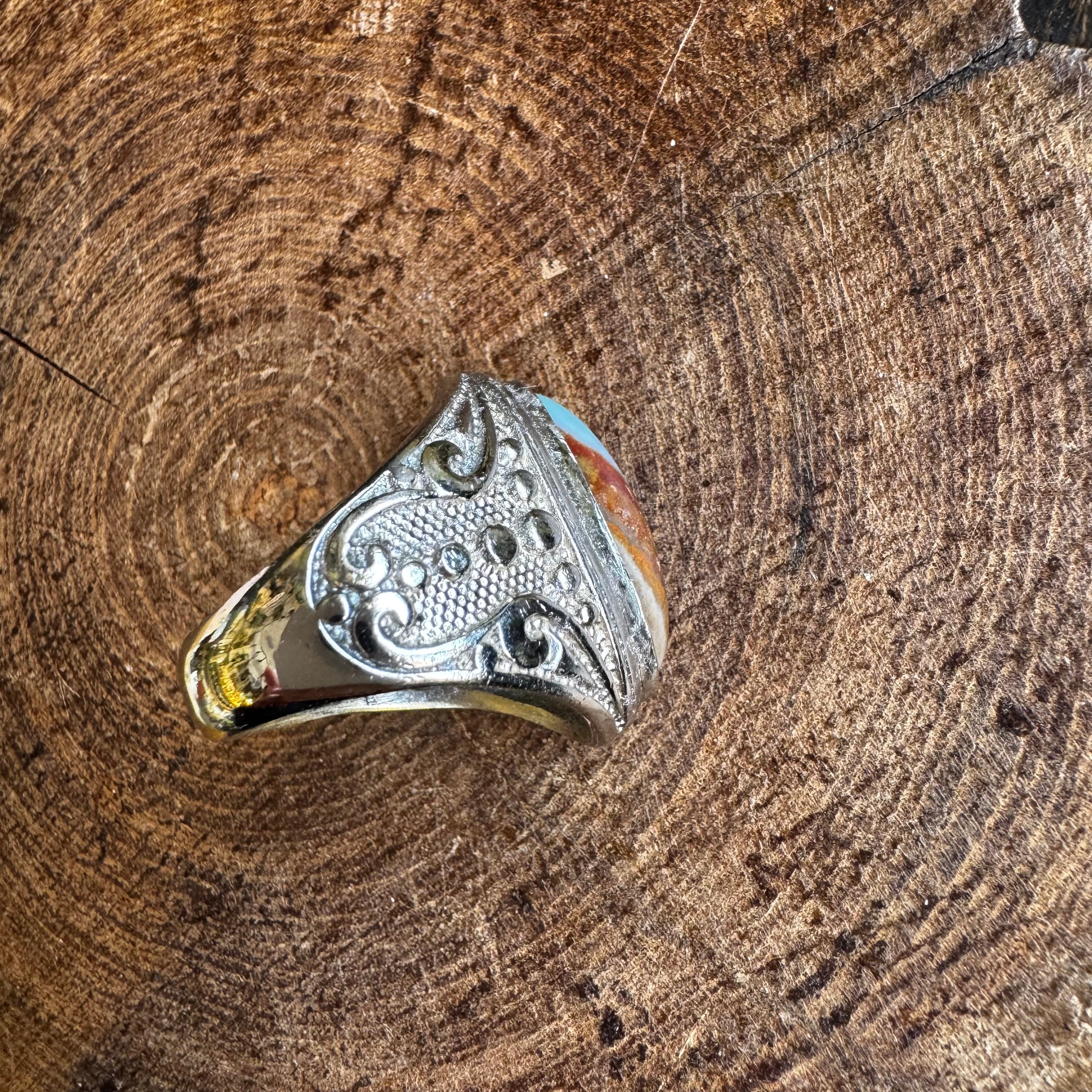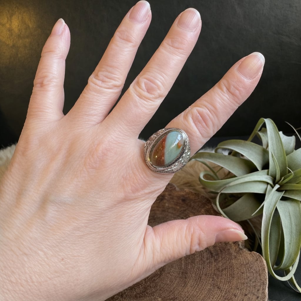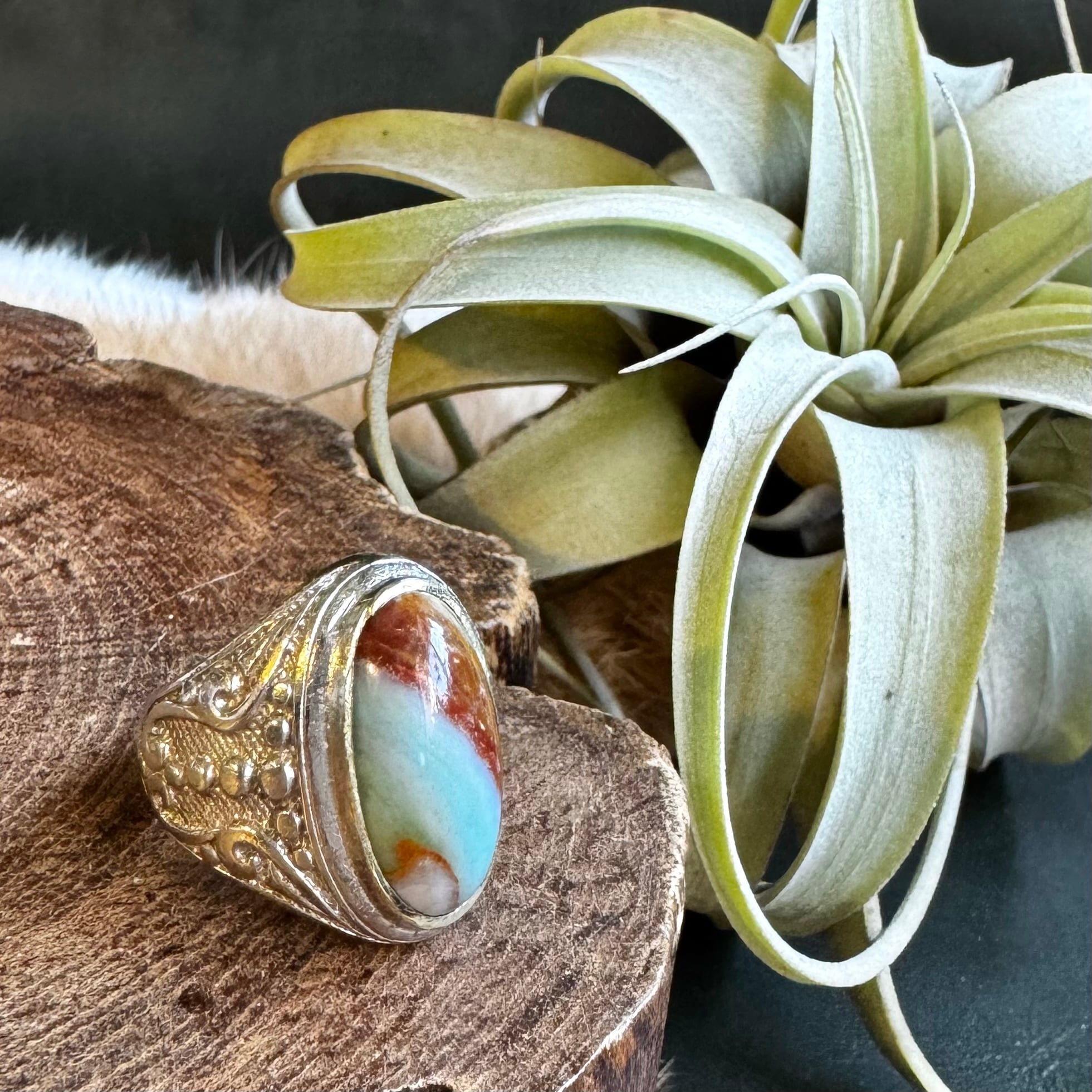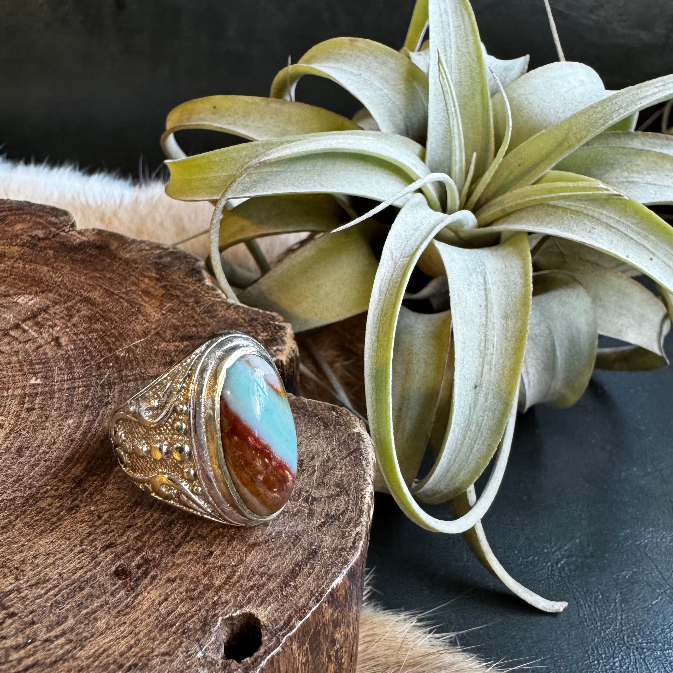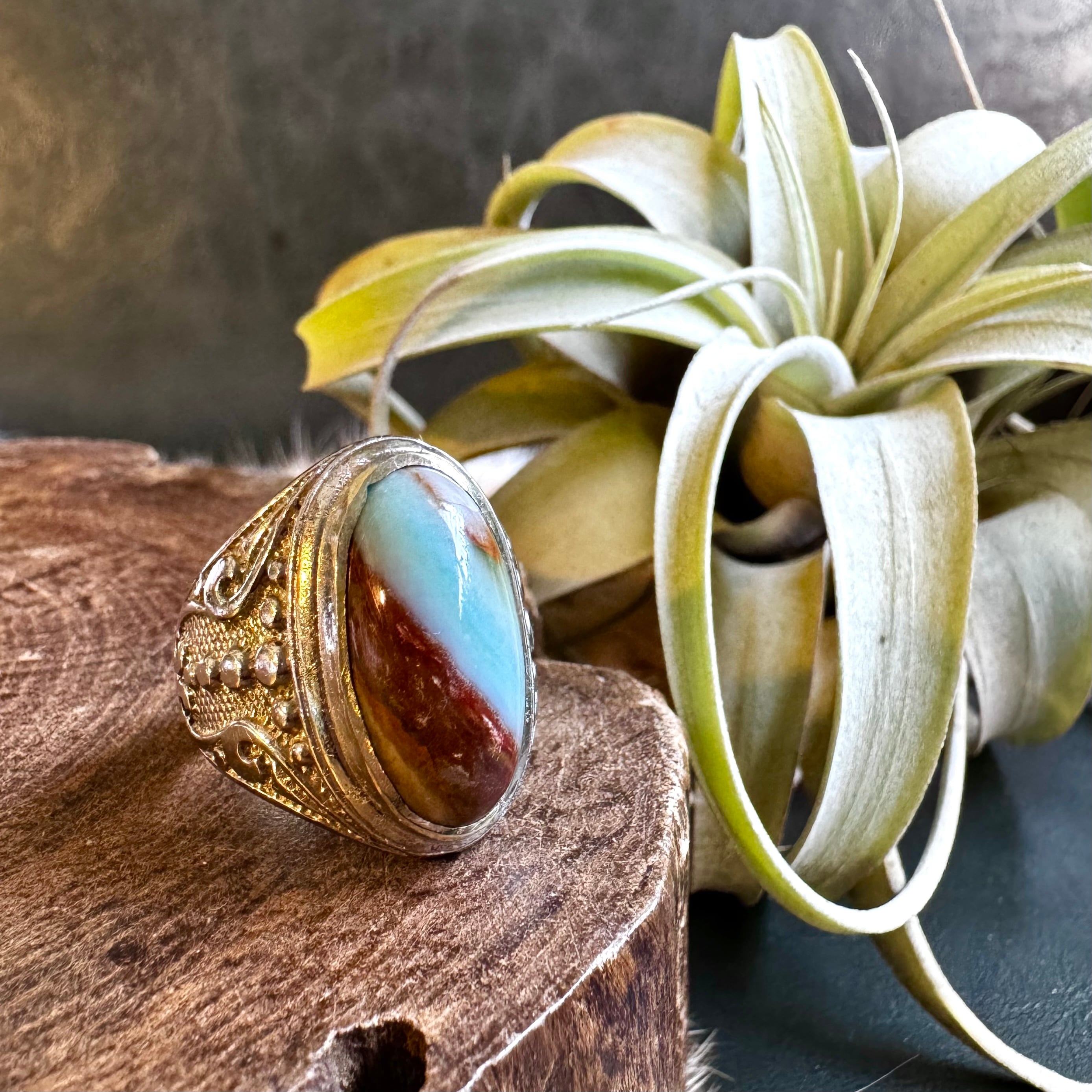 ブルーオパライズドウッド*アルパカリングNo.2(バイカラー)