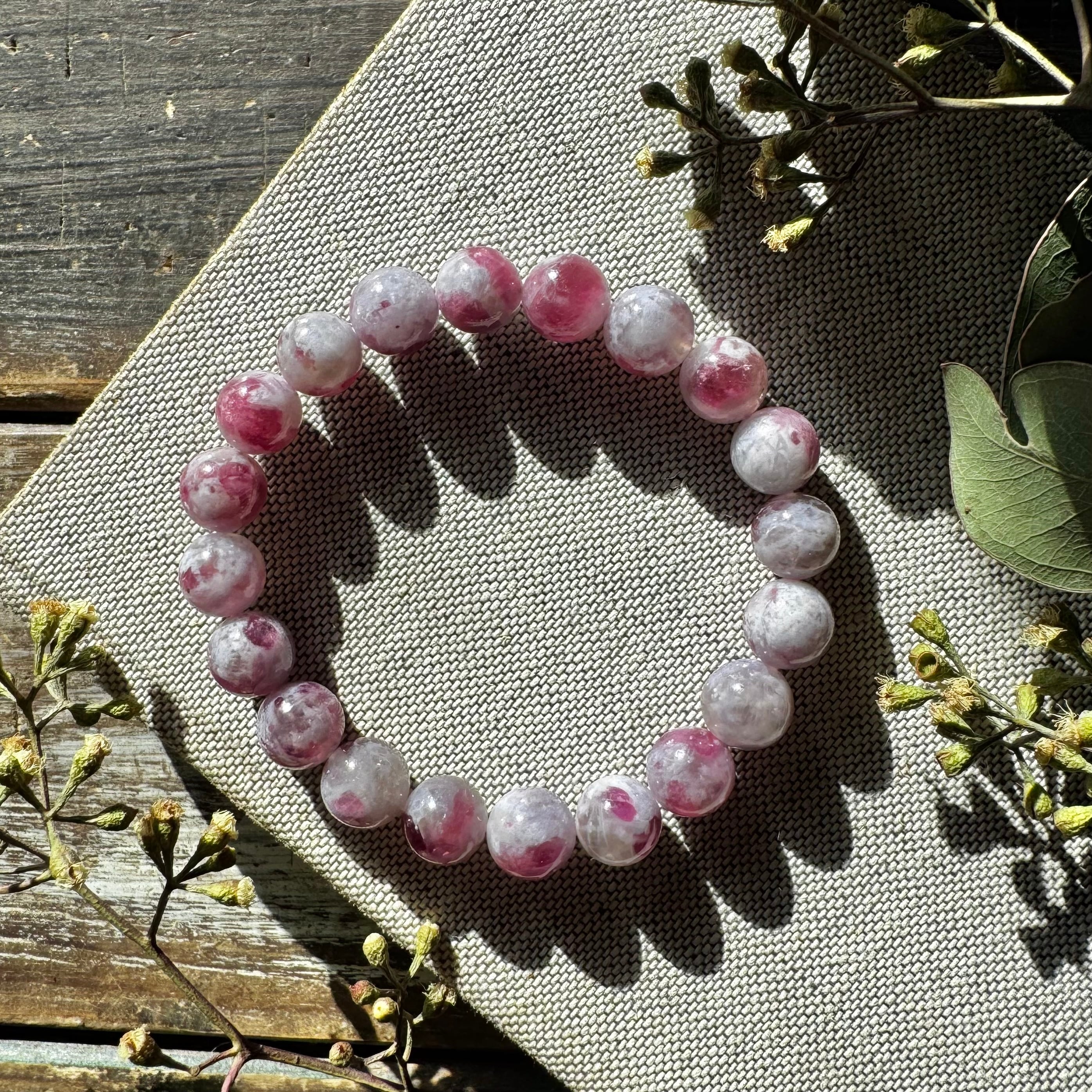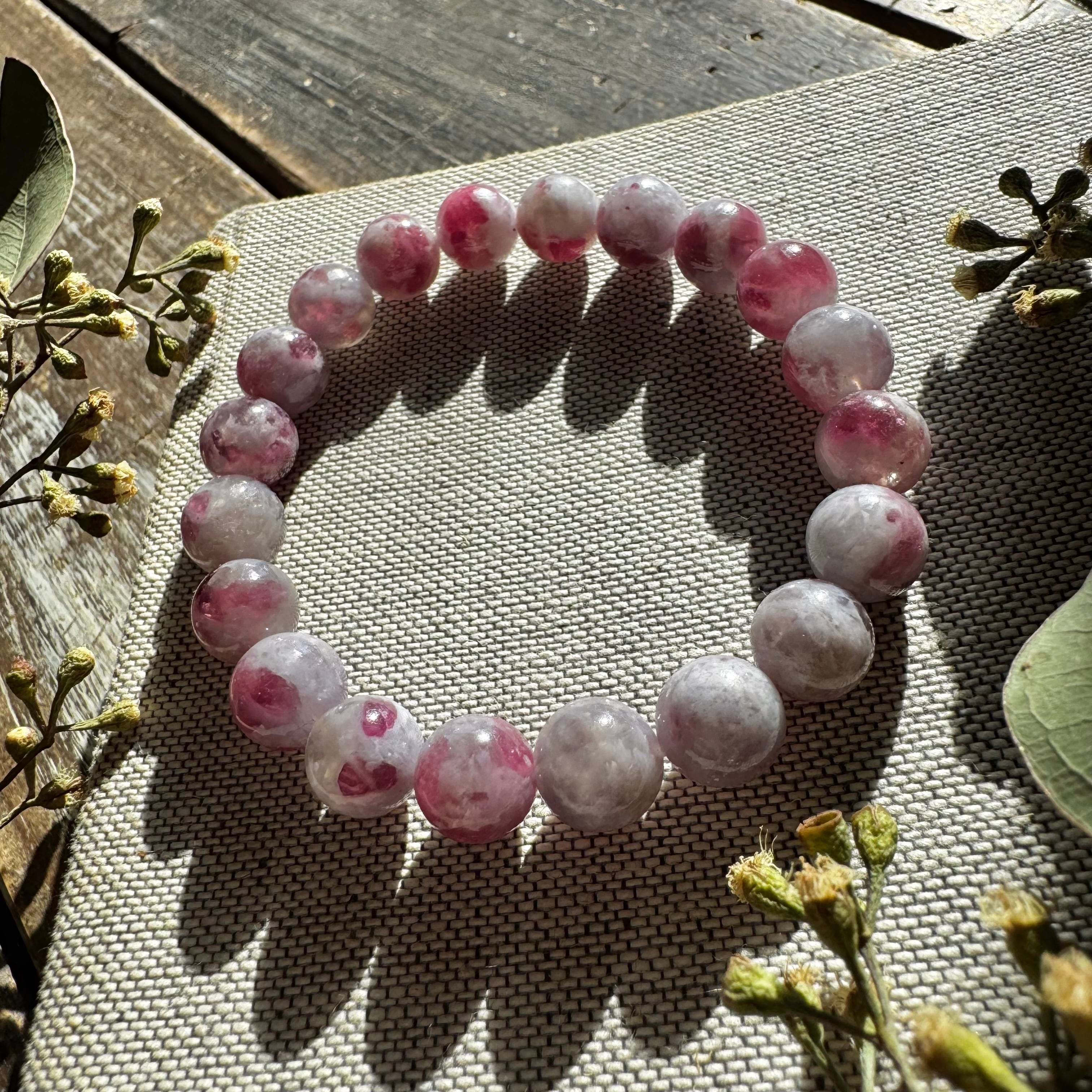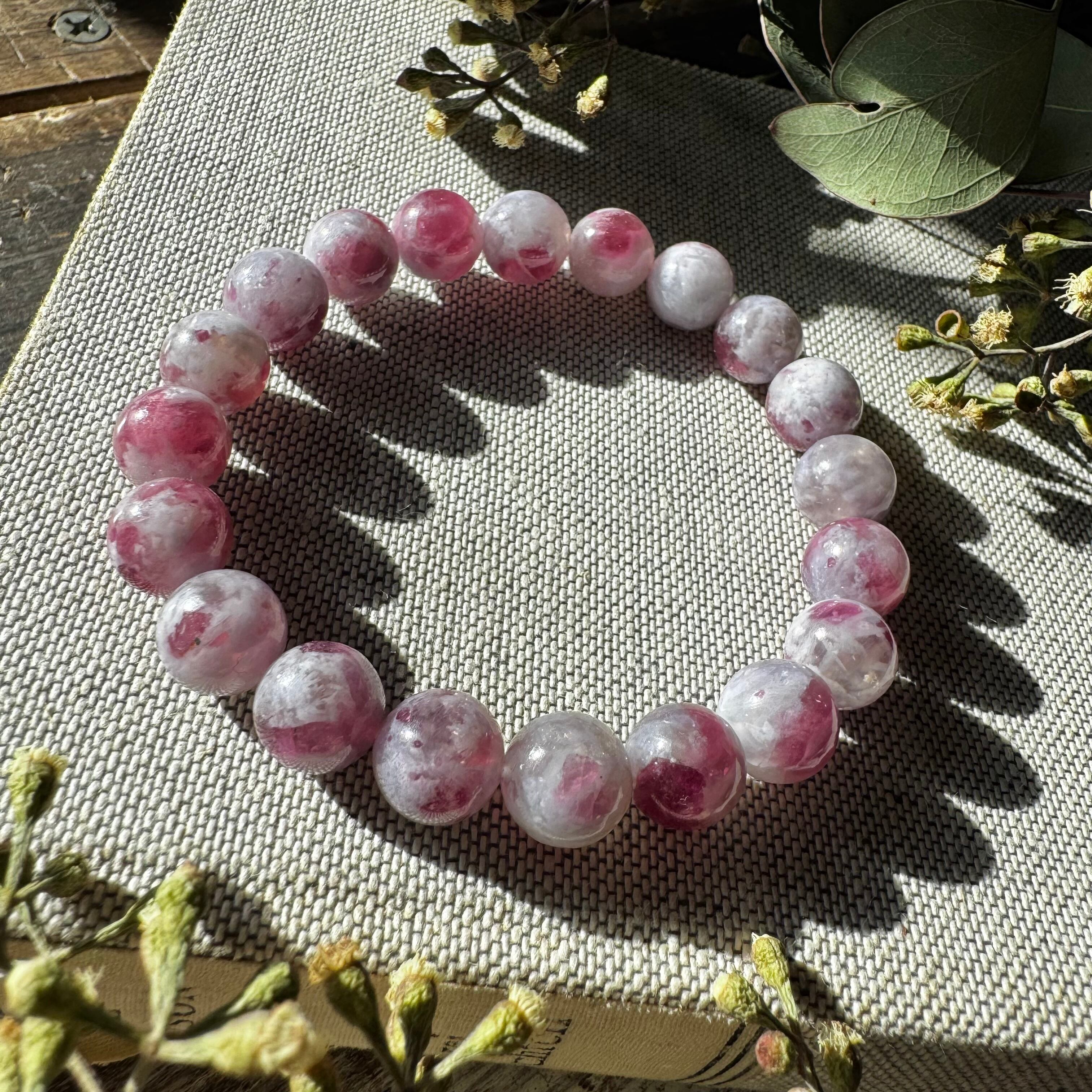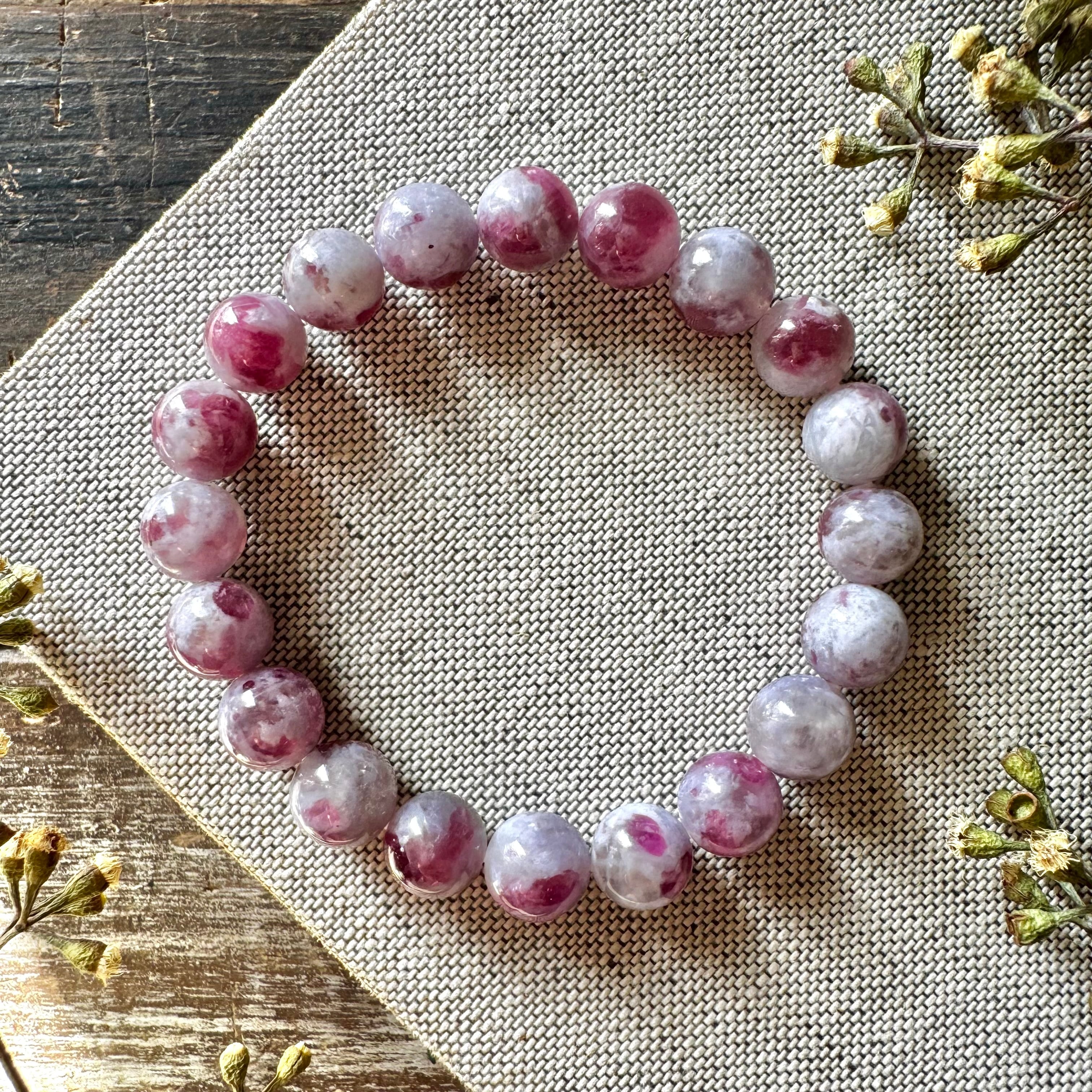 ユニコーンストーンは、近年マダガスカルで発見された、レピドライト、ピンクトルマリン、スモーキークォーツ、クリーブランド石(白雲母)が共生する石です